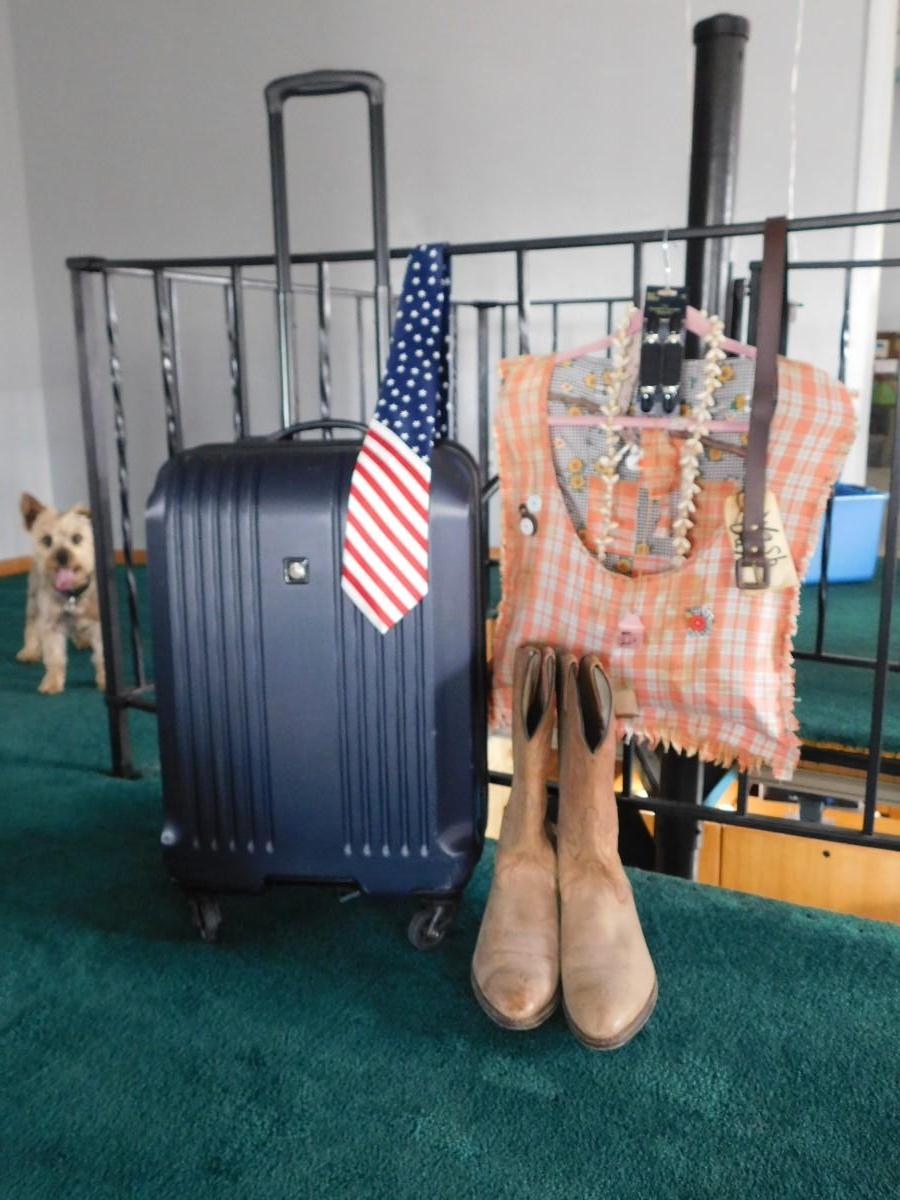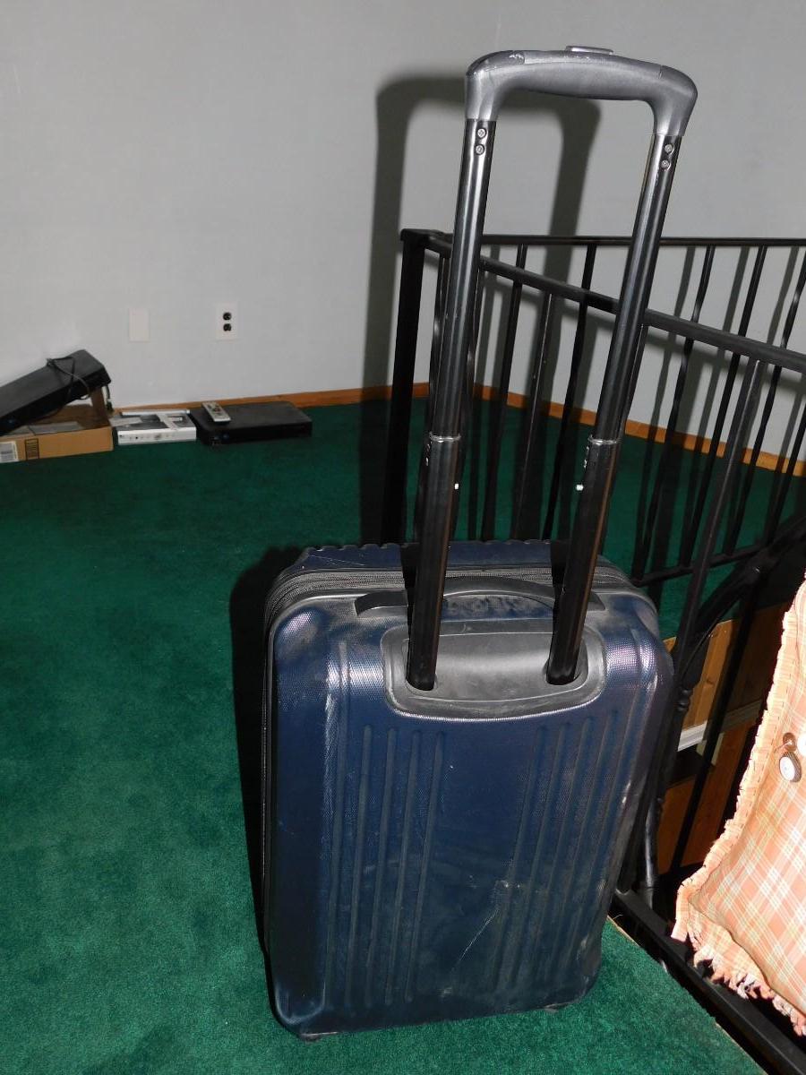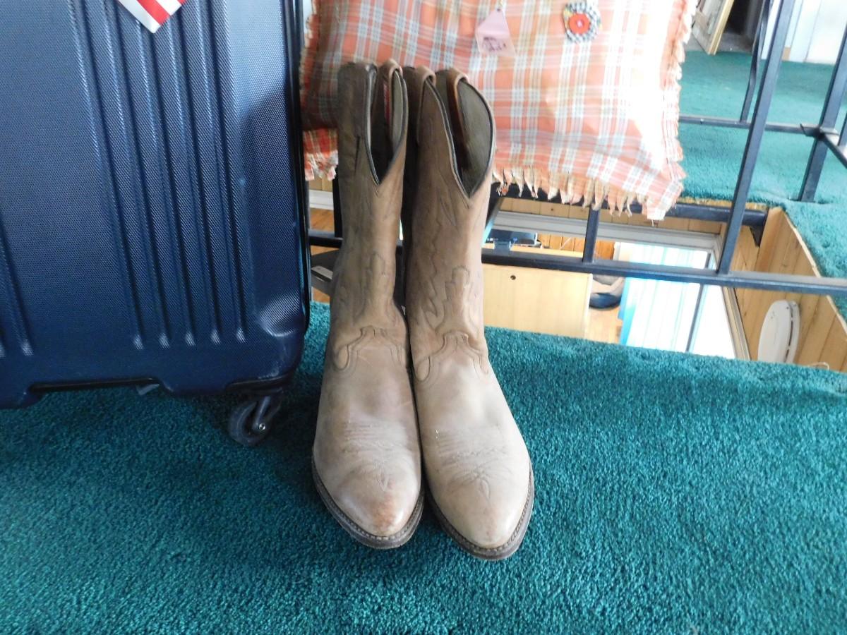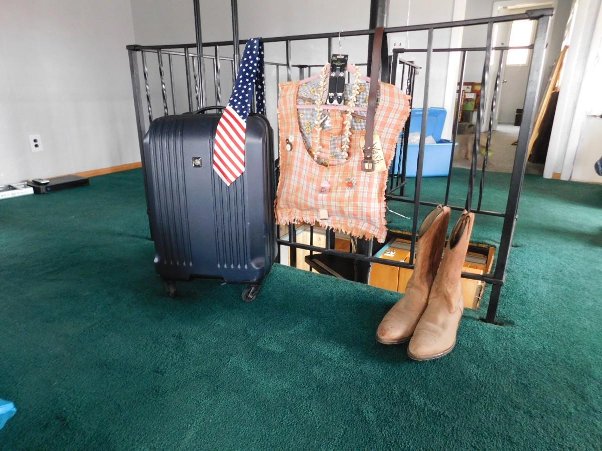 A LITTLE SOMETHING FOR EVERYONE IN THIS LOT! FROM AN ALL AMERICAN TIE, TO WEAR WITH SOME LIGHTLY WORN BOOTS, A NIFTY OLD ZIPPER PULLER UPPER, ENOUGH CLOTHES PINS TO HANG OUT YOUR WASH AND POSSIBLY EVEN THE NEIGHBORS TOO. A SMALL WAISTED BELT THAT COULD BE UTILIZED FOR MORE THAN HOLDING UP YOUR STYLISH PANTS AND A HARD SIDED ROLLING SUITCASE TO LOAD UP SOME MORE LOTS TO CARRY HOME, BEFORE YOU HEAD OUT ON A TRIP SPORTING YOUR NEW BAG AND BOOTS. AND THAT'S NOT ALL, THERE'S A NEW SET OF MITTEN HOLDERS TO KEEP YOU FROM LOSING ONE, AND WITH THIS LOVELY COLD WEATHER WE'RE HAVING... HERE IS SOME WE ALL NEED THIS TIME OF YEAR TO ENSURE WE CAN ALWAYS KEEP BOTH HANDS WARM AND SECURE THAT PAIR FROM BECOMING A LONE MISFIT GLOVE. AND IF THAT'S NOT ENOUGH, YOU'LL EVEN GET A BONUS WITH A COOL SEA SHELL NECKLACE THAT WILL MAKE YOU THE ENVY OF ALL YOUR FRIENDS & EVEN COMPLETE STRANGERS ON THE DAYS YOU'RE NOT SPORTING YOUR COOL NEW TIE AND BOOTS˜‰