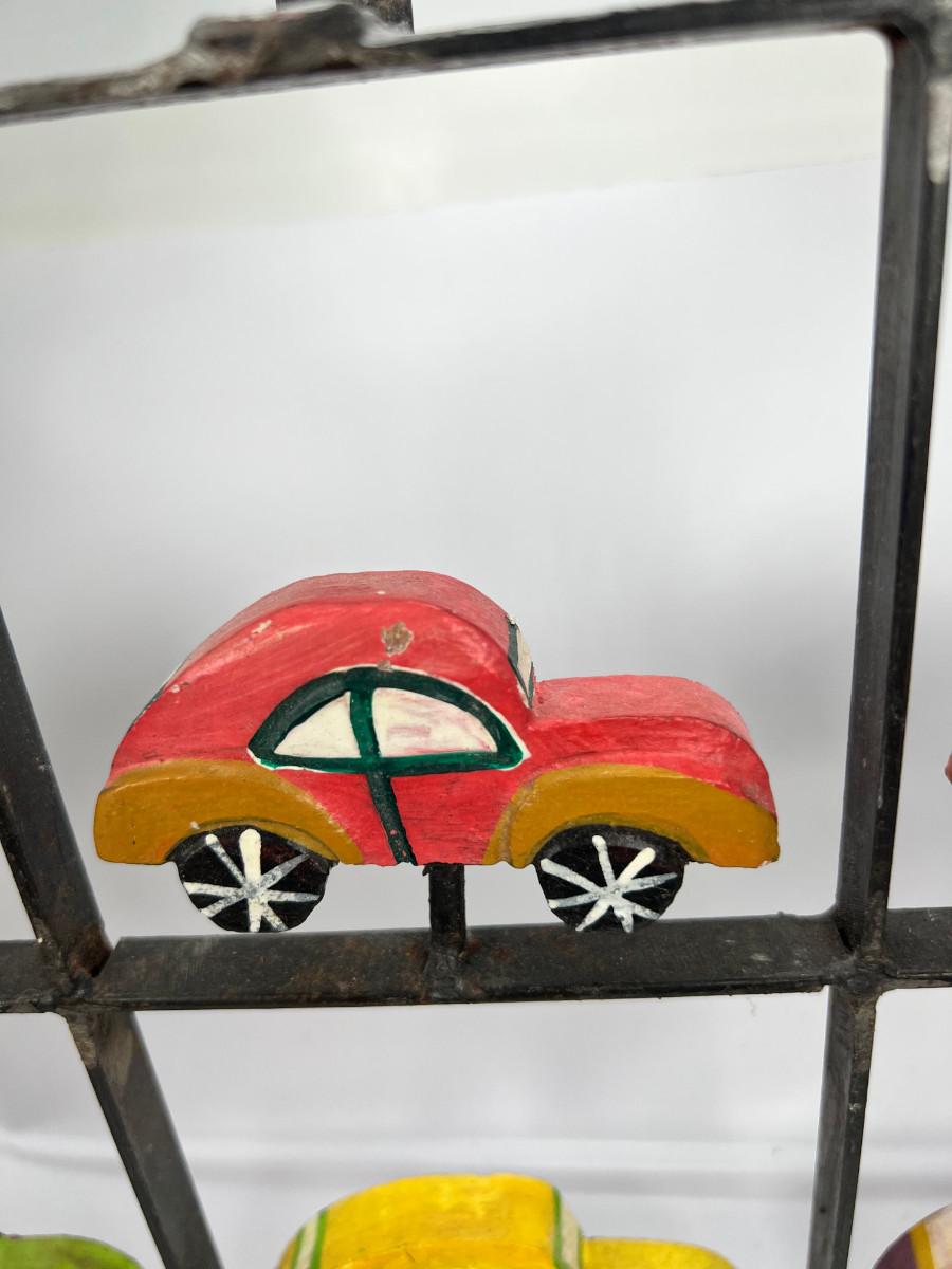 Metal frame with hanging bars 6 hand painted VW made in Brazil.