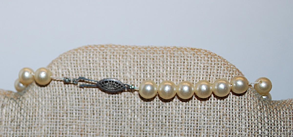 Off-White Faux PEARL CHOKER NECKLACE WITH Slide-In Graphic Designed Clasp 15" L