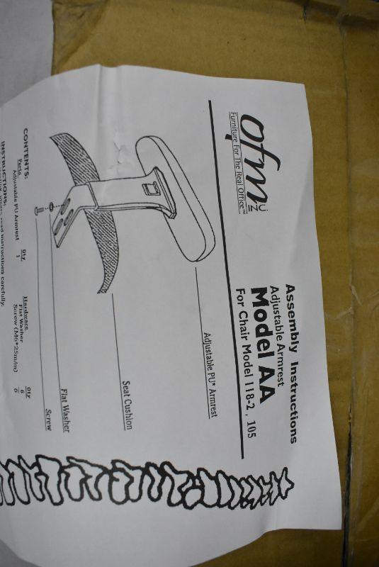 OFM Adjustable Arms For Model 118-2, 105, & 119 Task Chairs, Set of 2 arms, with hardware - New