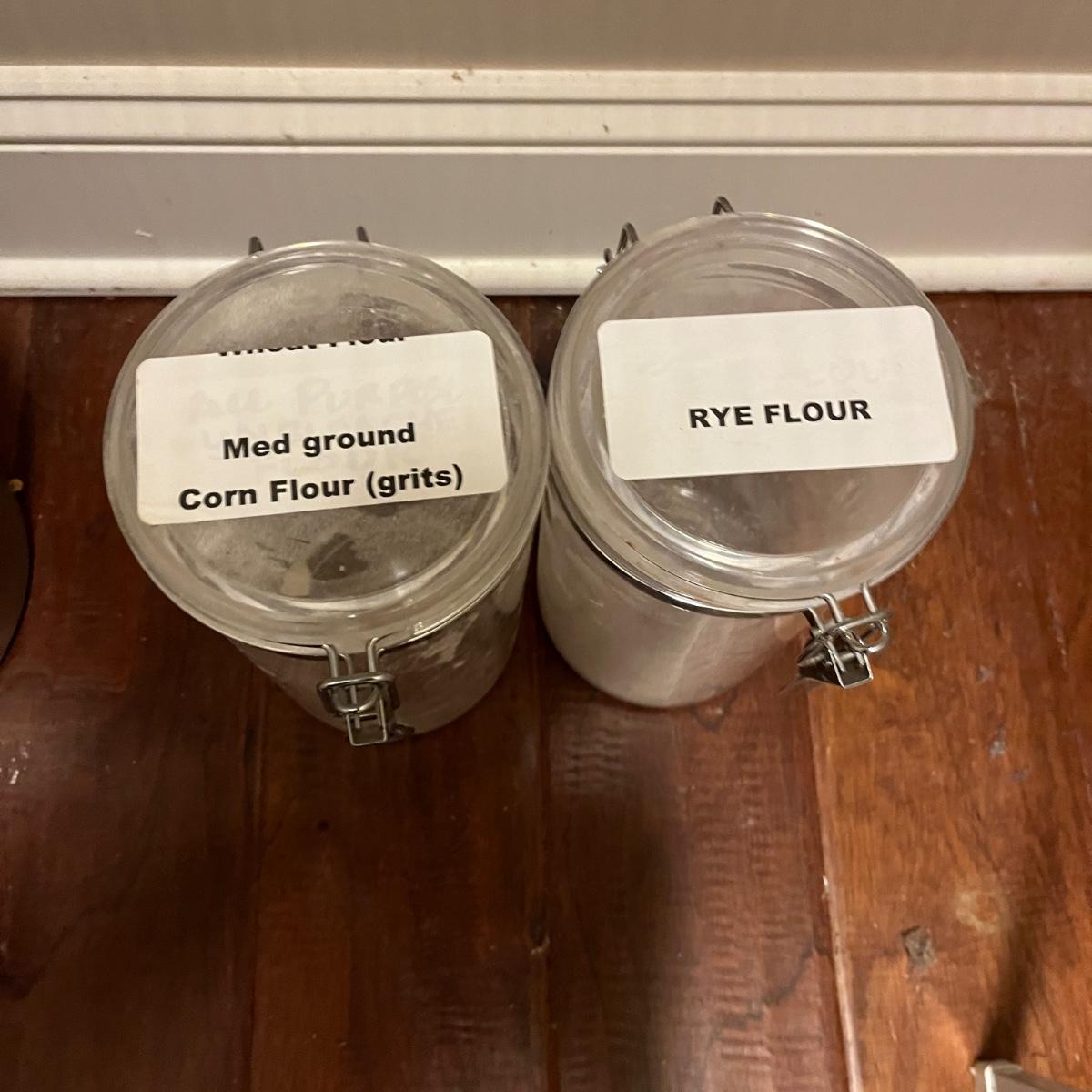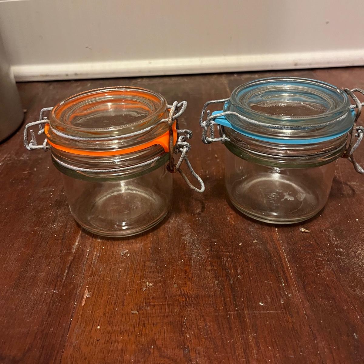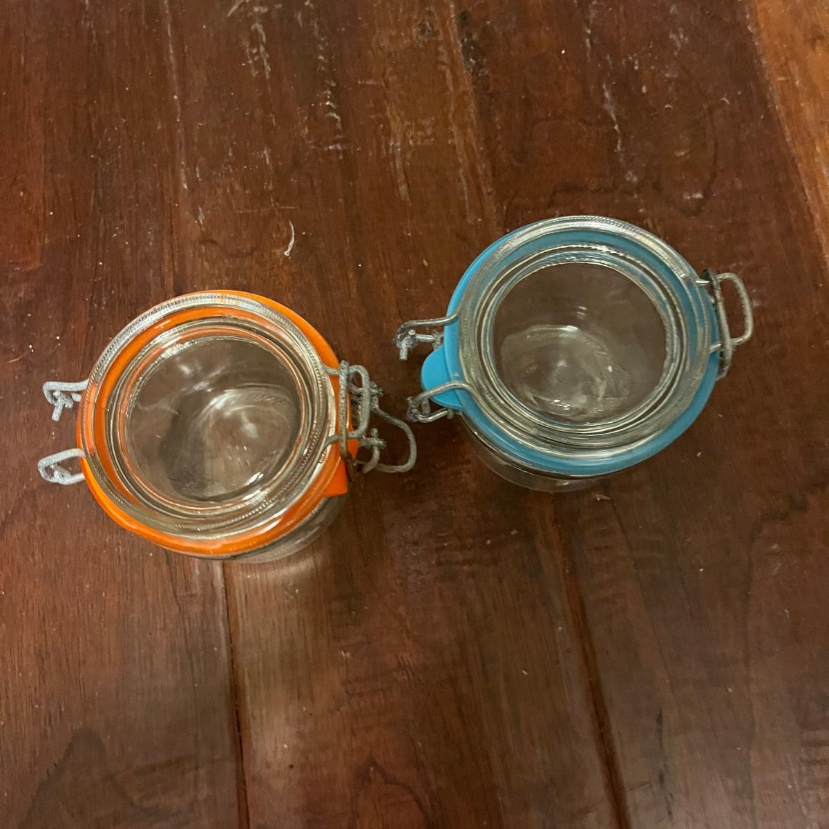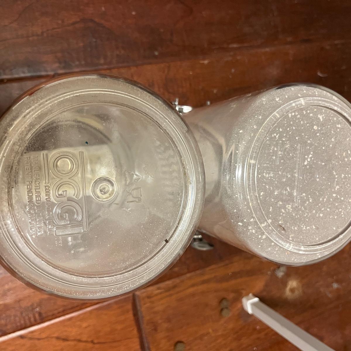 Lot includes five Oggi stainless steel canisters, Anchor, Enloy and unmarked stainless steel canisters, two glass canisters and two plastic Oggi canisters. Largest canister measures 7.5”D x 7.5”H.