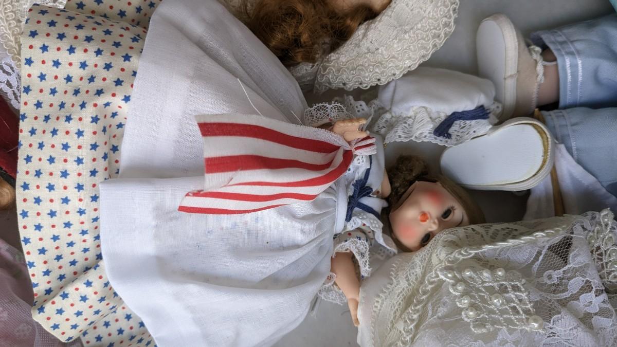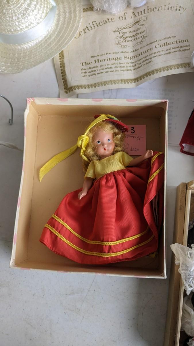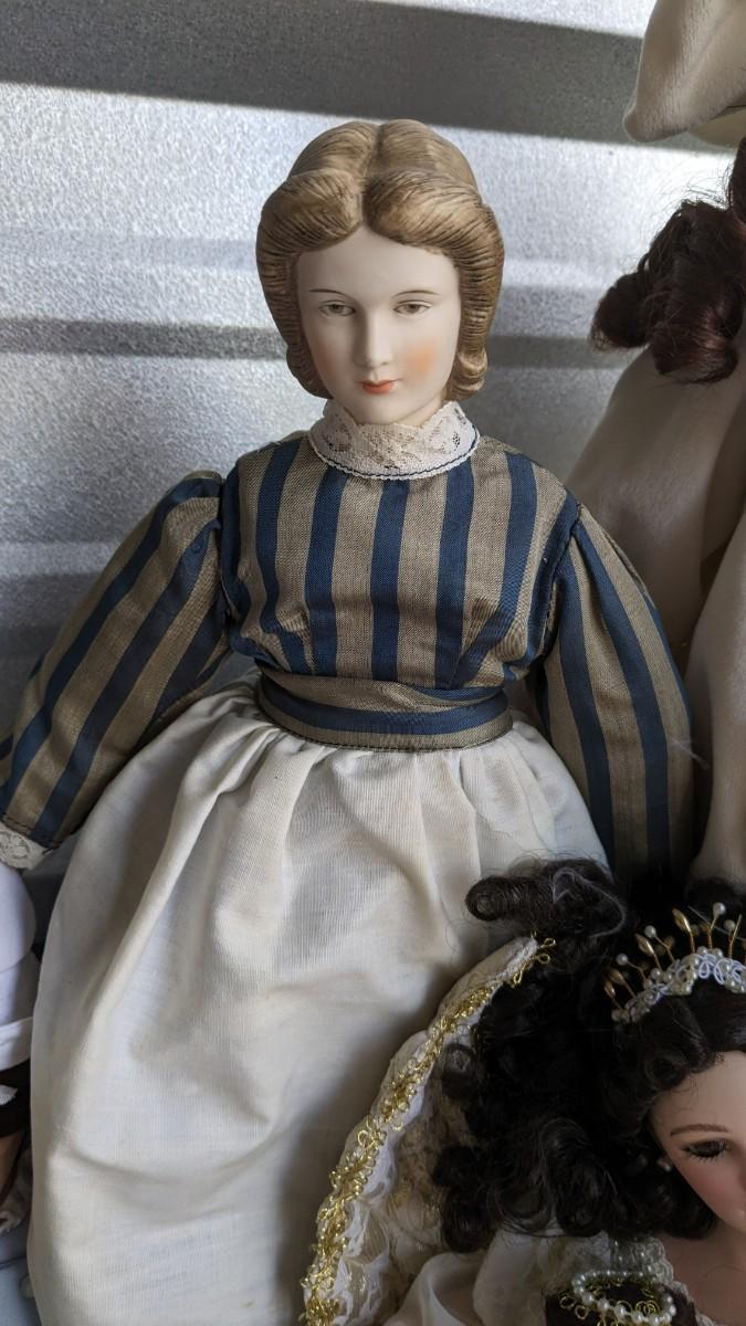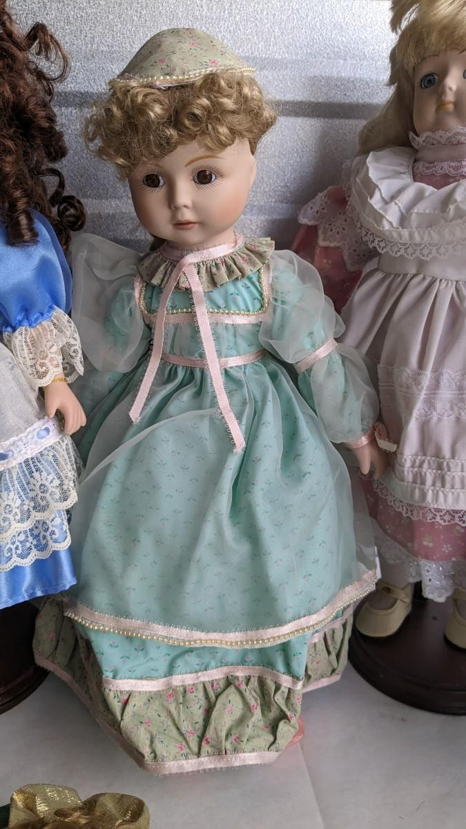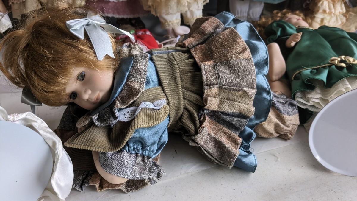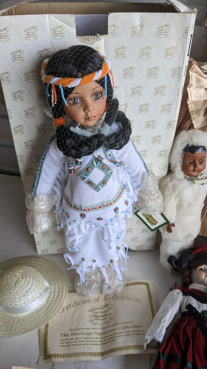 A great array of porcelain and plastic dolls. Some with tags and others without. Some ladies and the cat have wear, please note in photos. no shipping 2616
