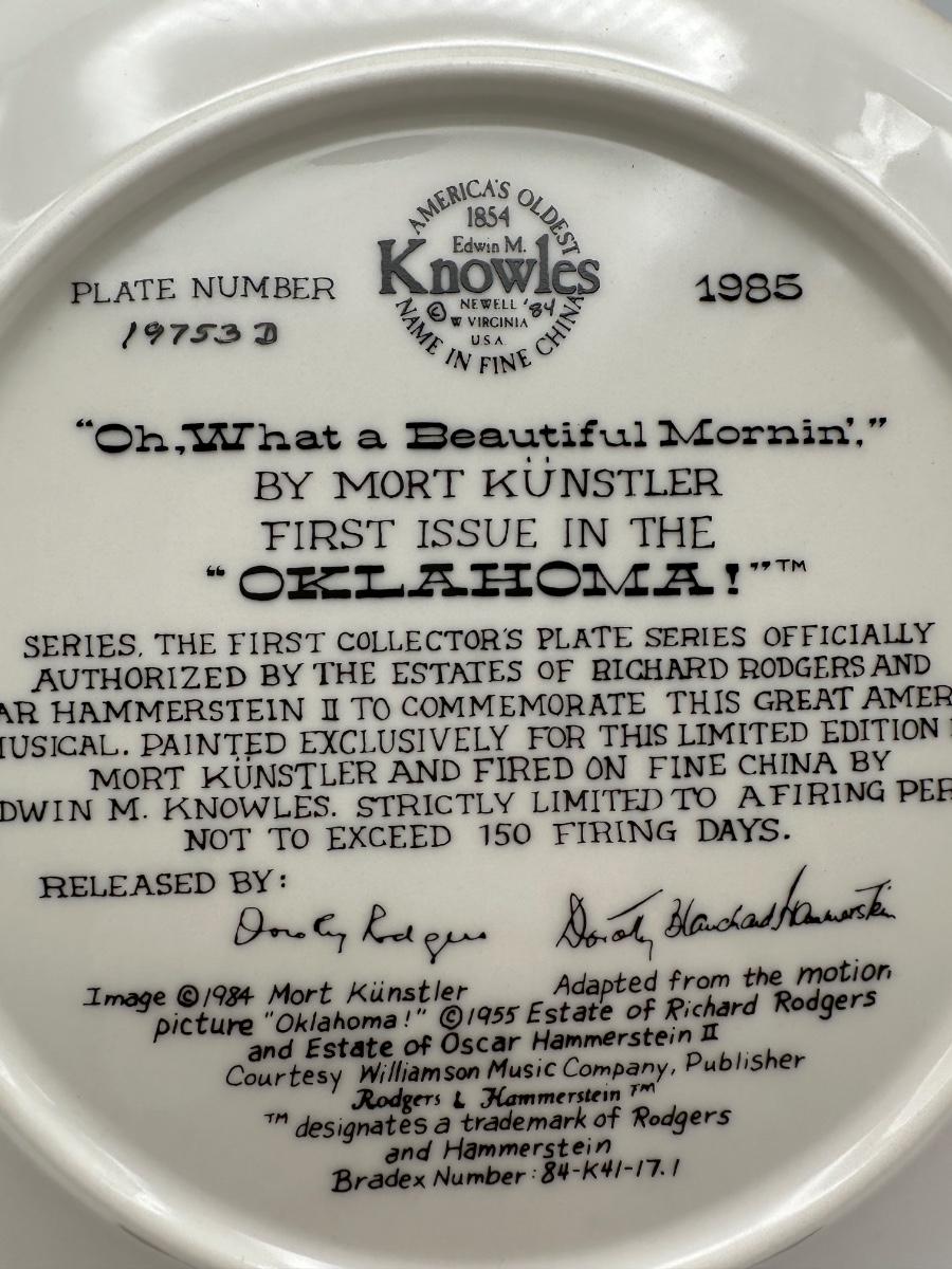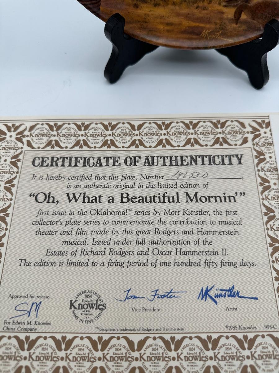 “Oh What A Beautiful Mornin” by Mort Kunstler Collector Plate with Certificate