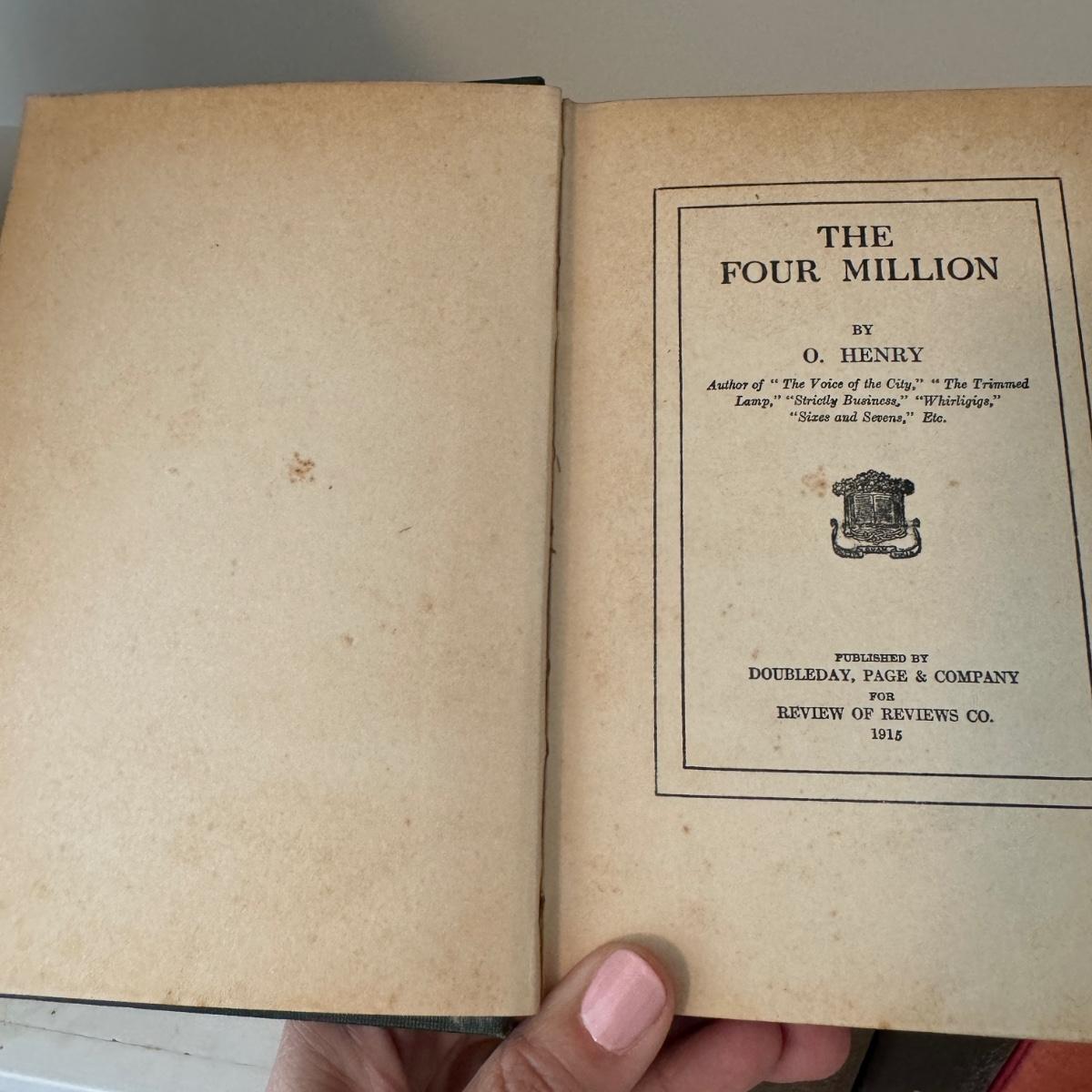 Set of 10 books by O.Henry. Black cloth covers and ranging copyrights in early 1900s. Some mildew and some writing on a few pages but spines and pages are mainly intact and good condition for their age. See photos for details. Shipping available