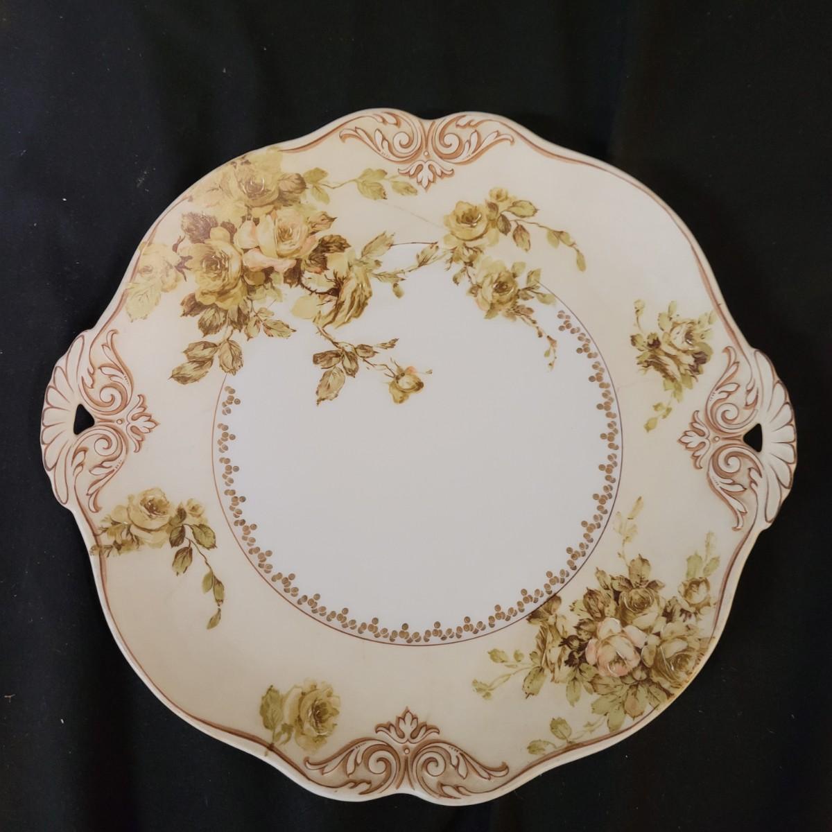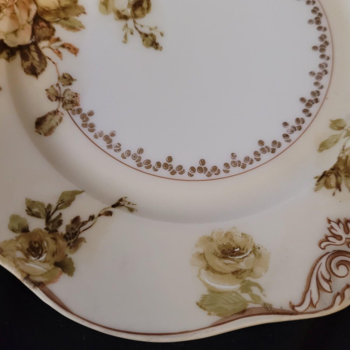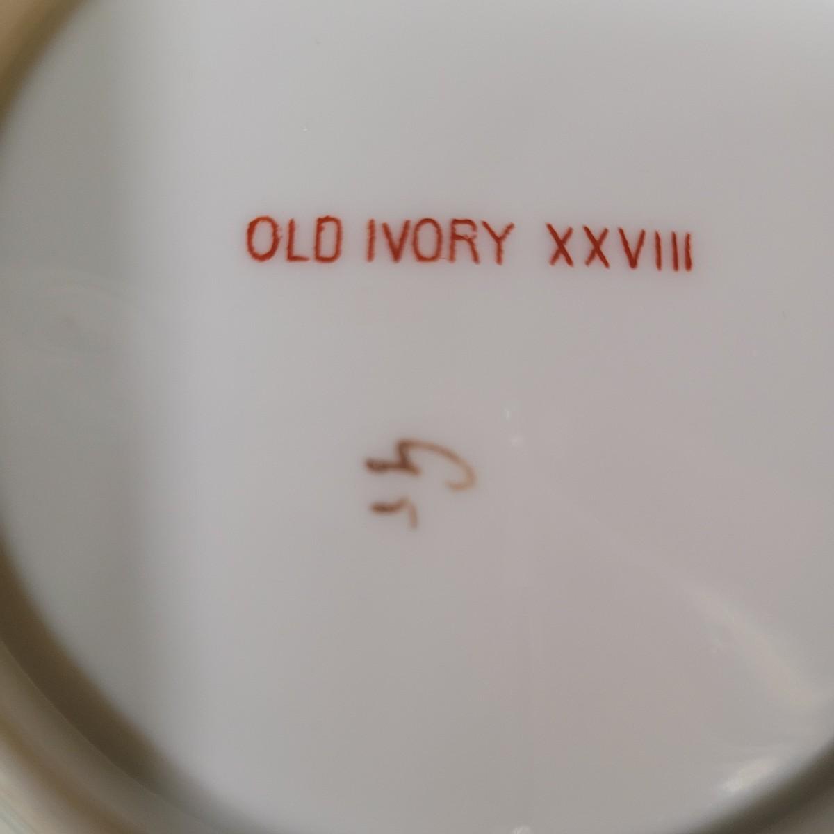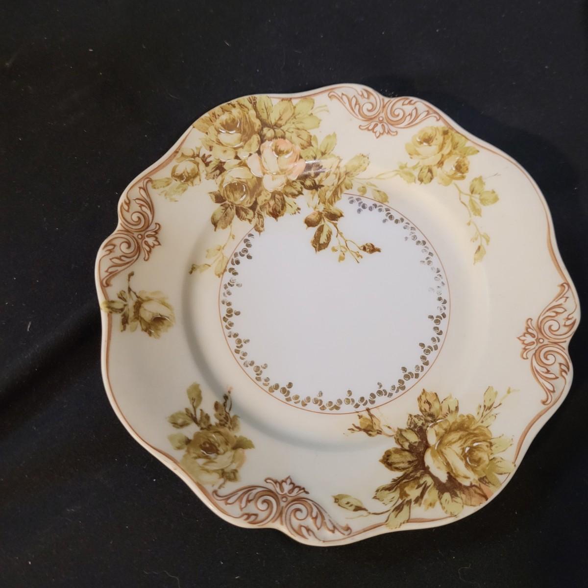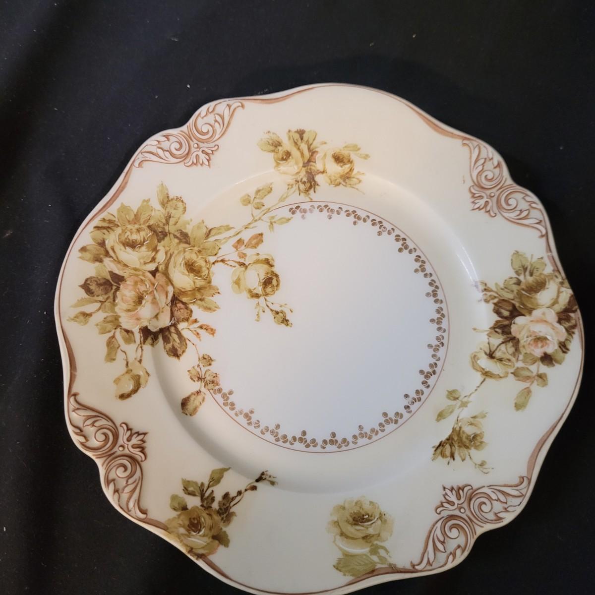 Fifteen piece Ohme Silesia porcelain dinner ware set includes large serving bowl, serving plate, five medium plates, six small plates and two small bowls. Floral print has fine paint strokes overlaid, and textured relief work at edges. Items in excellent condition. Large bowl measures approximately 9.5"DIA, medium plate 8"DIA. Shipping available.