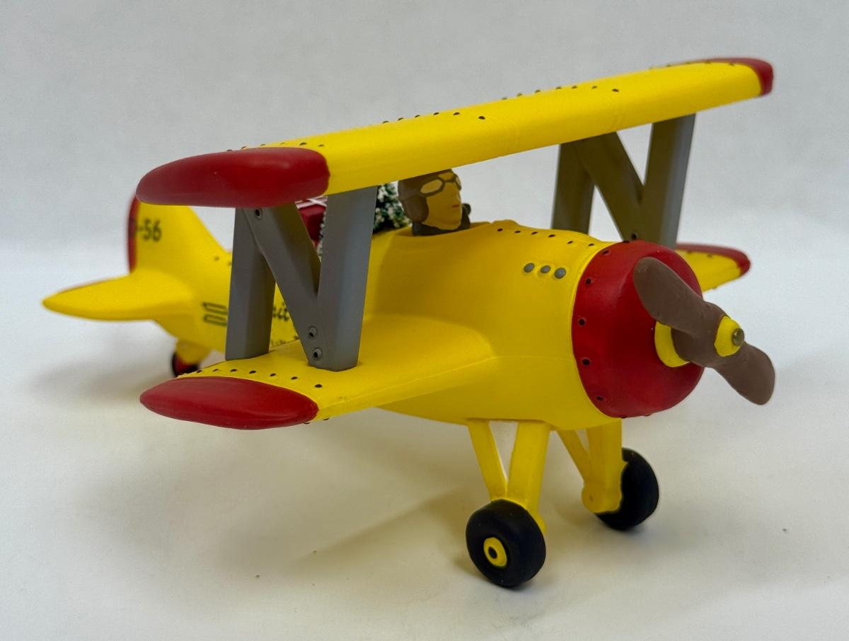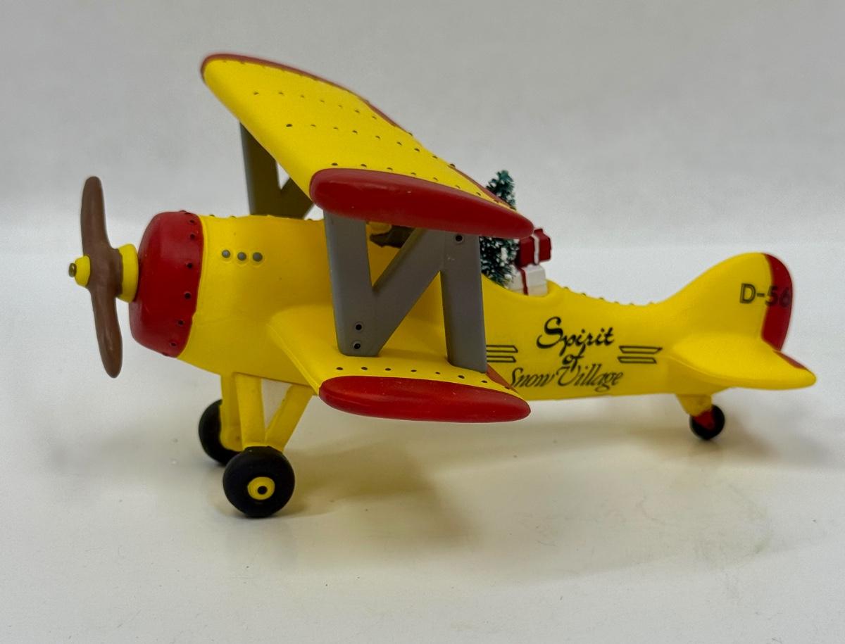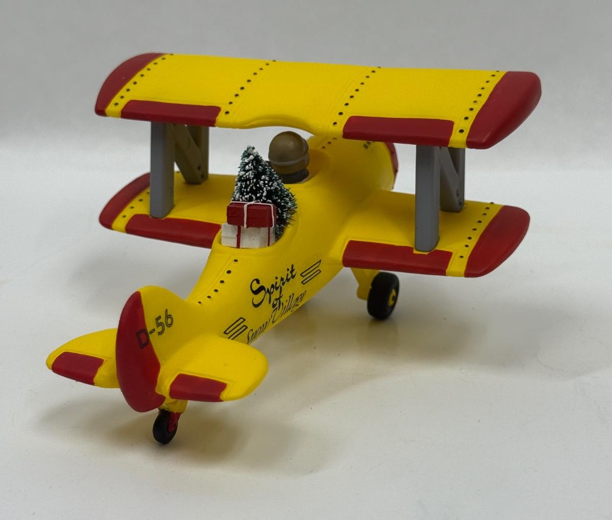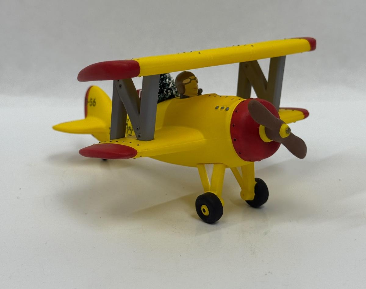Yellow and red biplane, with Christmas tree and presents in the cockpit. Good condition. Includes original box.