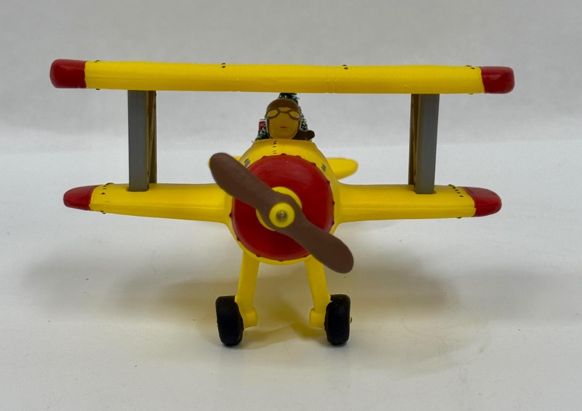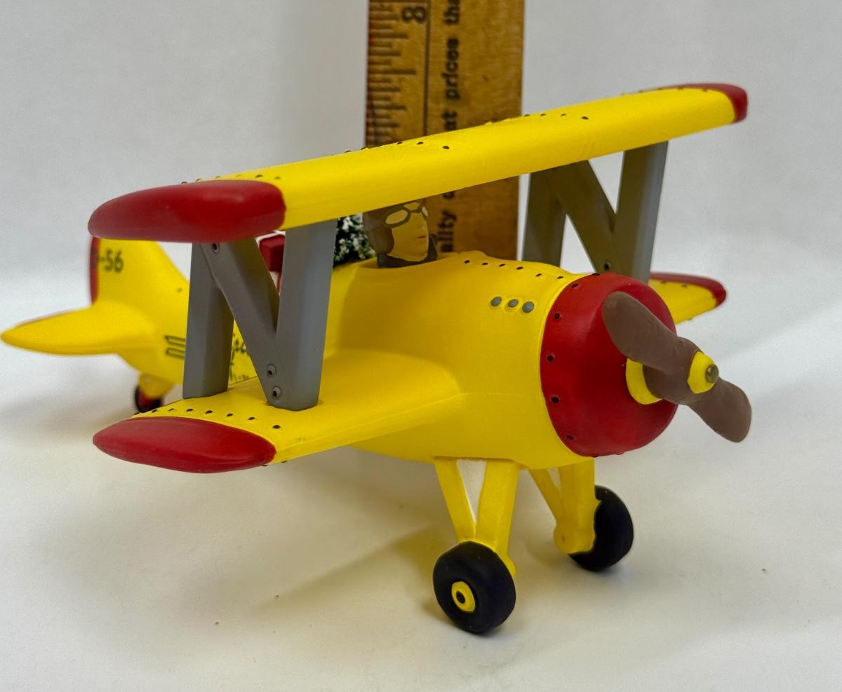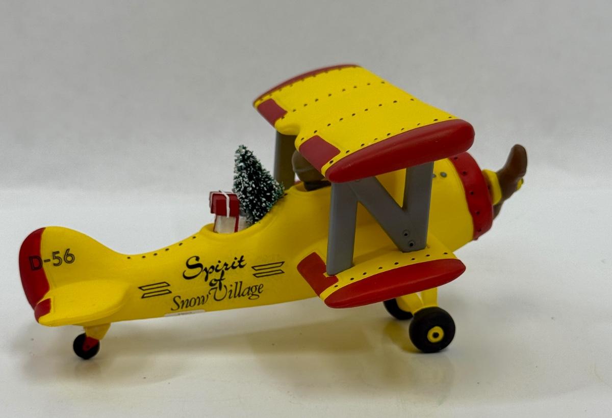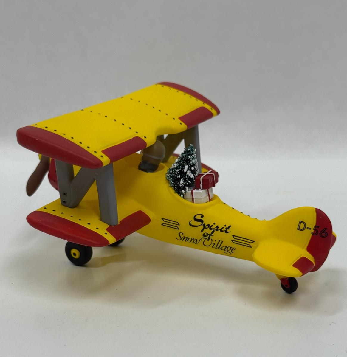 Yellow and red biplane, with Christmas tree and presents in the cockpit. Good condition. Includes original box.