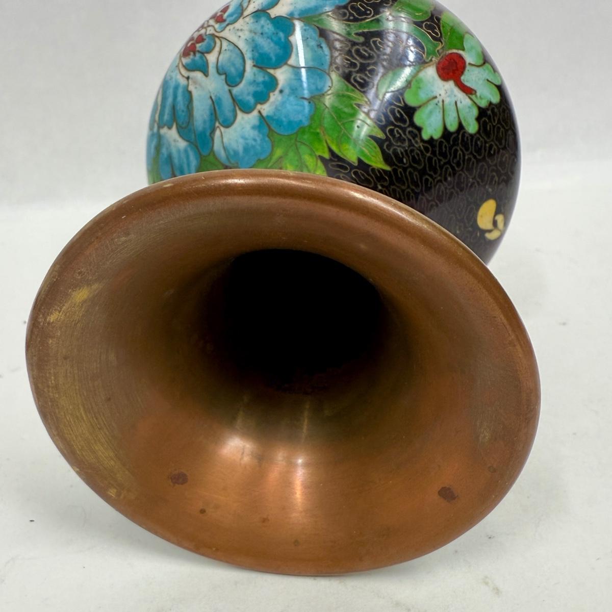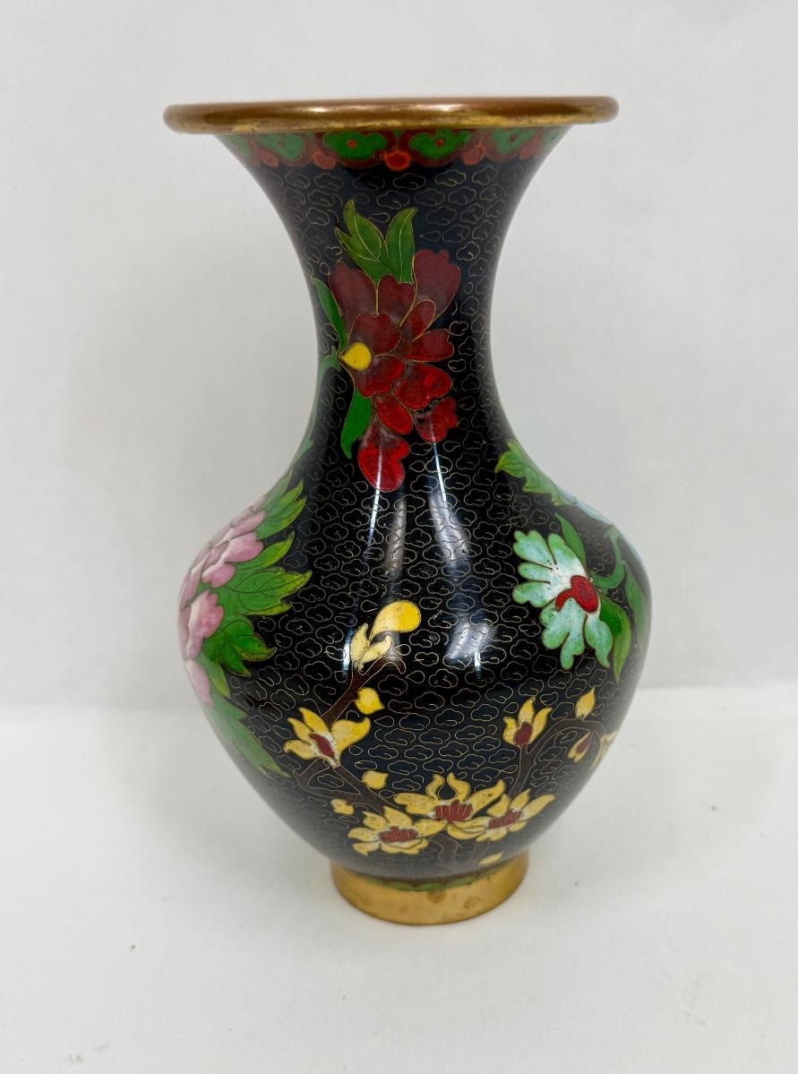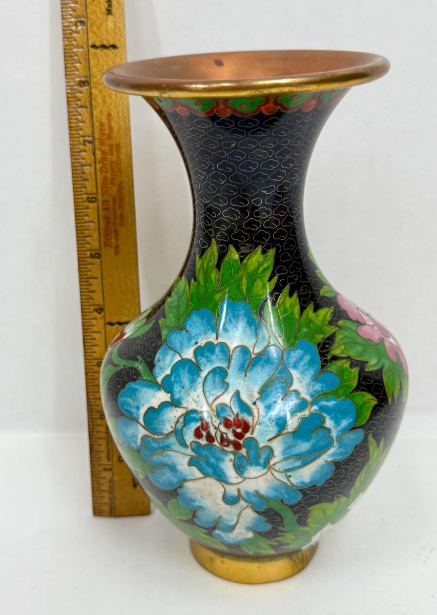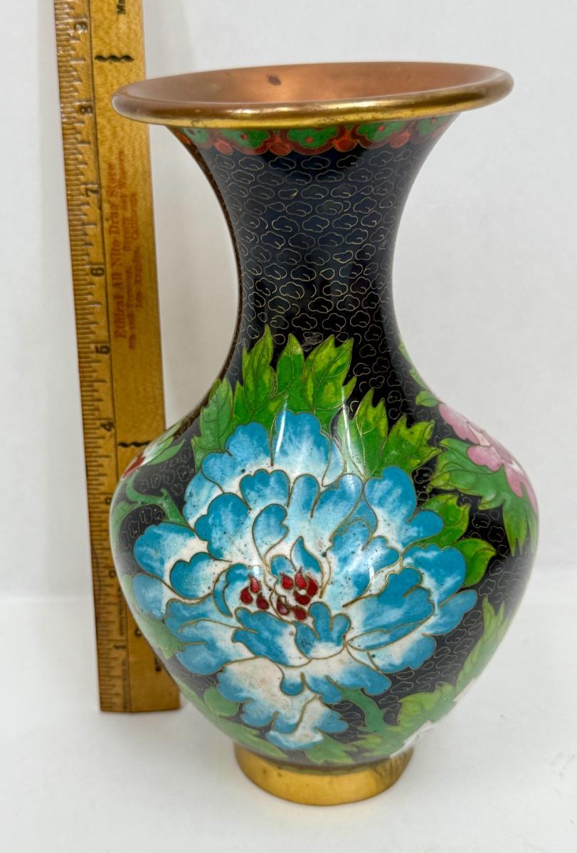 Vintage Chinese Cloisonne Enamel Vase w/ Spider Mums Lotus flowers