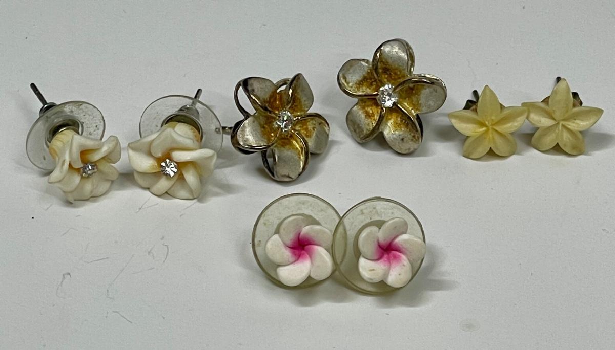Four Pairs of stud earrings fashion costume jewelry for pierced ears - flowers
