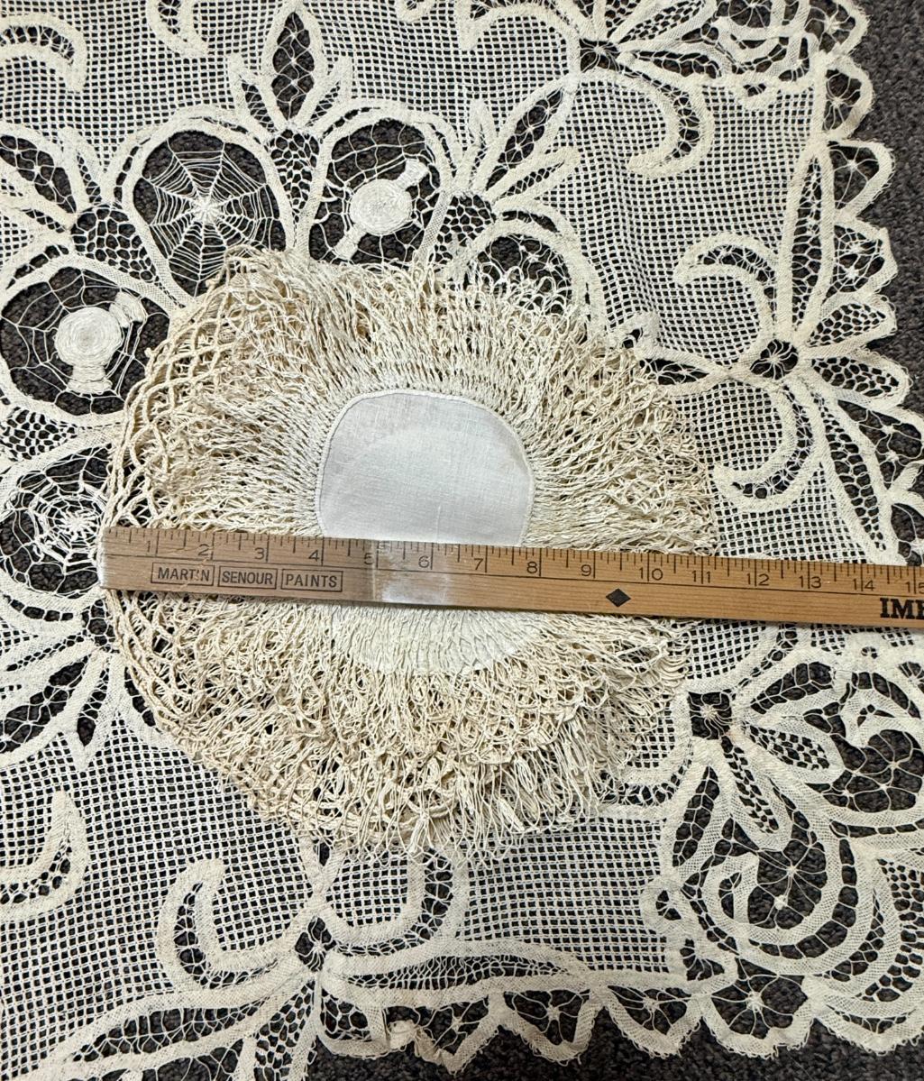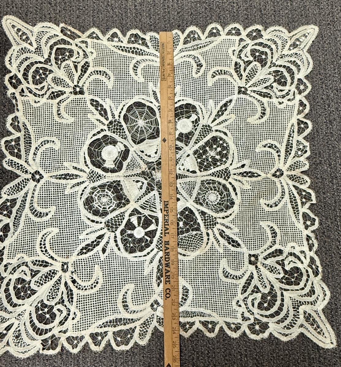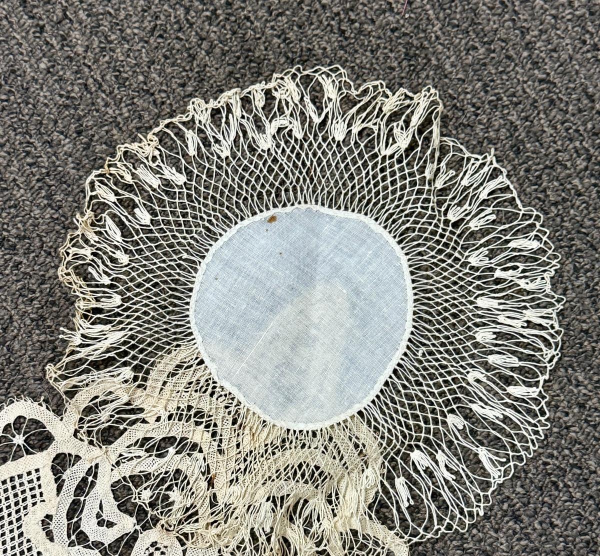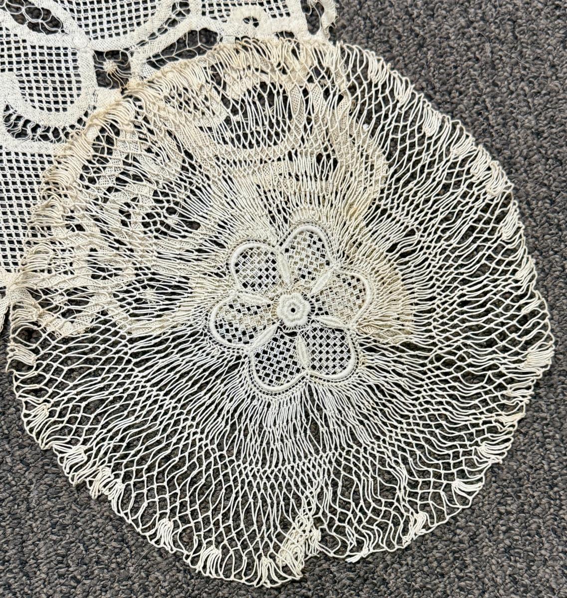 Antique Line Lot. - 5 pieces - large square table cover and 4 round doilies