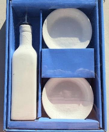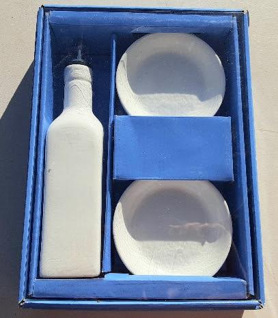 bottle 8in. tall, not including spout. plates are 4.5in diameter