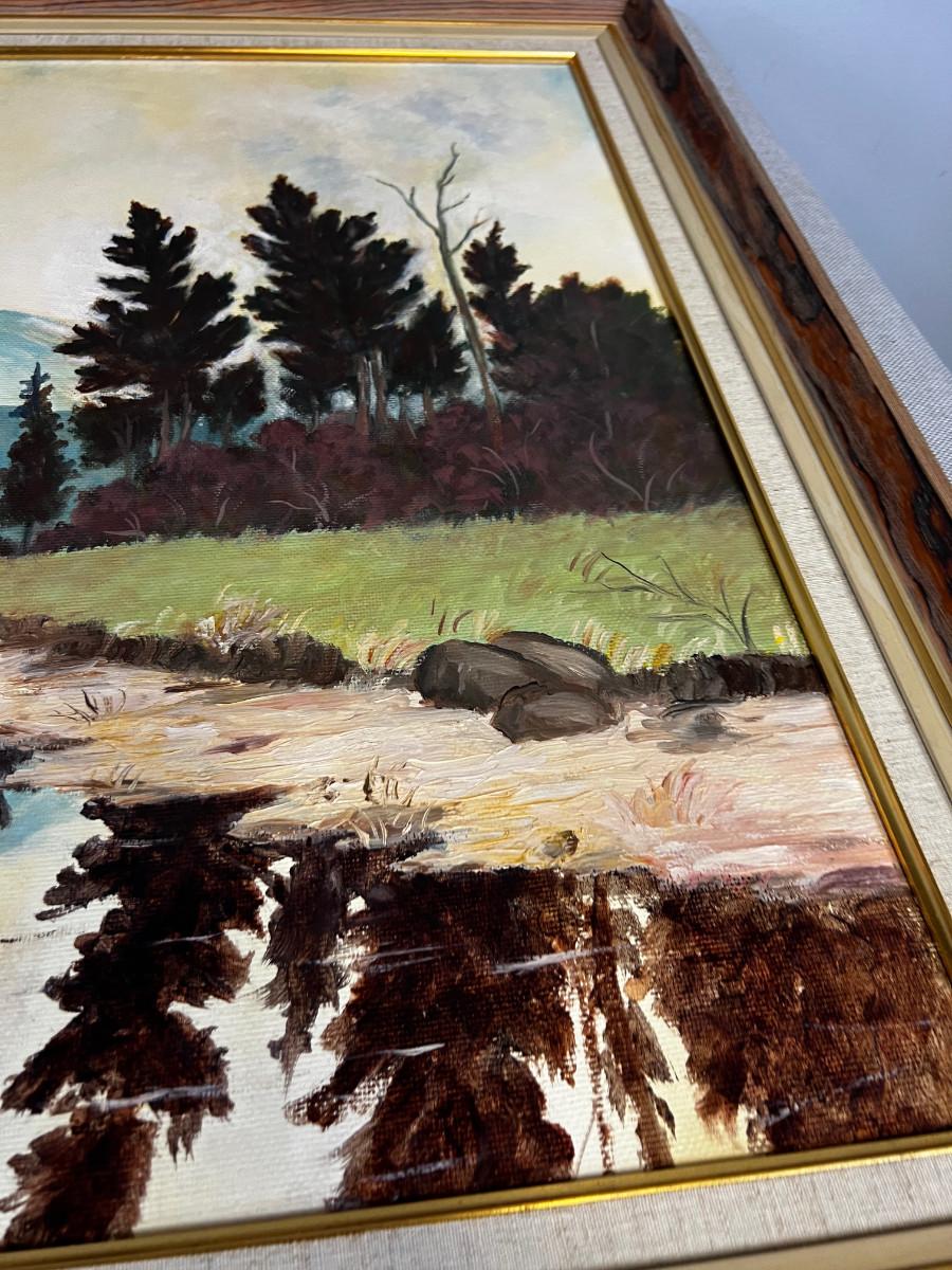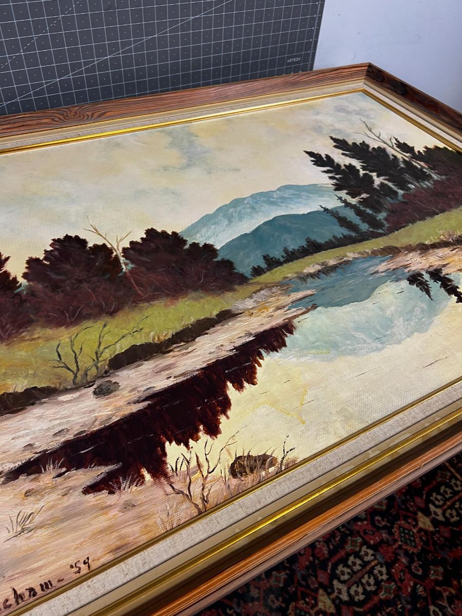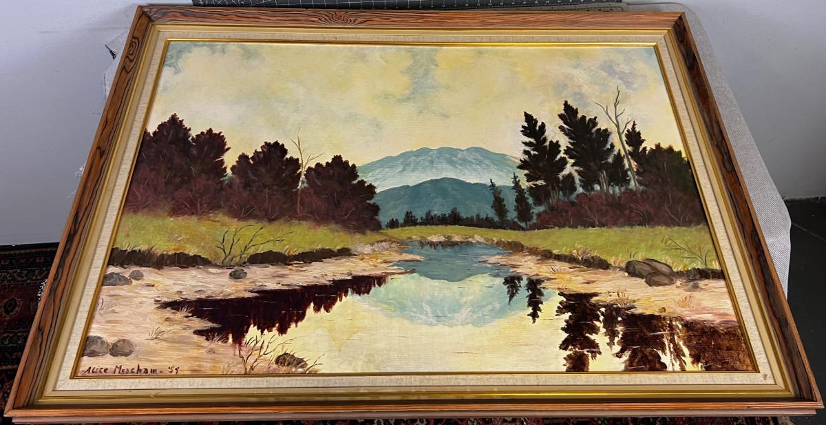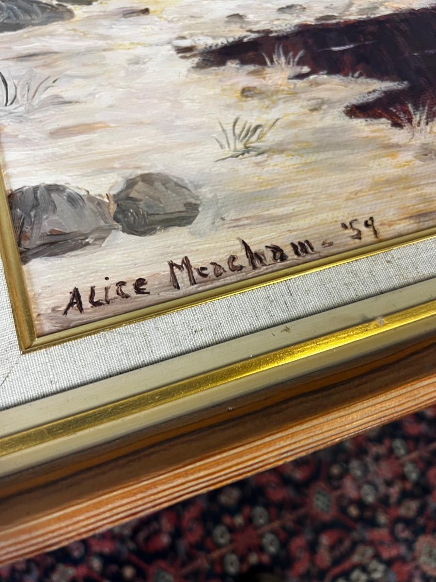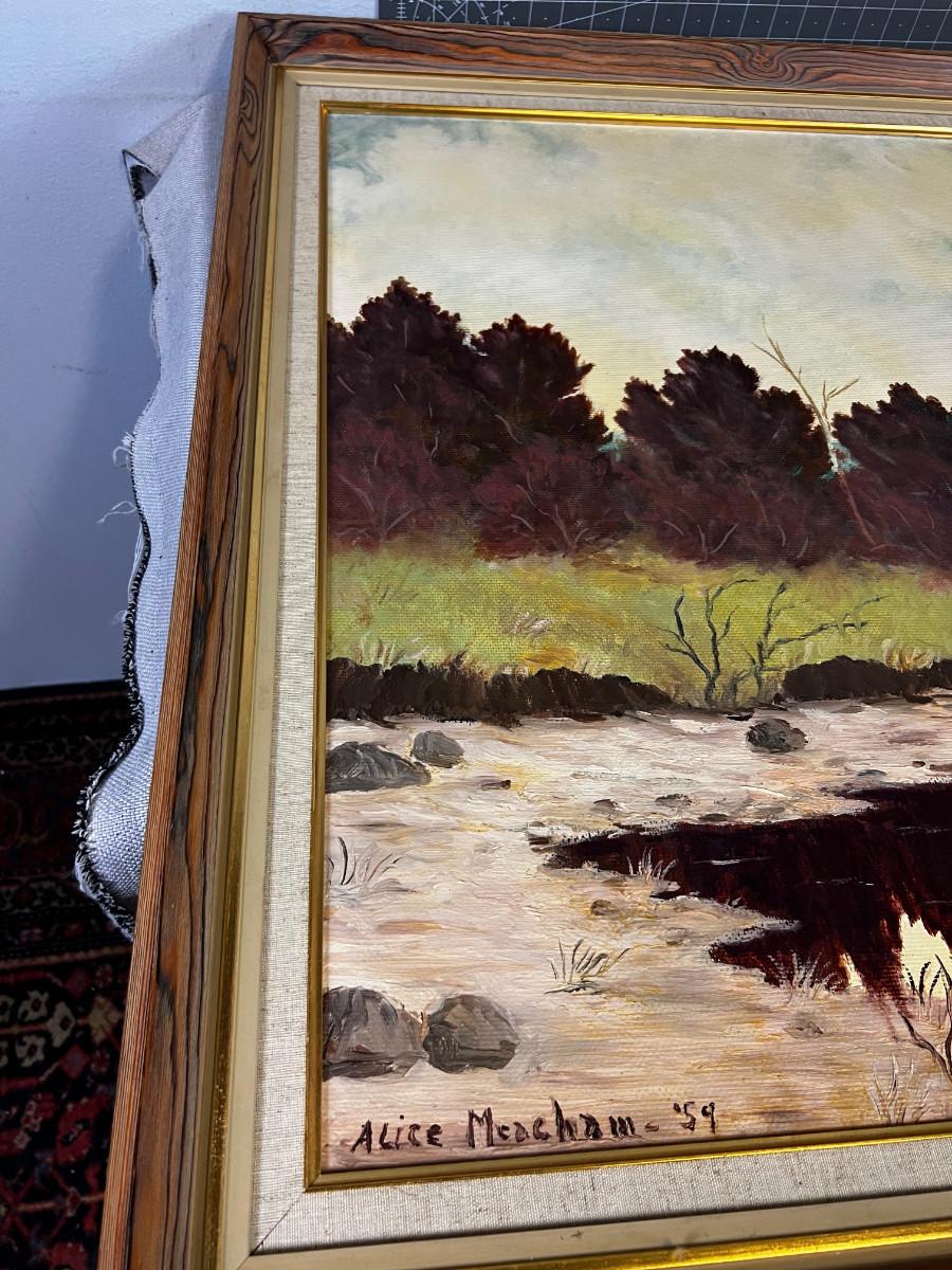 Oil on Board Landscape Stream by Alice Meacham Dated 1959