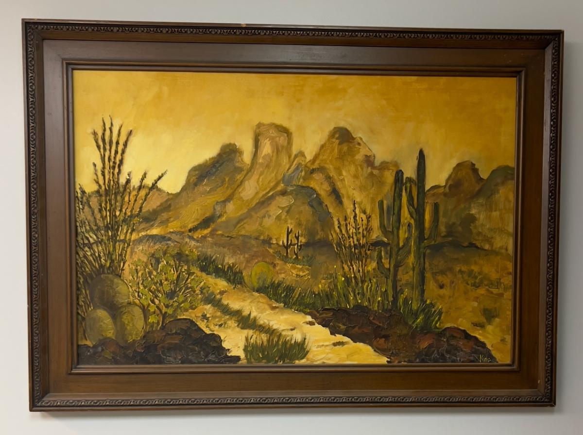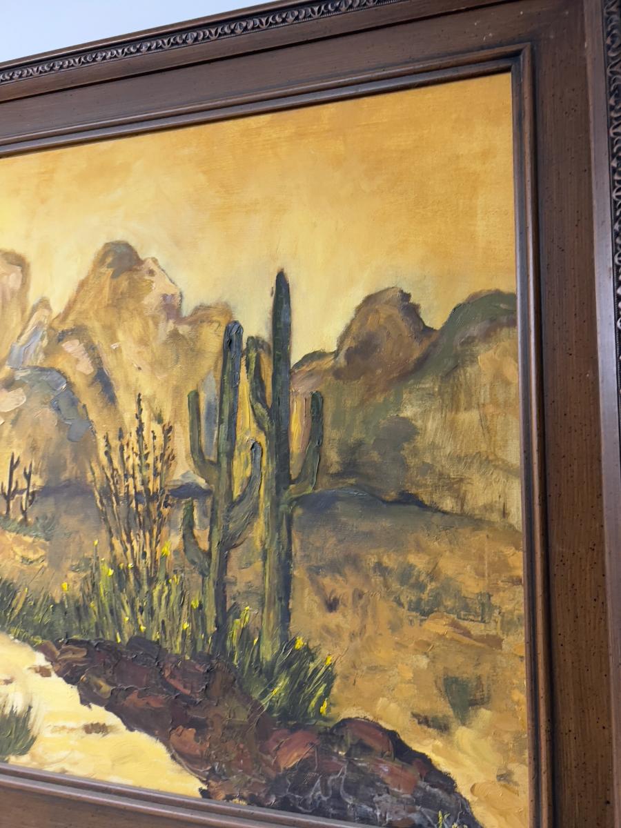 Oil in Canvas, CACTUS Desert Scene, Framed
