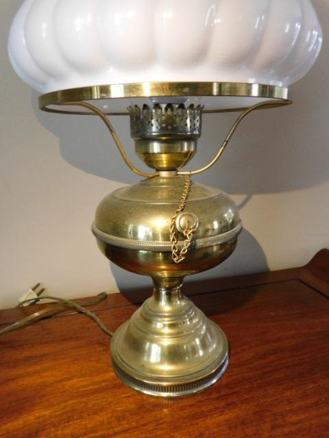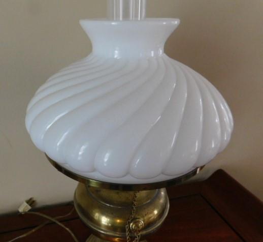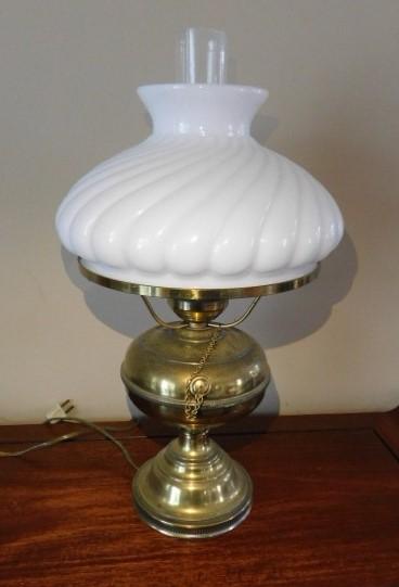 Electric Oil Lamp Brass Base with Opaque White Glass Shade 22"x10"