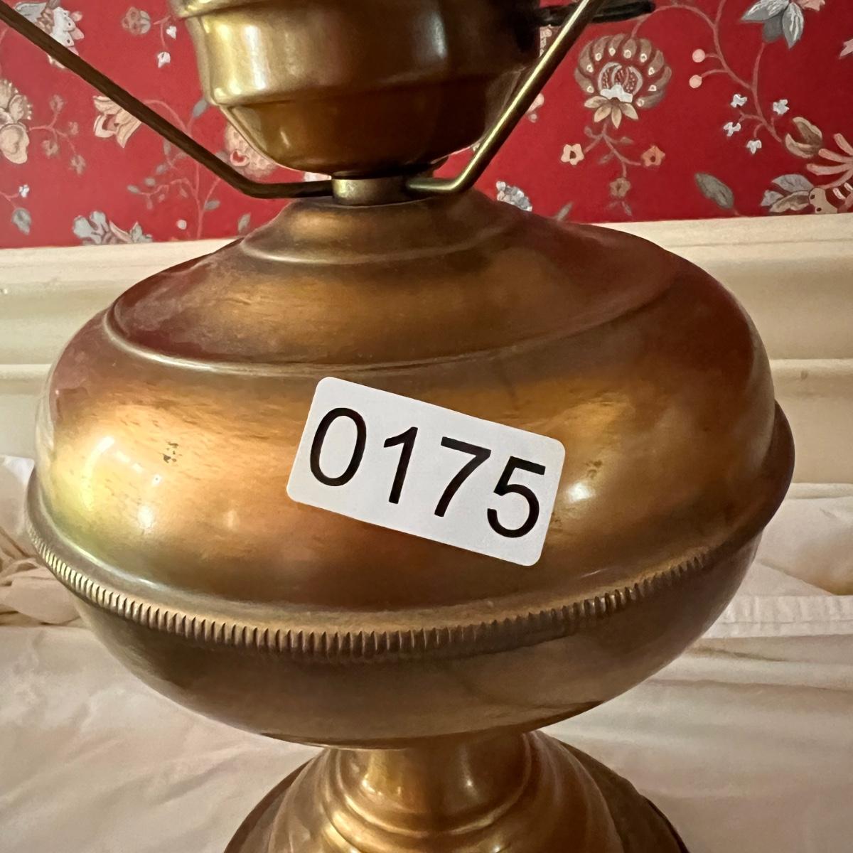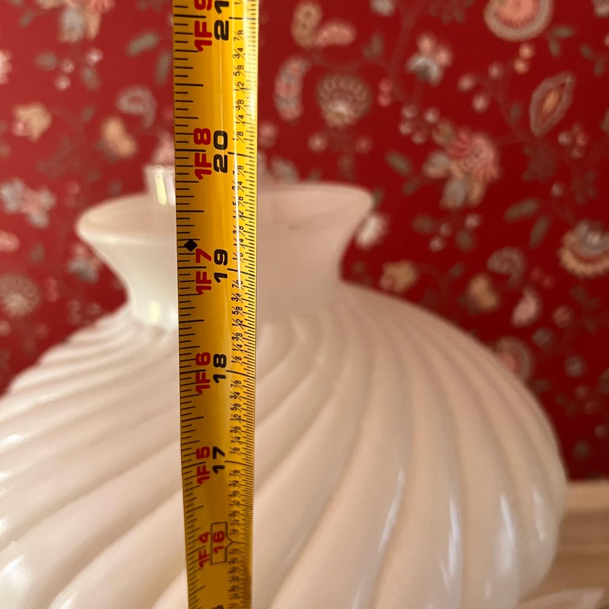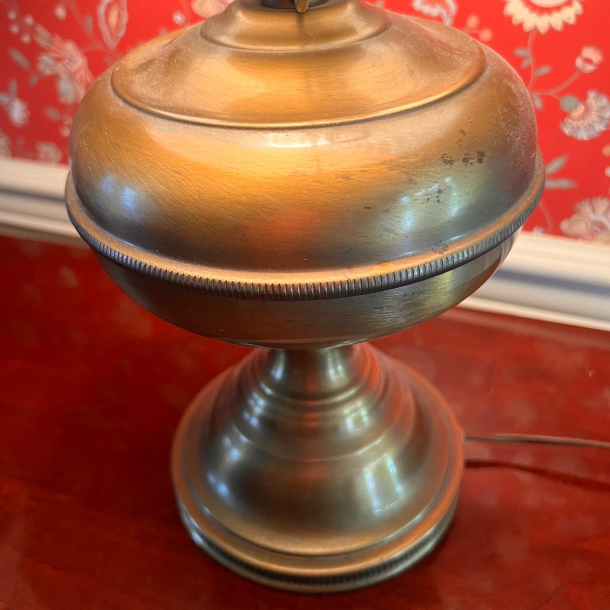Brass electrified hurricane lamp with white swirled milk glass shade in great condition.