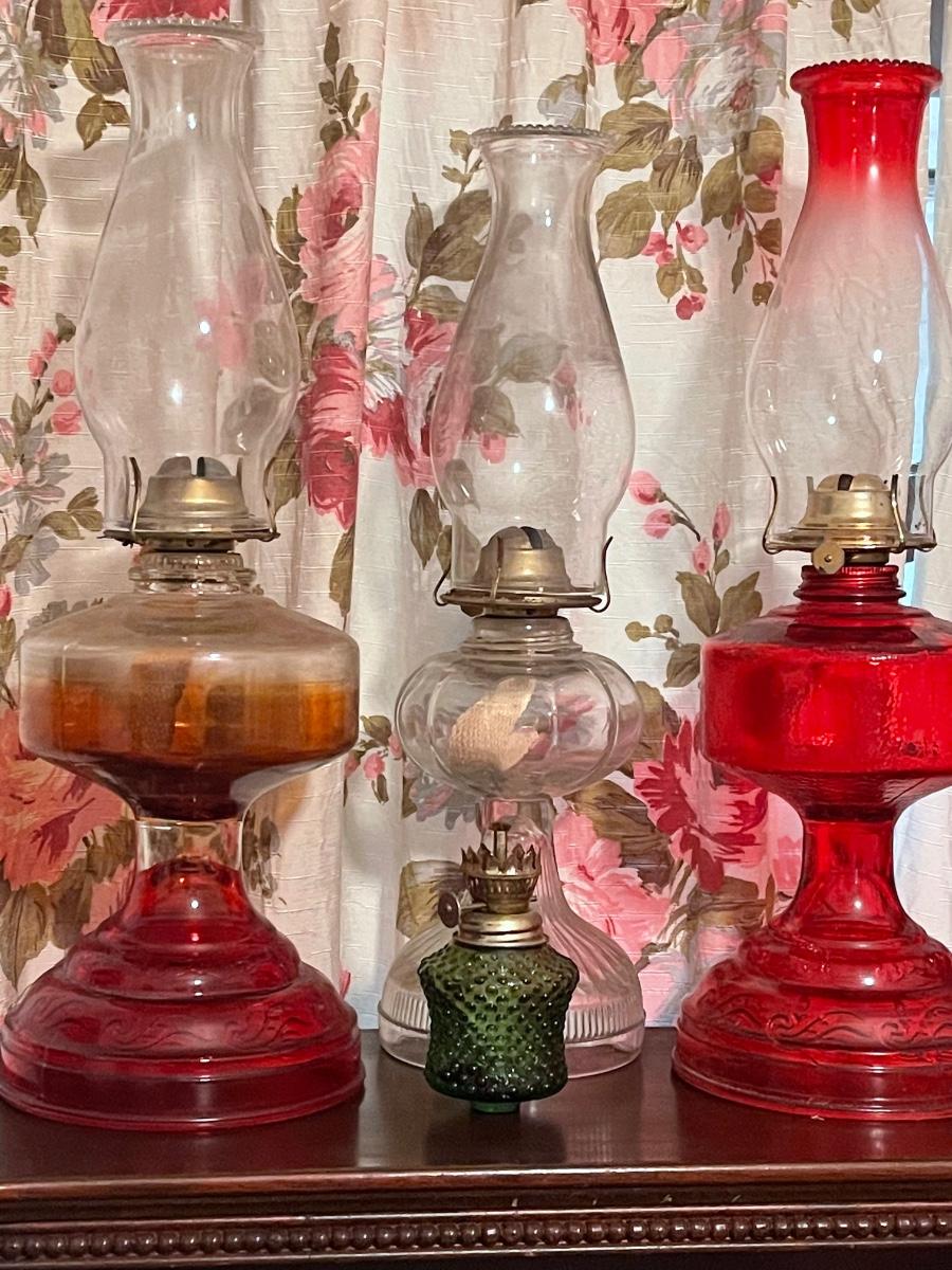 Assortment of styles and colors. Absolutely beautiful! Older ones for sure. These sure come in handy when the lights go out. All in good condition dust is present and some soot in chimneys. All vintage items in this sale show age and use.