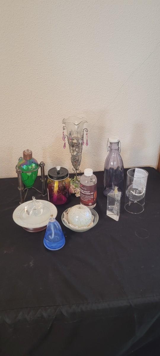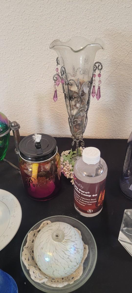 Oil lamp multiples and vase