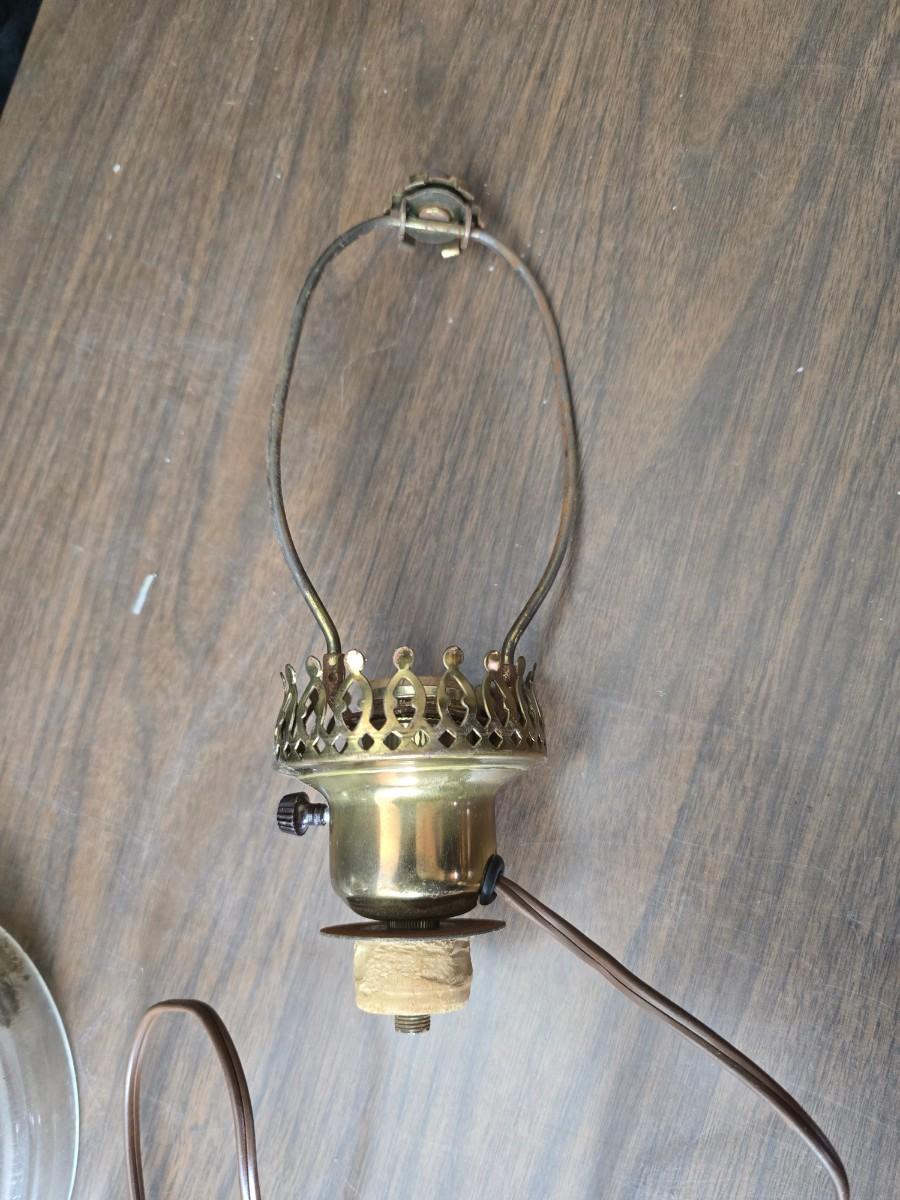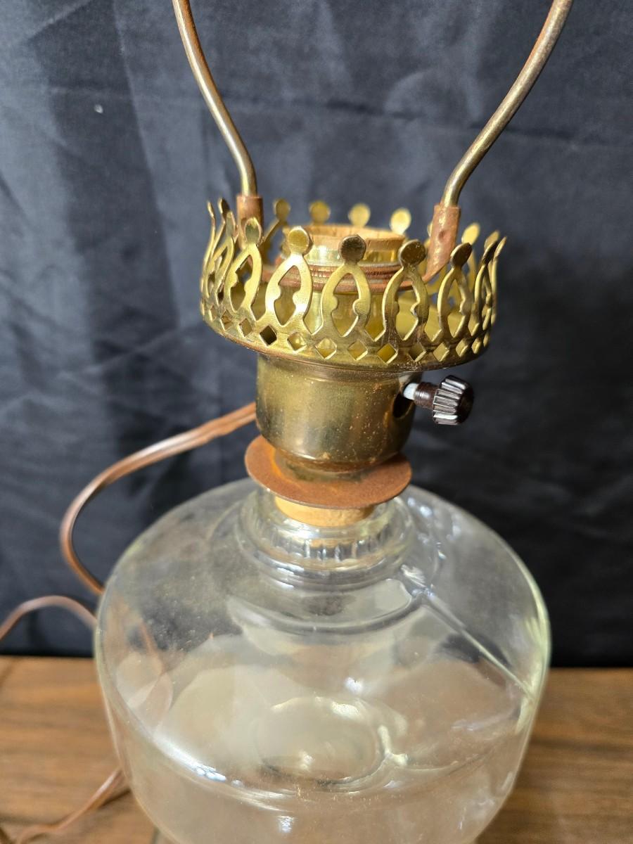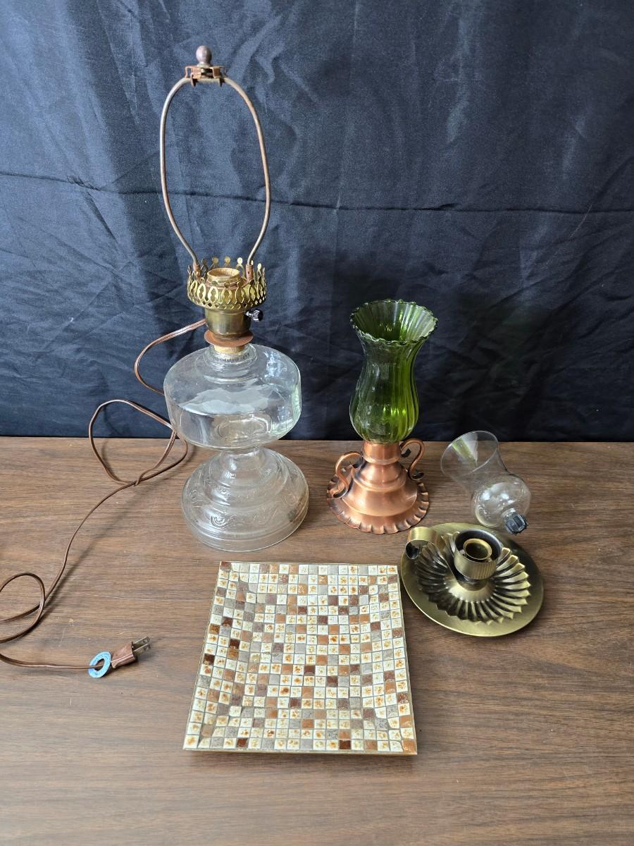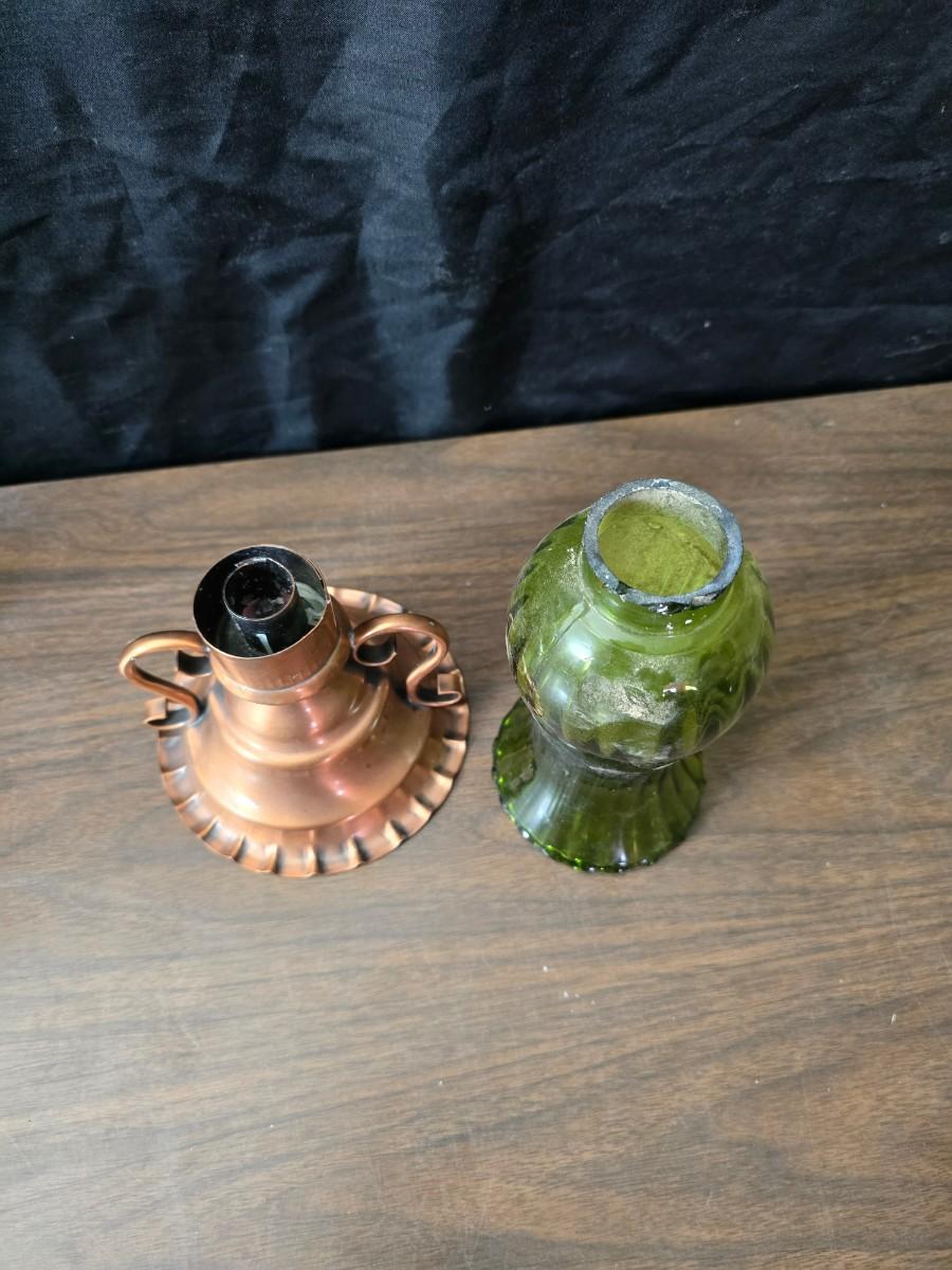 Oil lamp with electric corked attachment - two candle sconces and a decorative candle plate