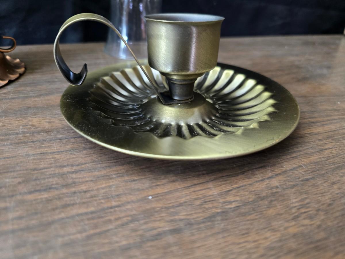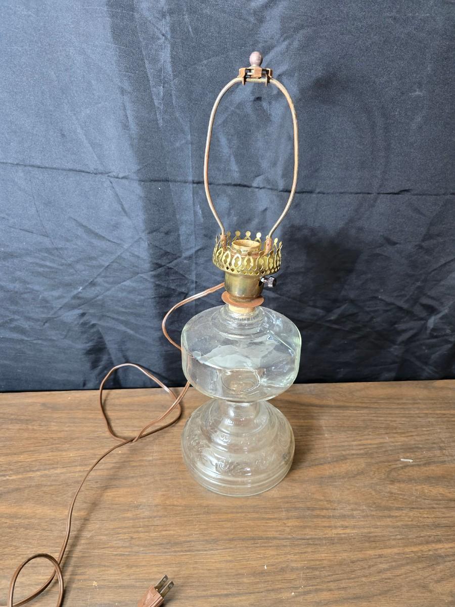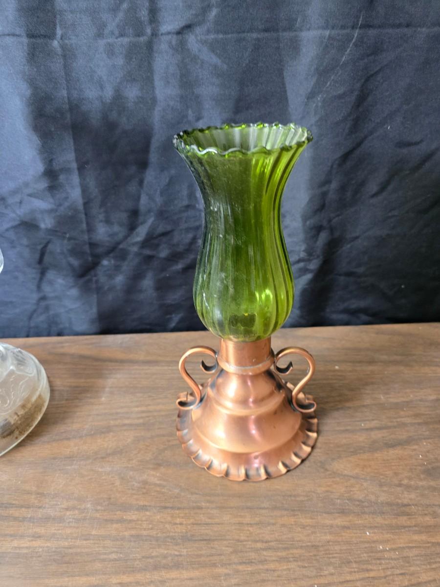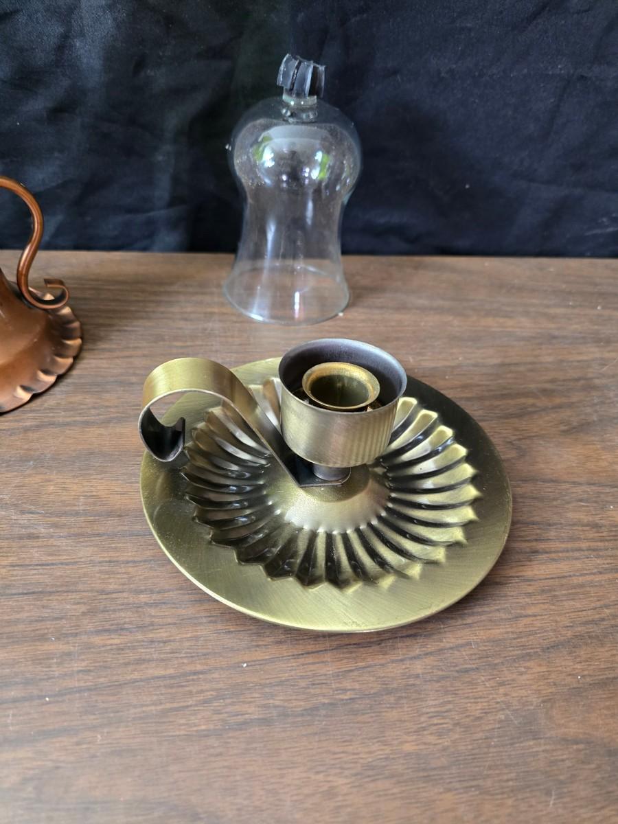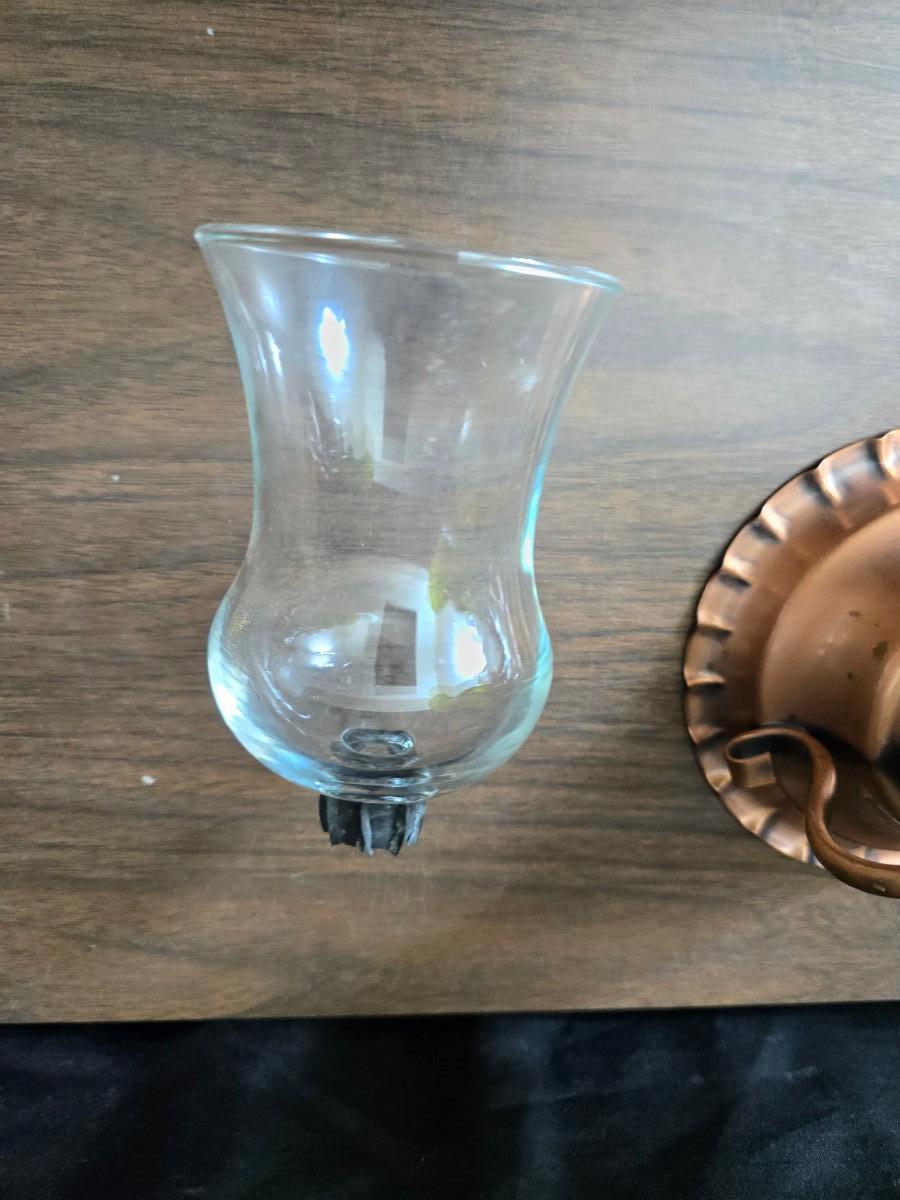 Oil lamp with electric corked attachment - two candle sconces and a decorative candle plate