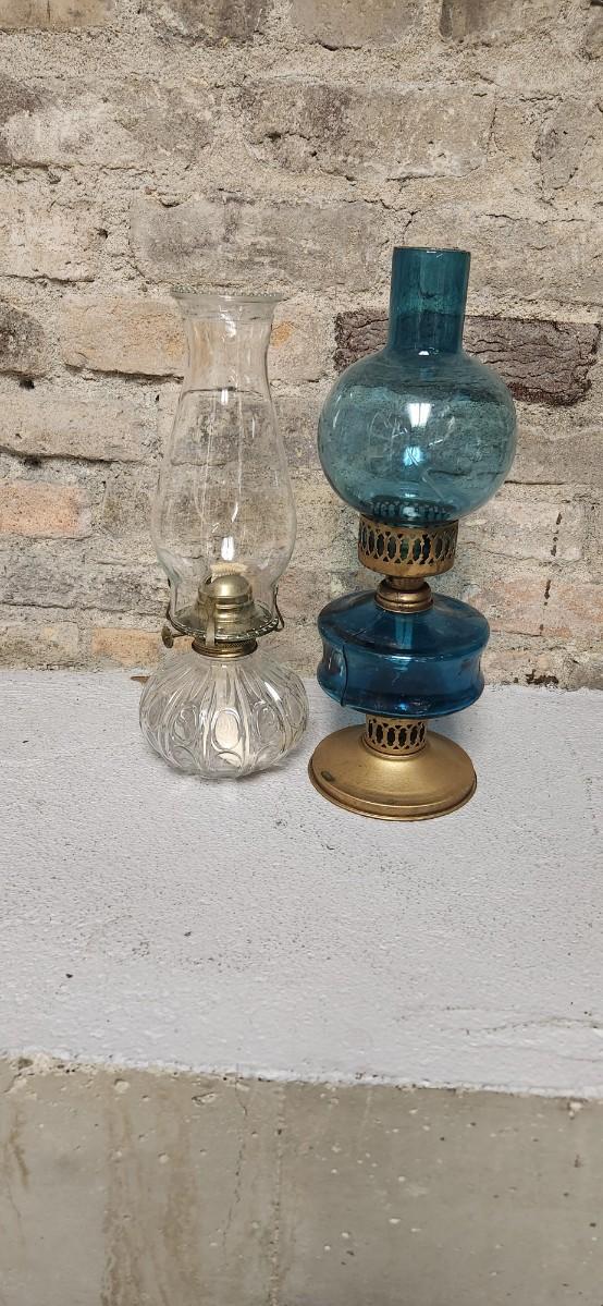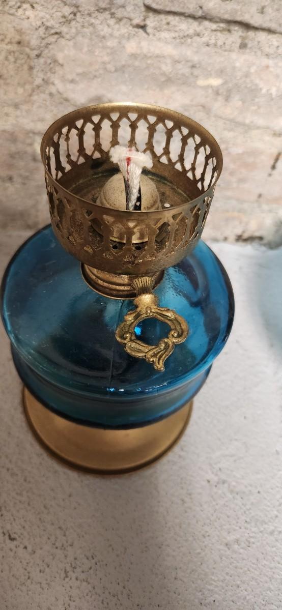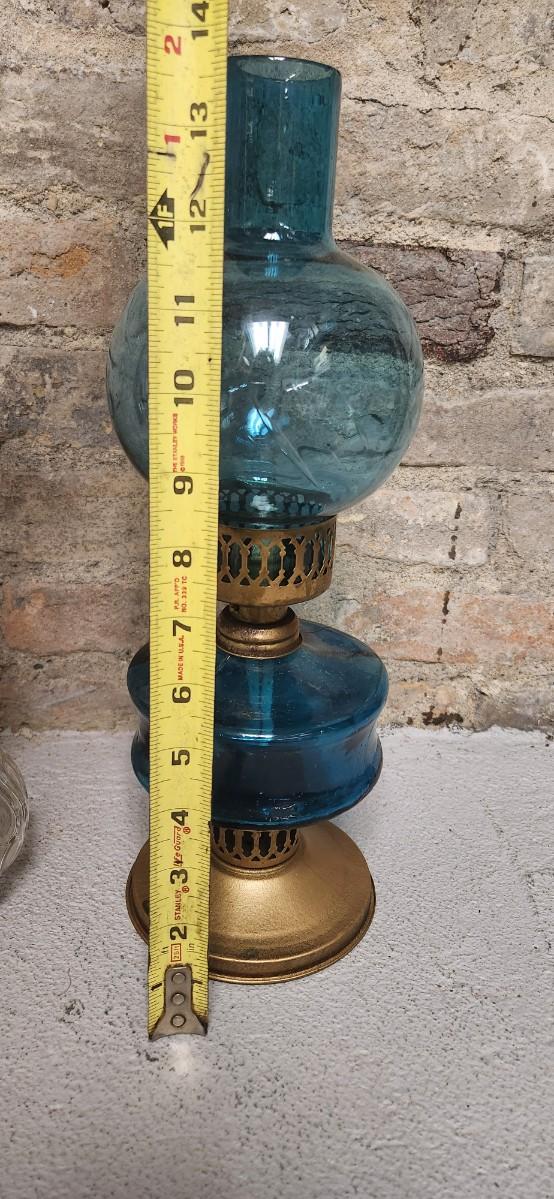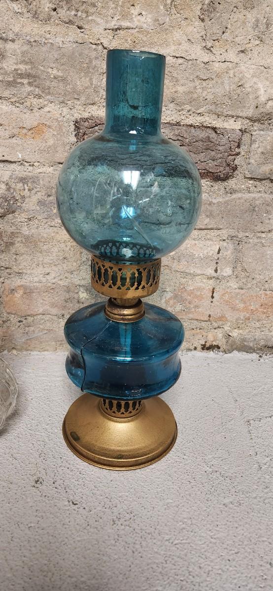 Thumbprint and Bar oil lamp and a spectacular turquoise Glass Lamp