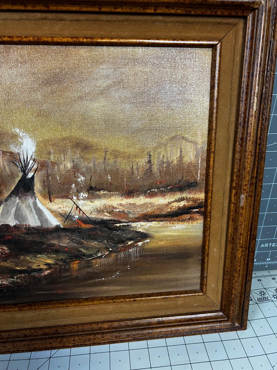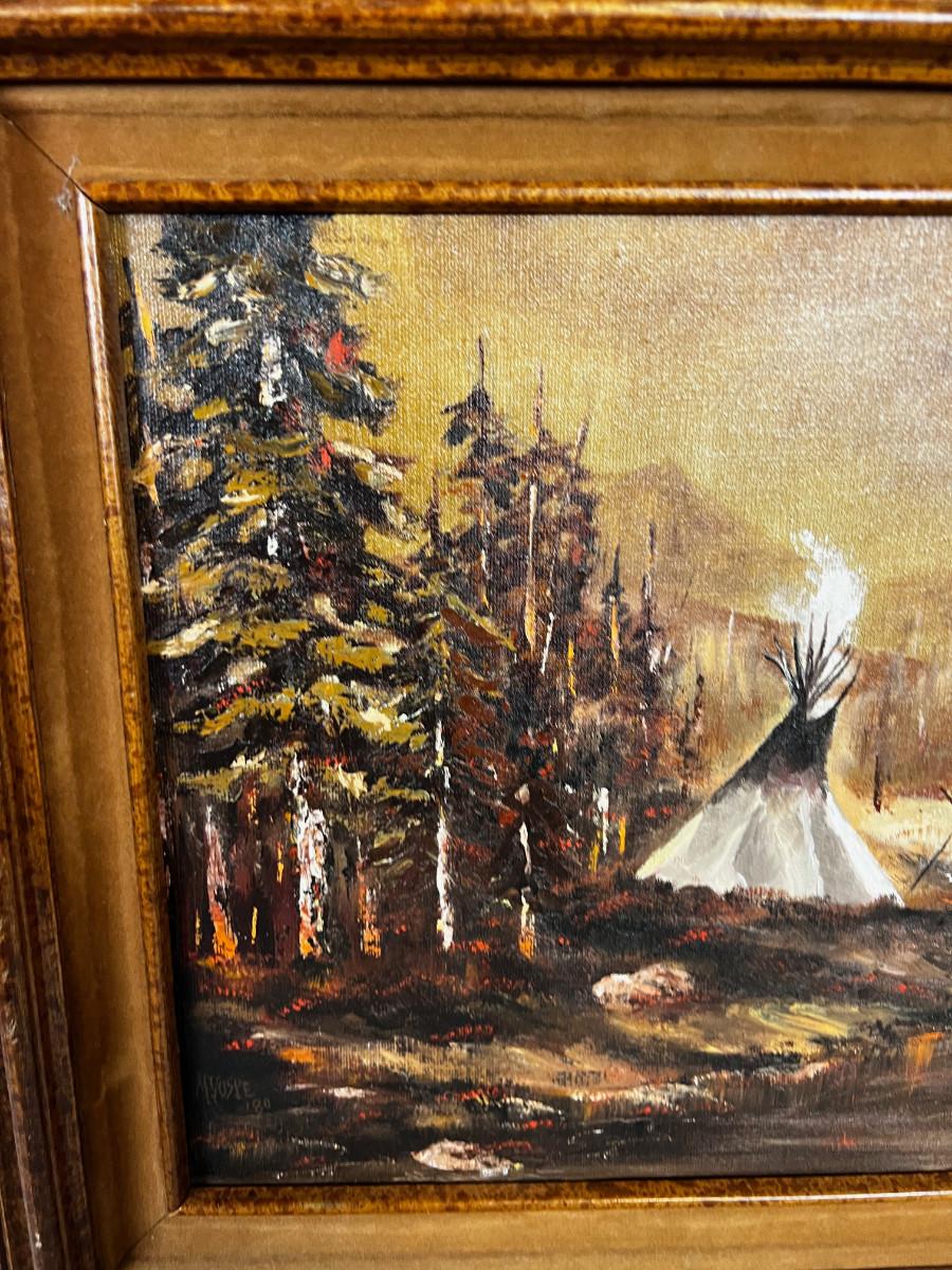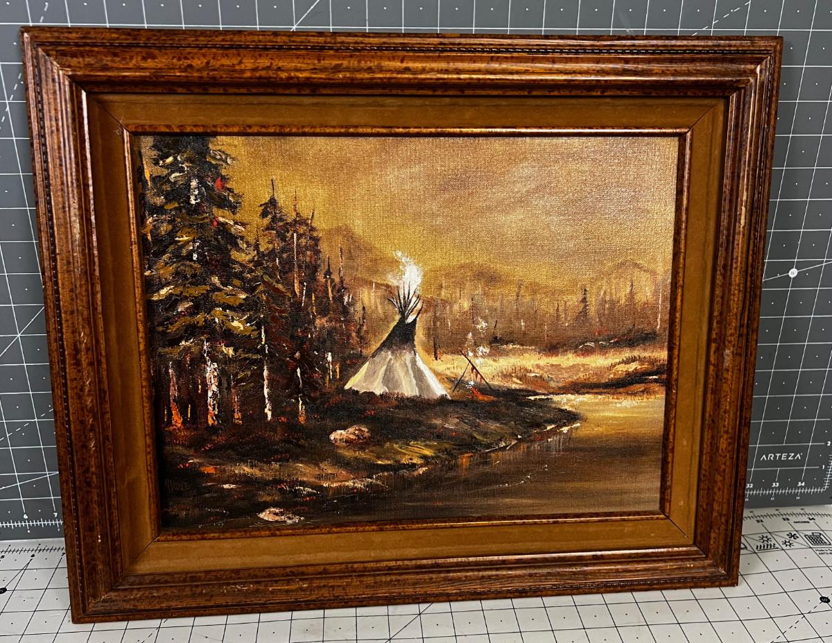 Oil o Canvas, Tepee by the Stream Not signed Framed