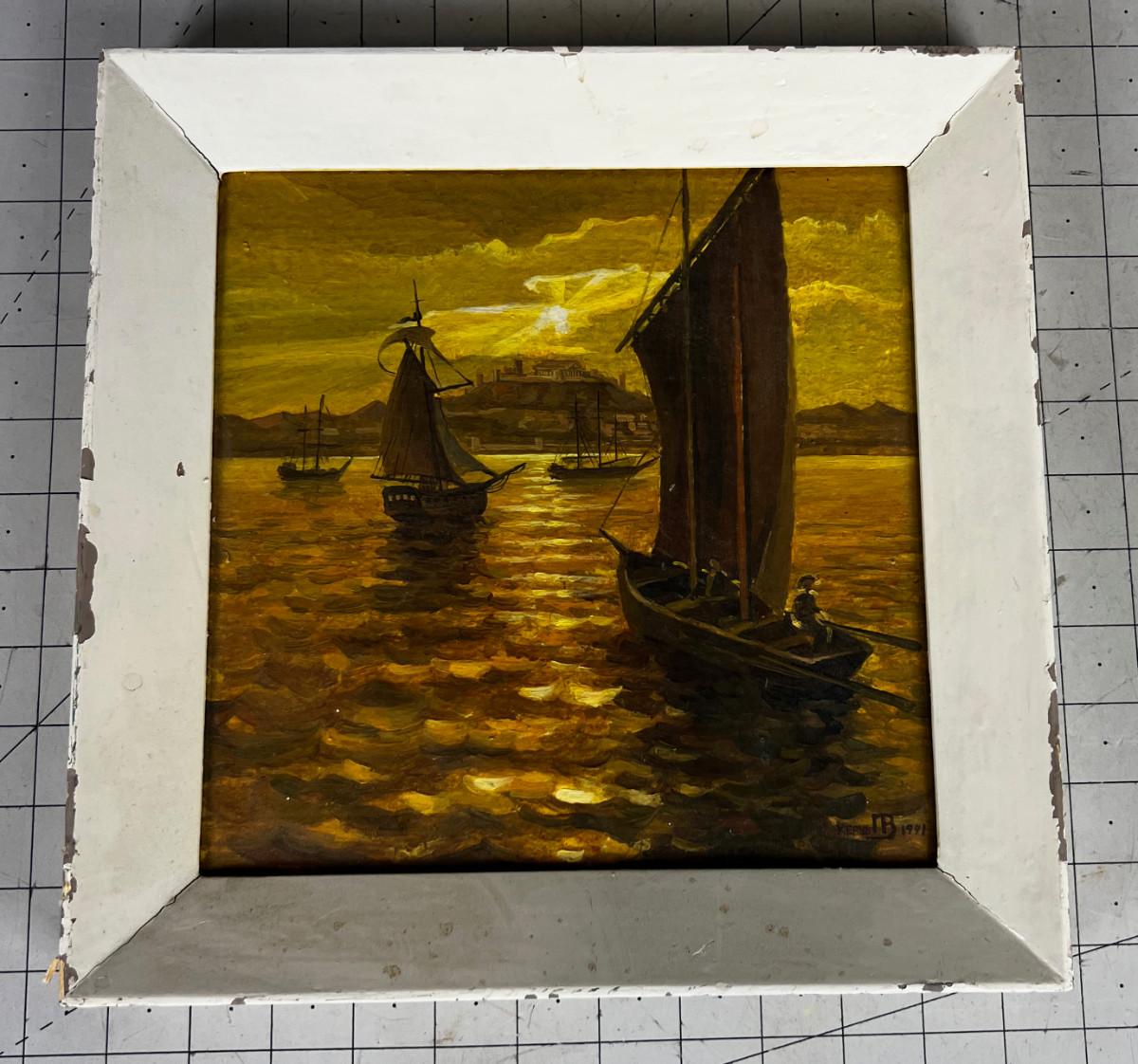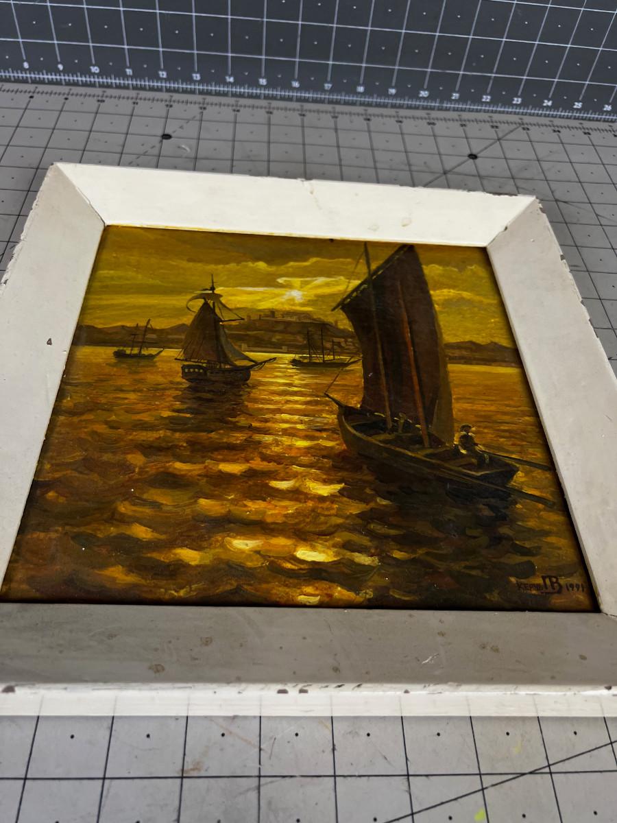 Good condition, 12" by 12" signed in what appears to be Greek. Dated 1991.