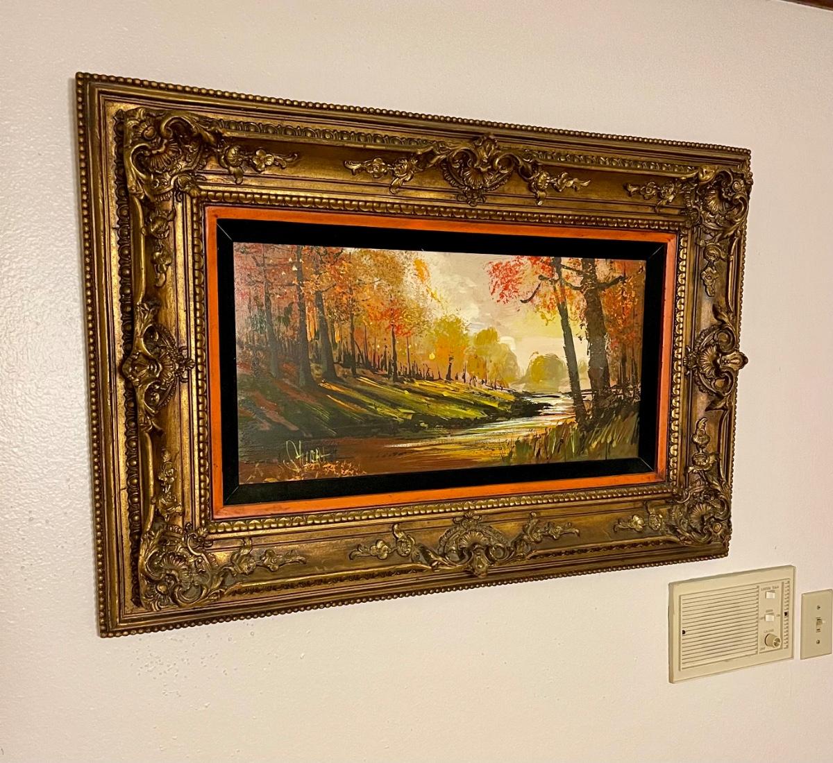 Mid century oil on canvas painting by English artist Stuart 36 " x 24"