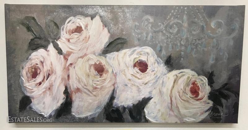 Oil on canvas by Susan Brown large flowers, 40" by 20". Lot#38
