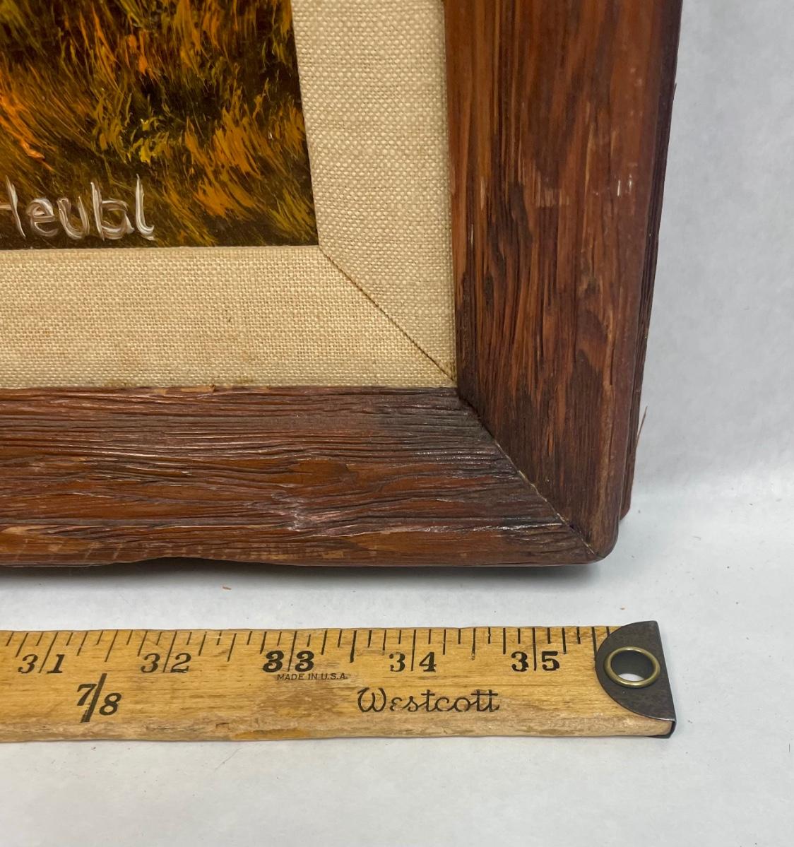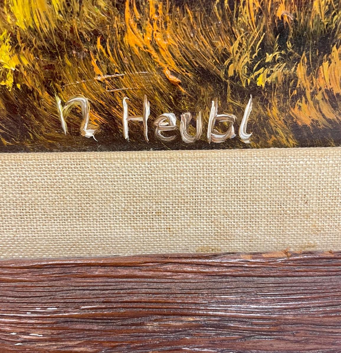 German artist Huehl. Painting is in very good condition, frame has some damage in the upper-left corner.