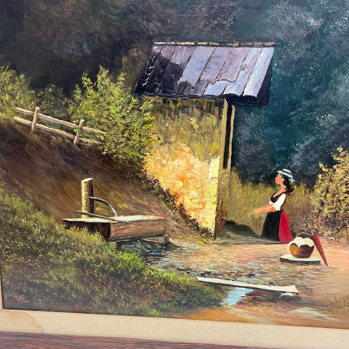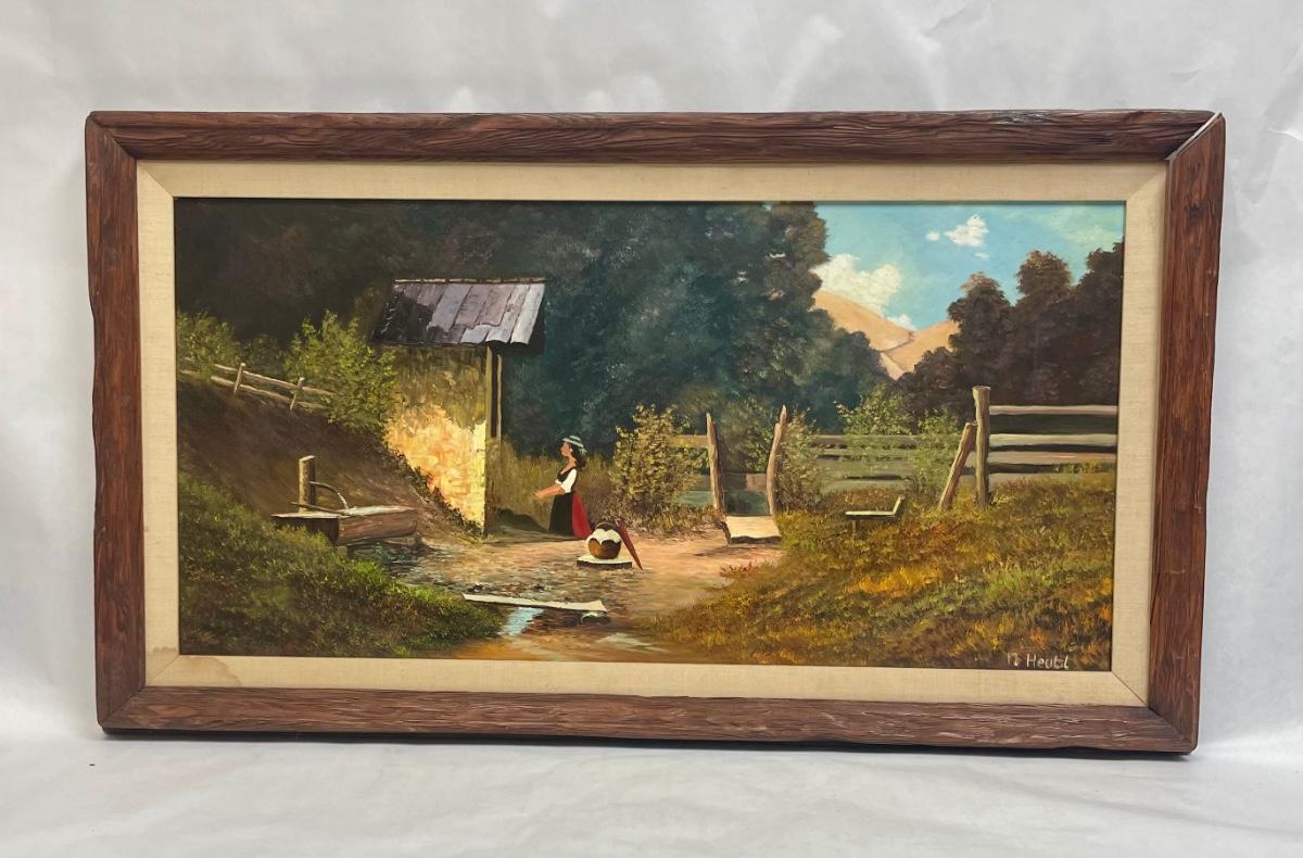 Oil on Canvas Farm Life Painting Landscape Framed Large