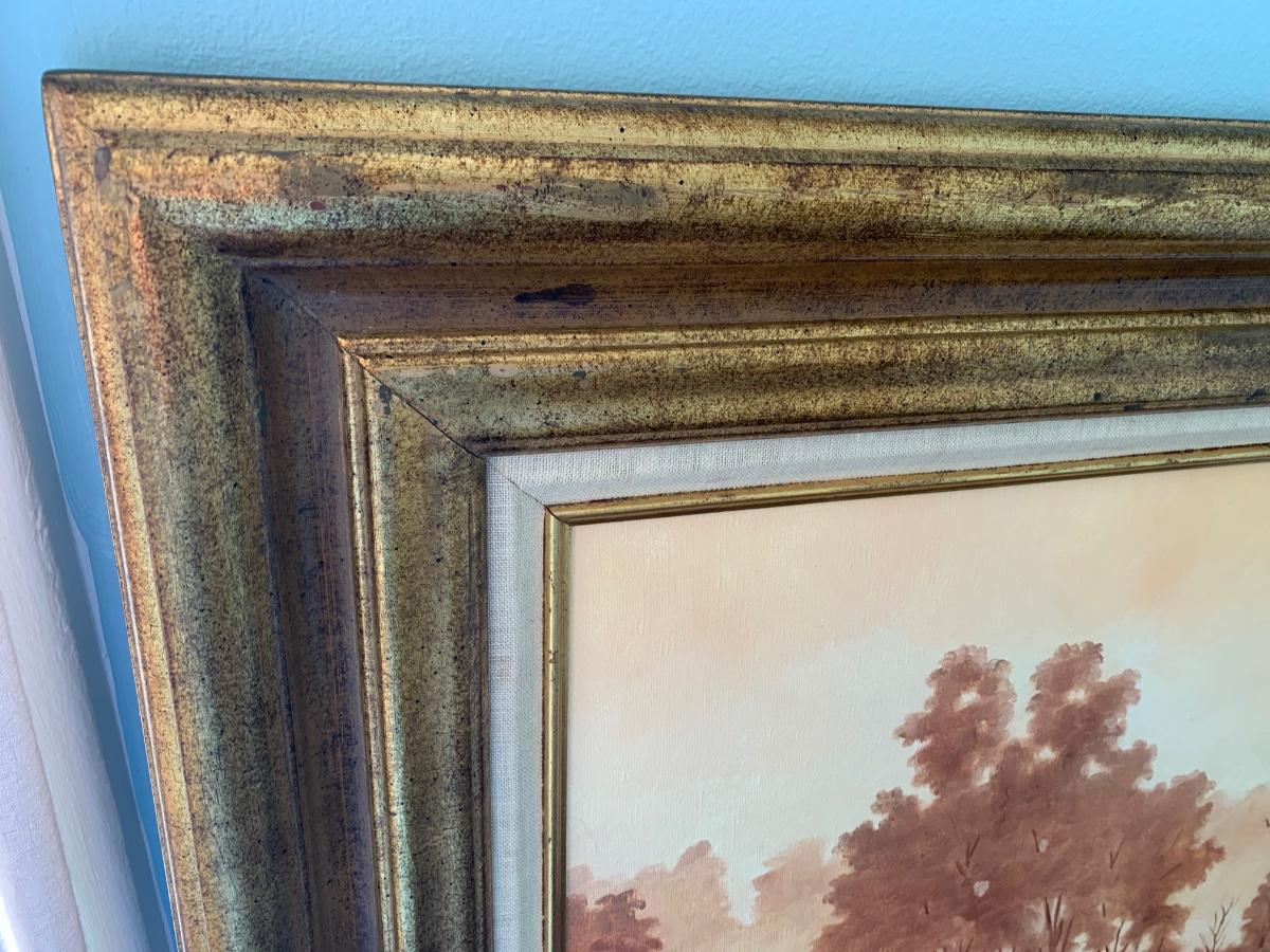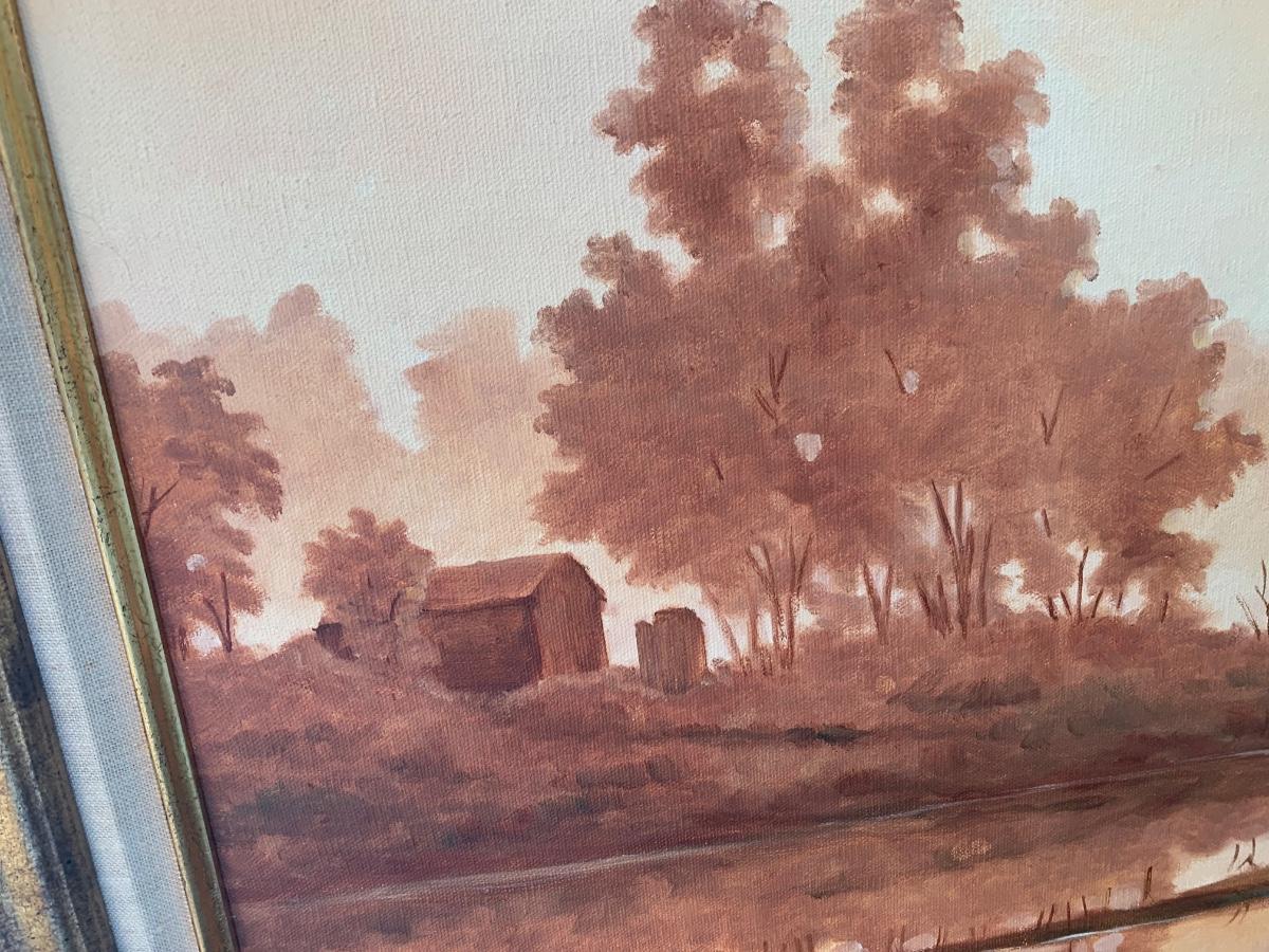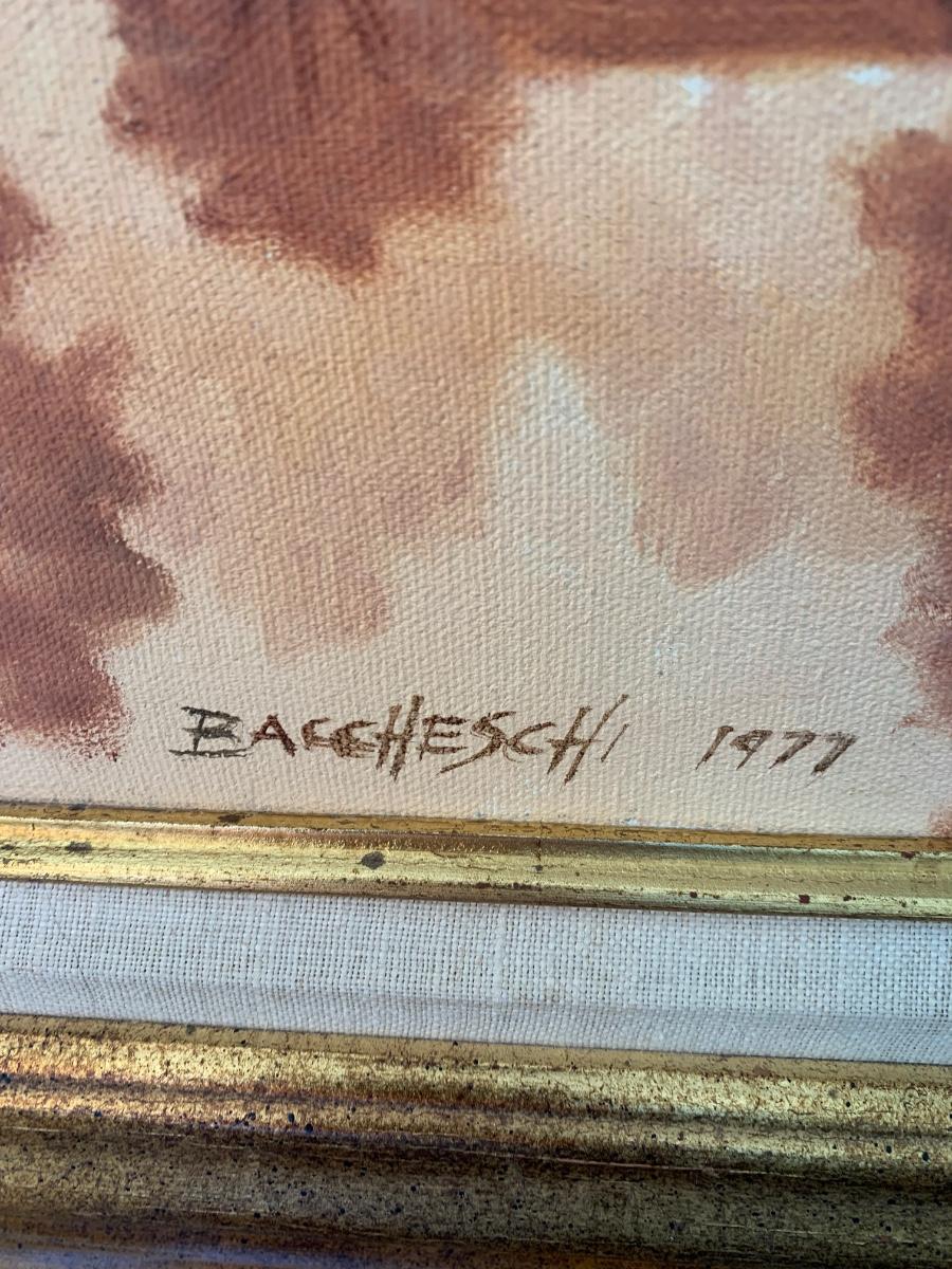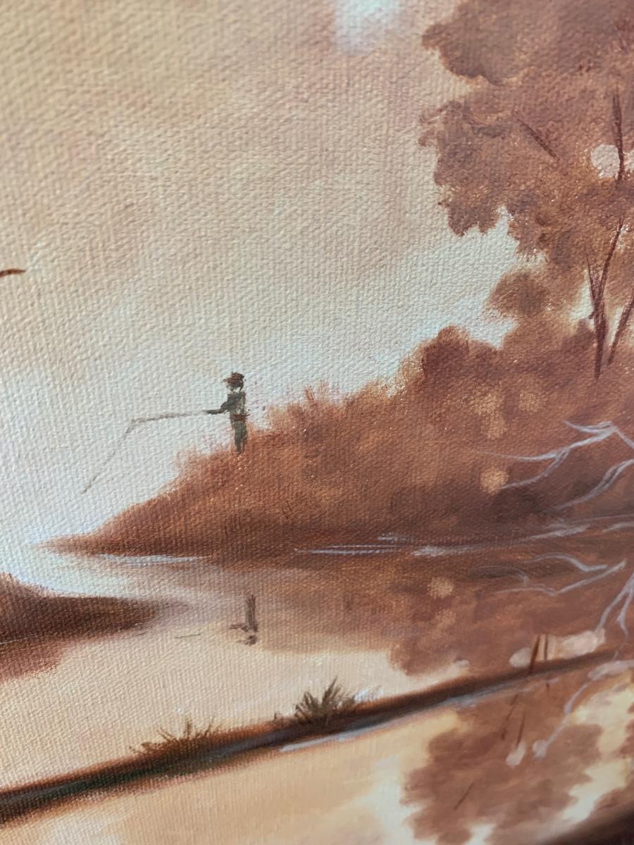 Signed Oil On Canvas Lake Scene Fishing Dennis Baccheschi 1977 Framed