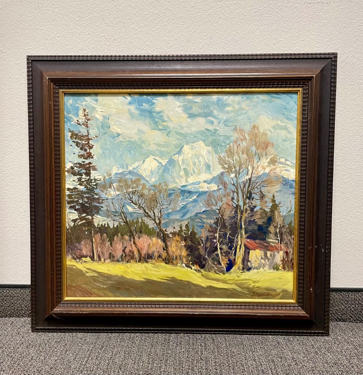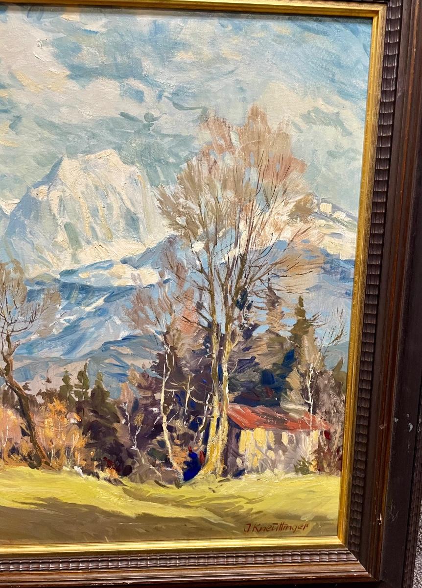 Oil on Canvas Landscape Painting, Framed and Signed by J. Knuettinger
