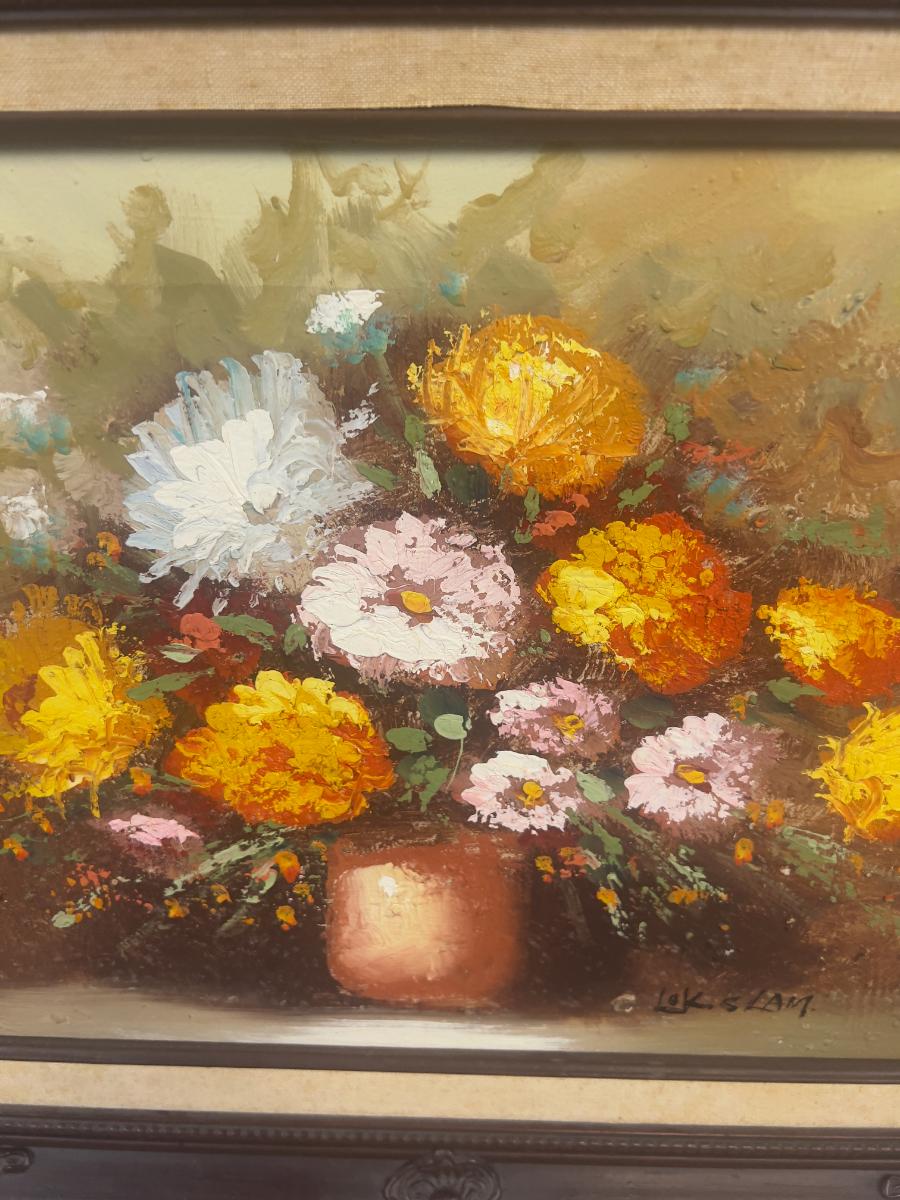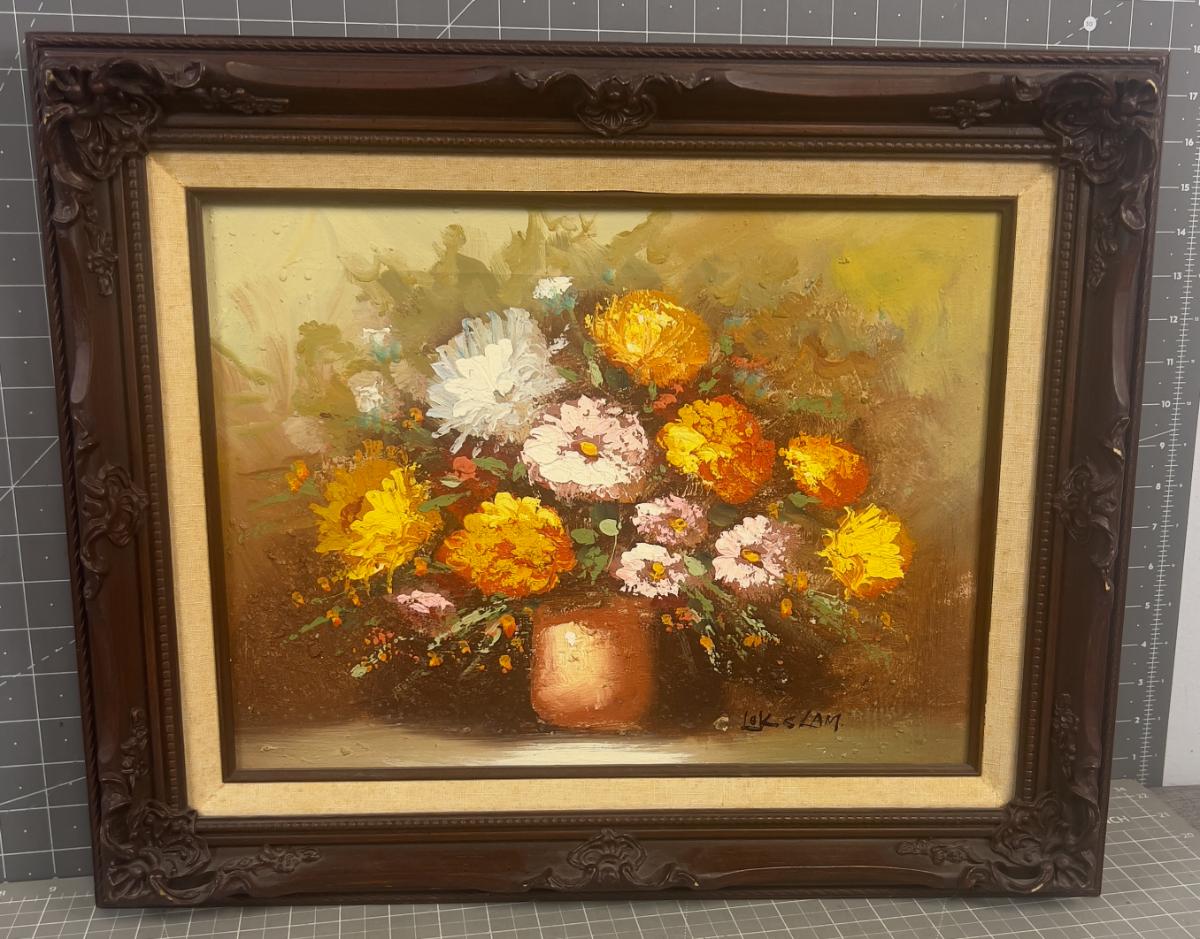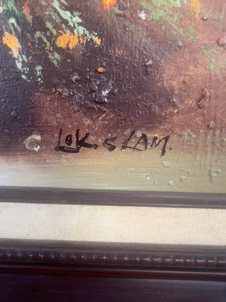 Oil on Canvas Orange Floral Vase Signed Lokskam