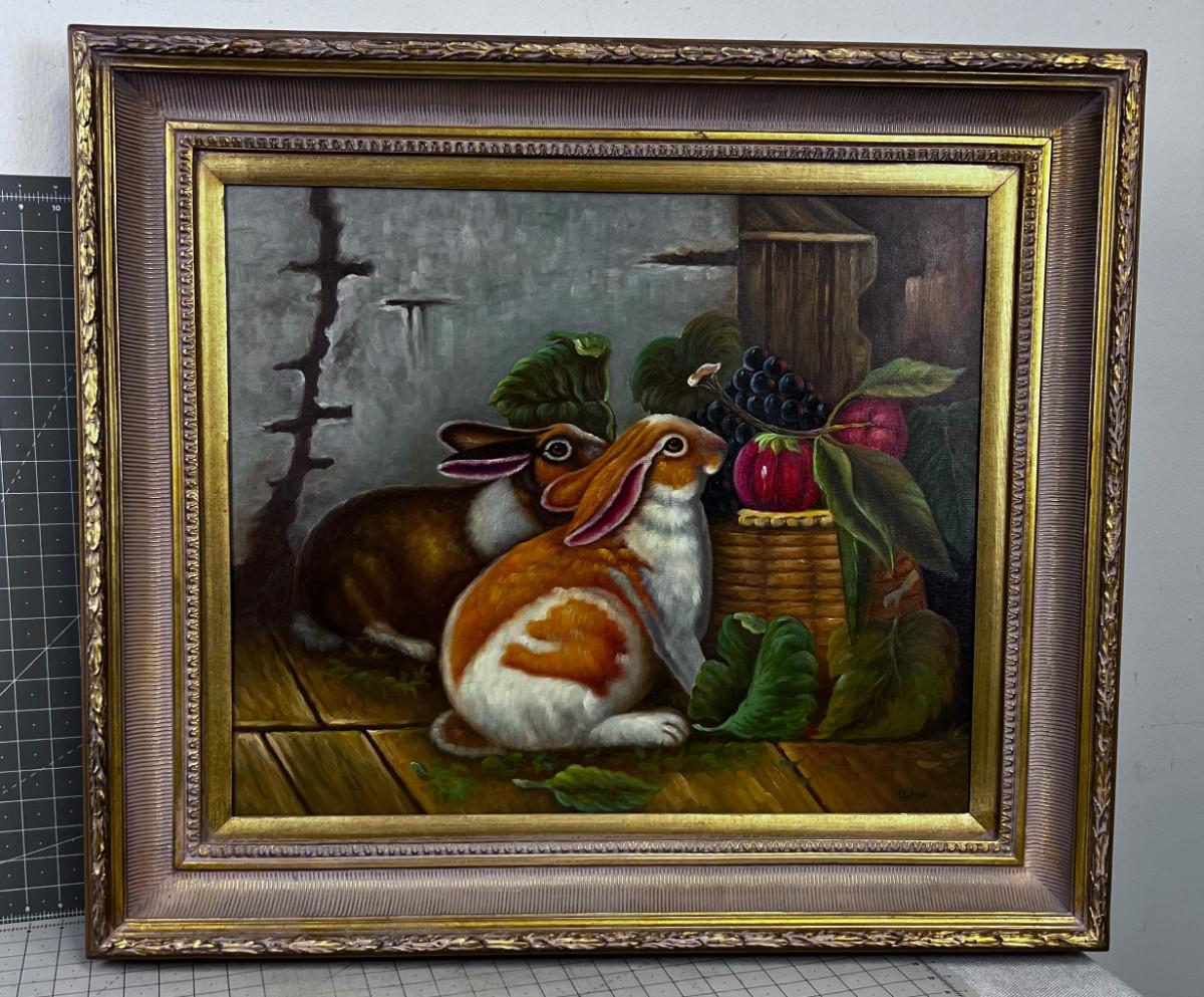 Oil on Canvas, Rabbits, Beautifully framed by OCHOA