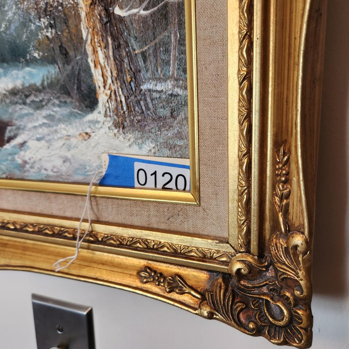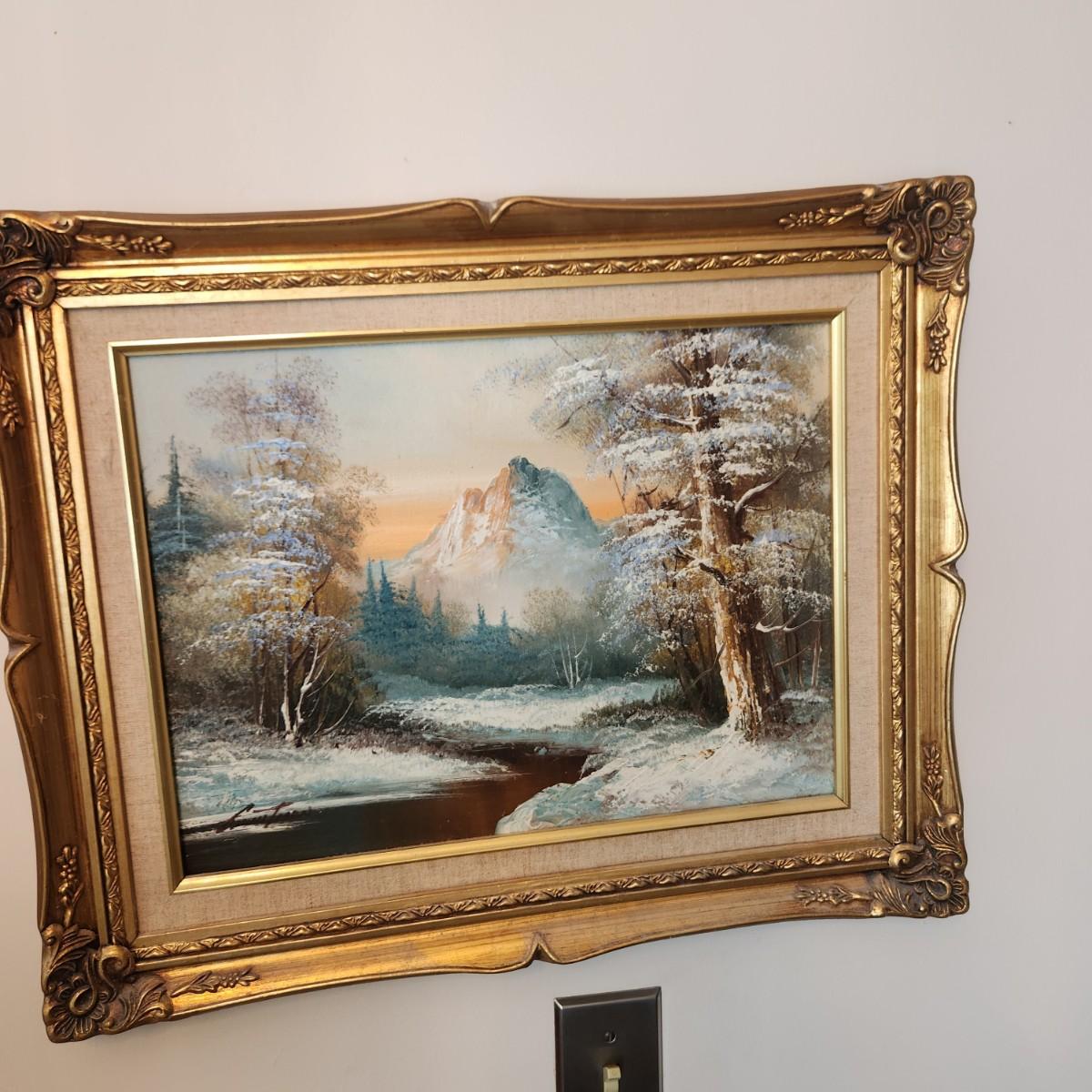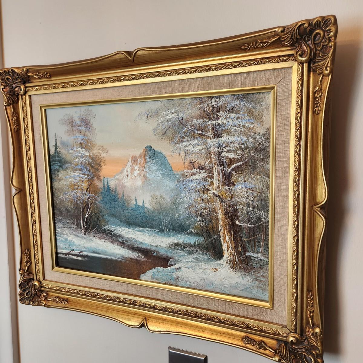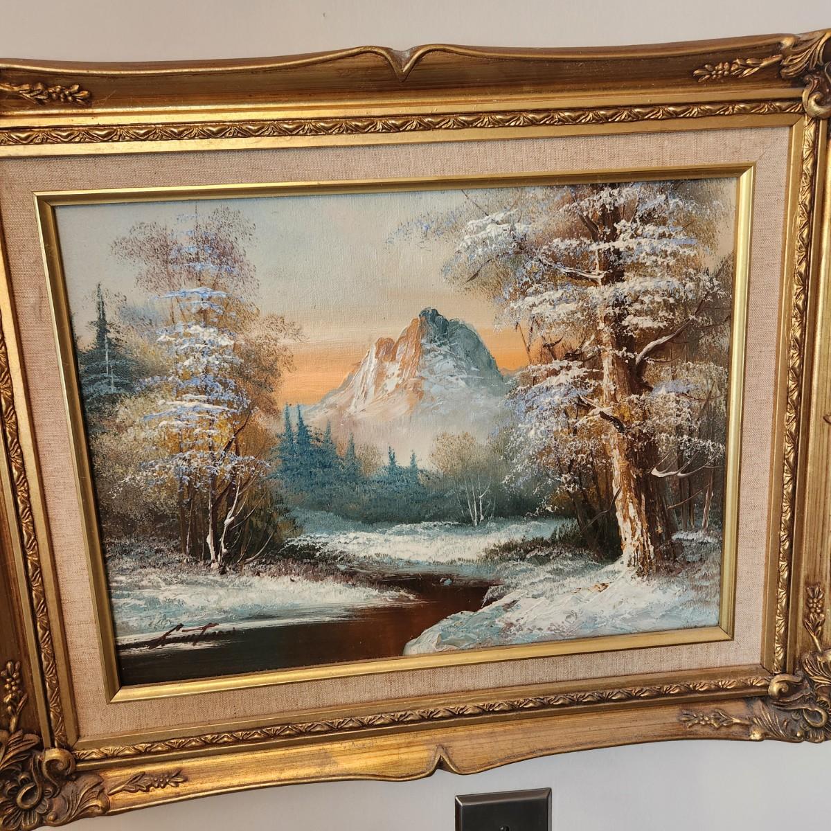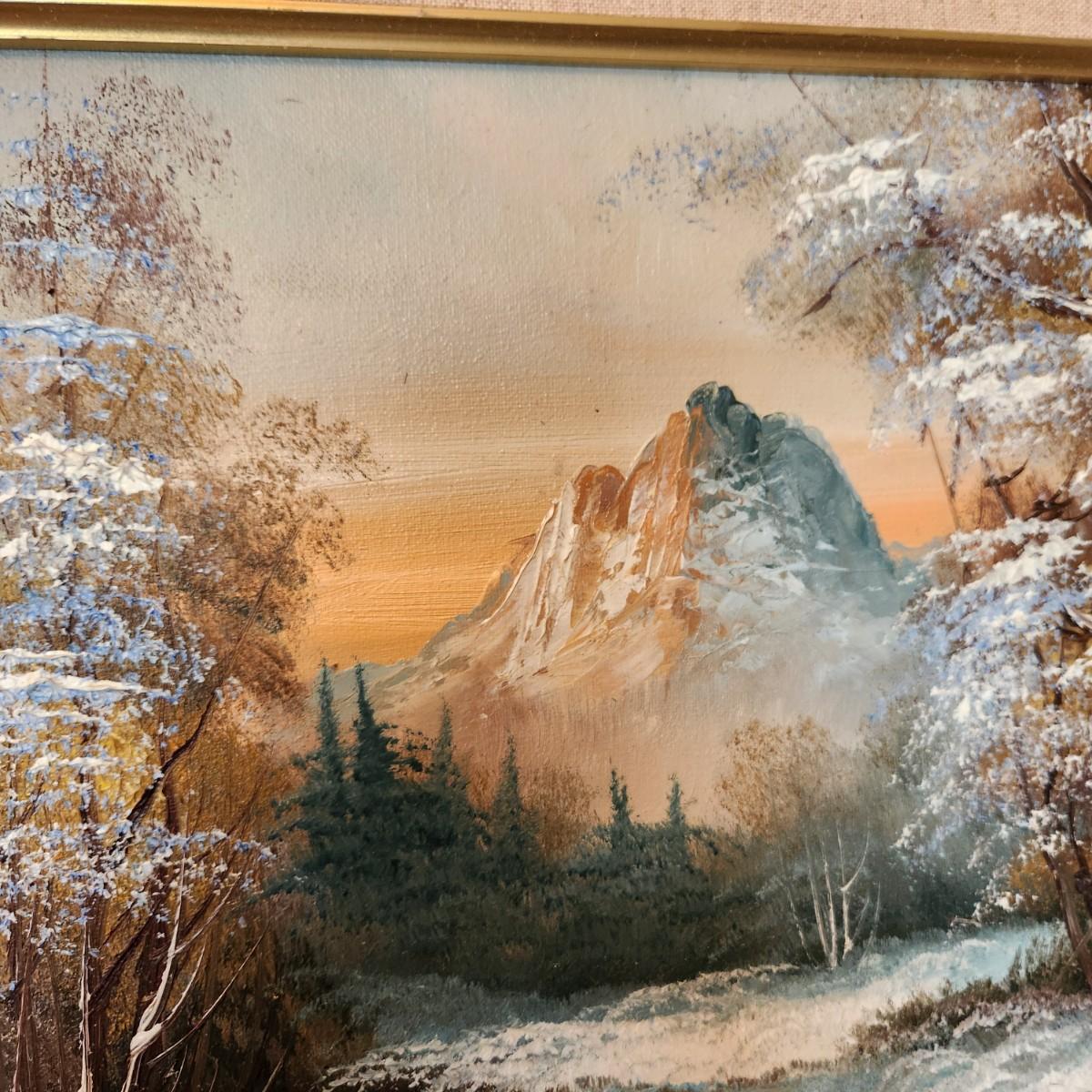 Oil on Canvas Signed Painting Winter Mountain Landscape