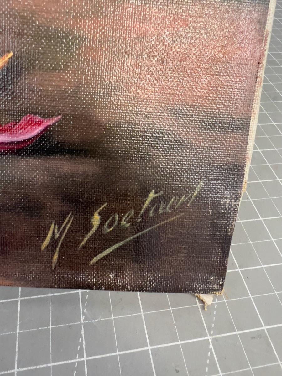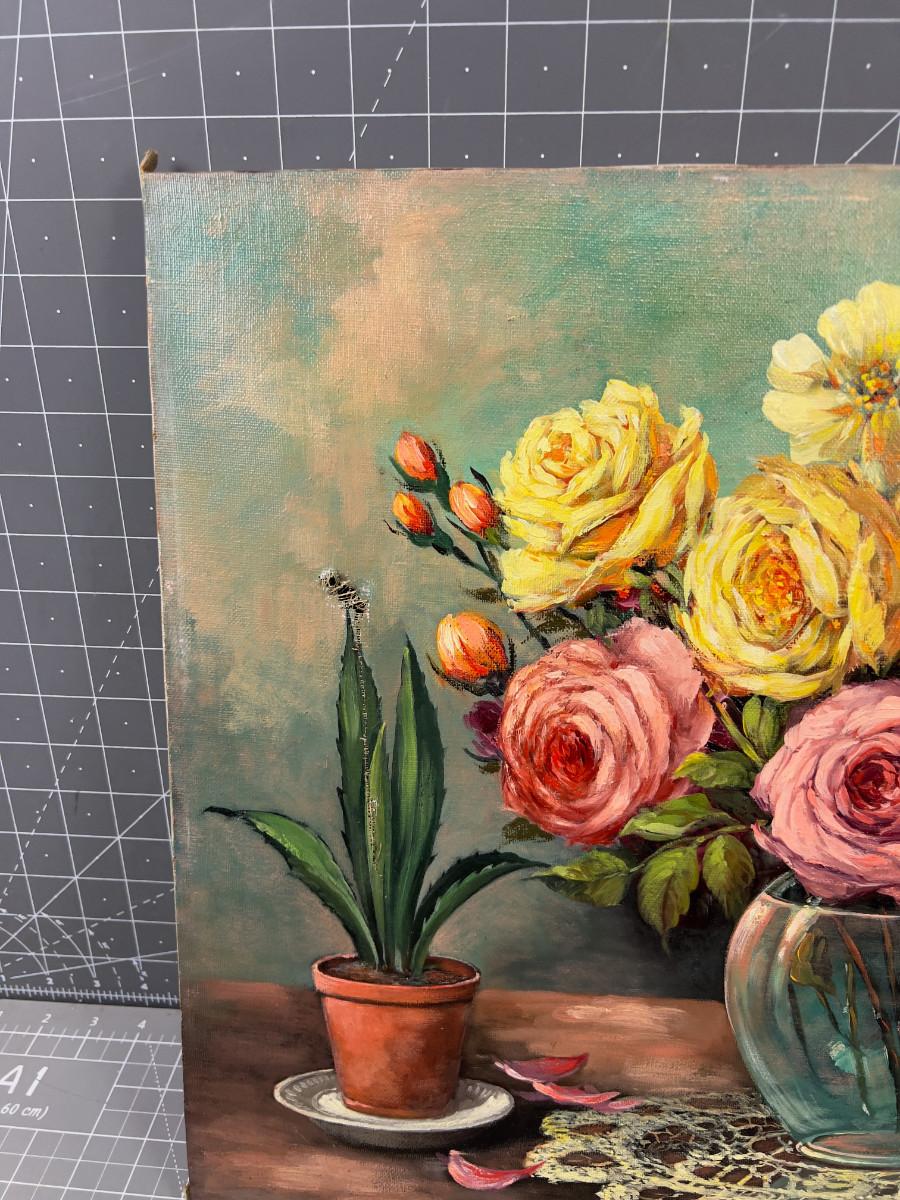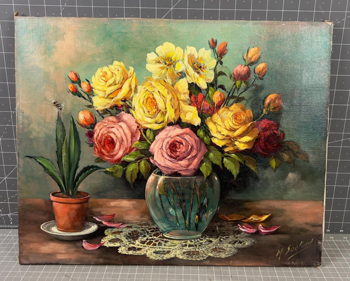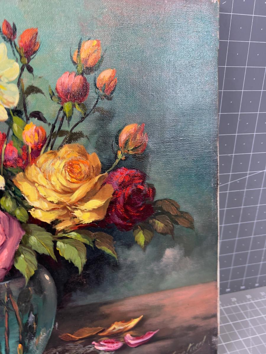Oil on Canvas, Signed, Still Life Vase of FLOWERS