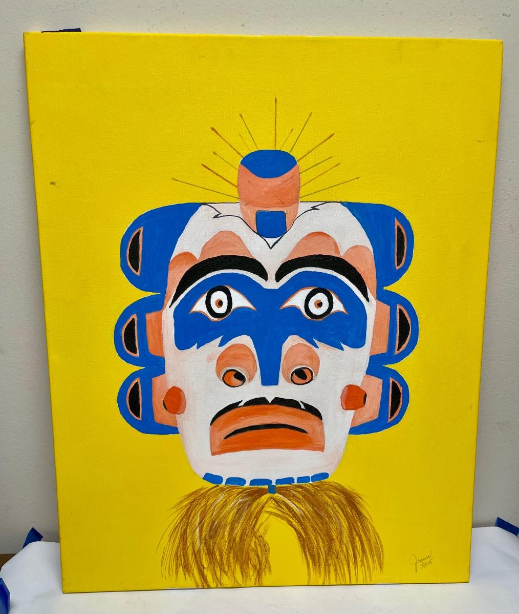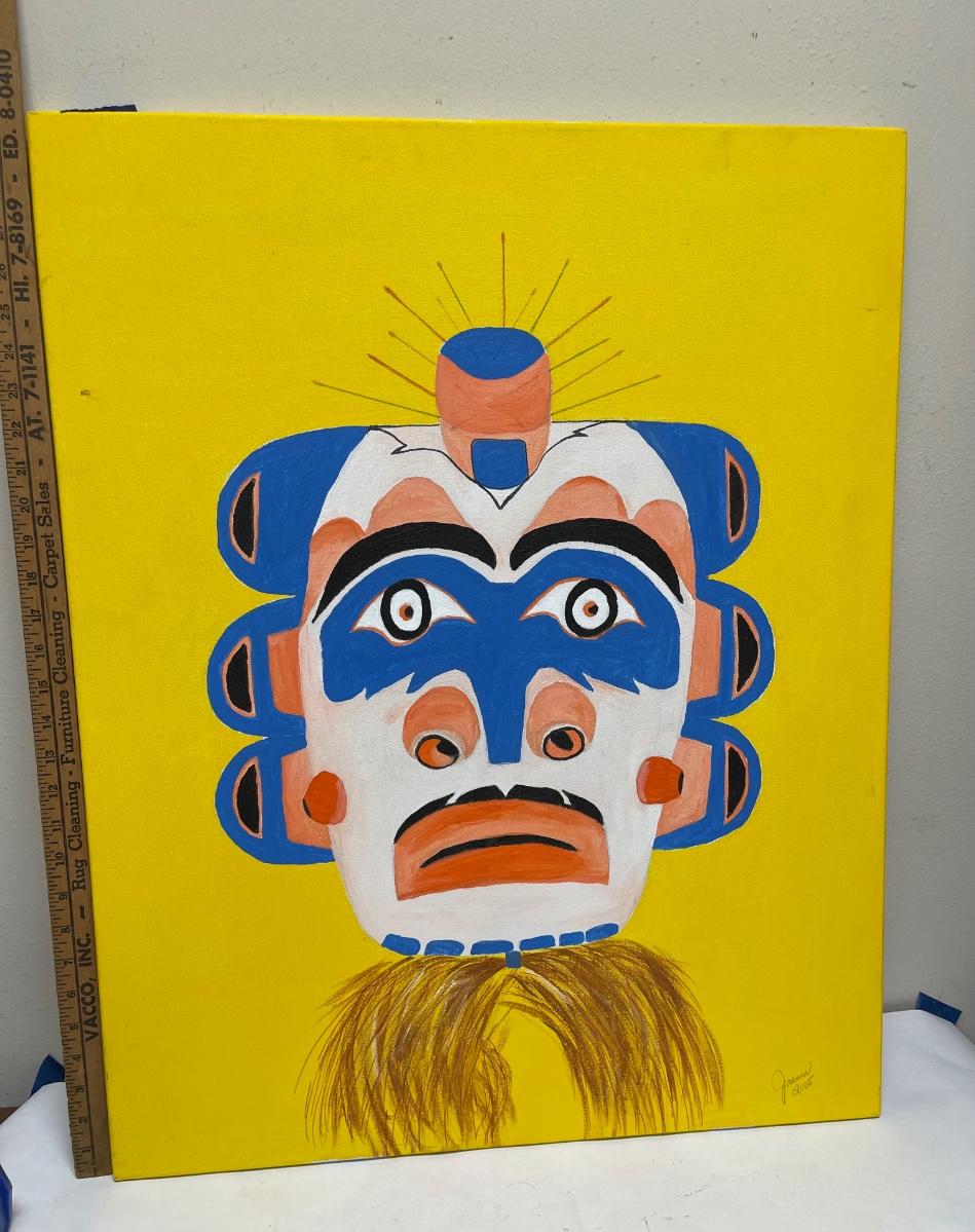 Oil on Canvas Tribal Mask Painting by Joana Contemporary Modern
