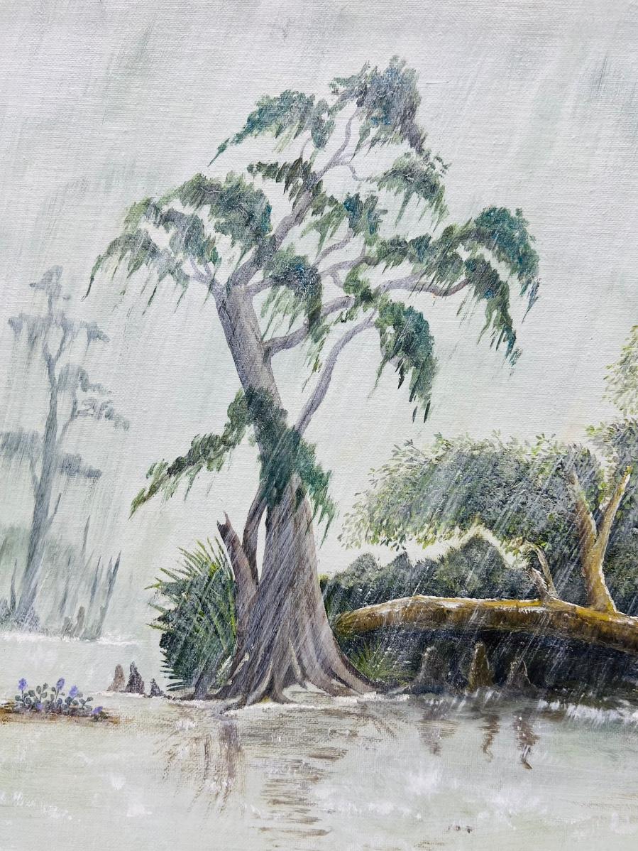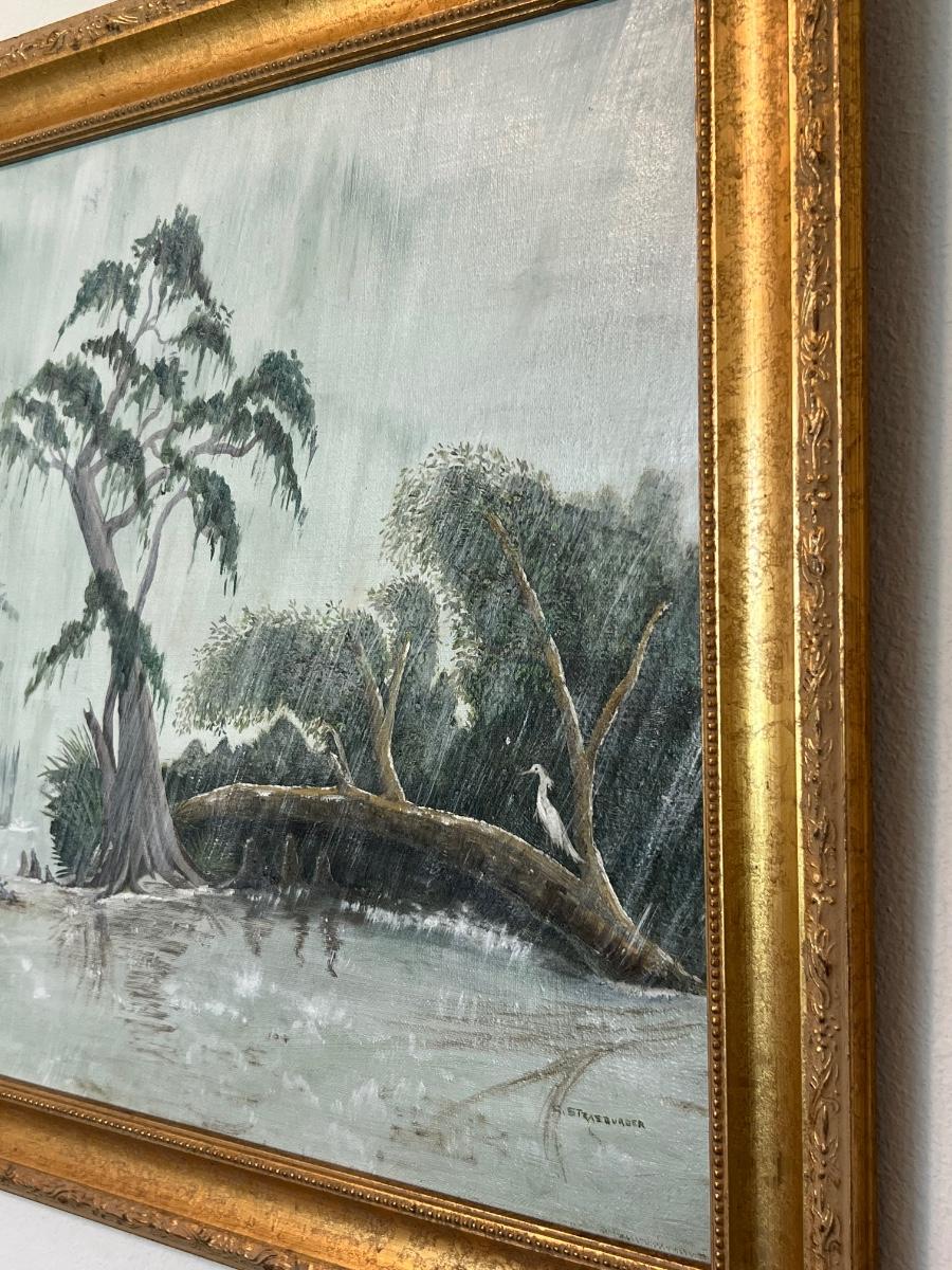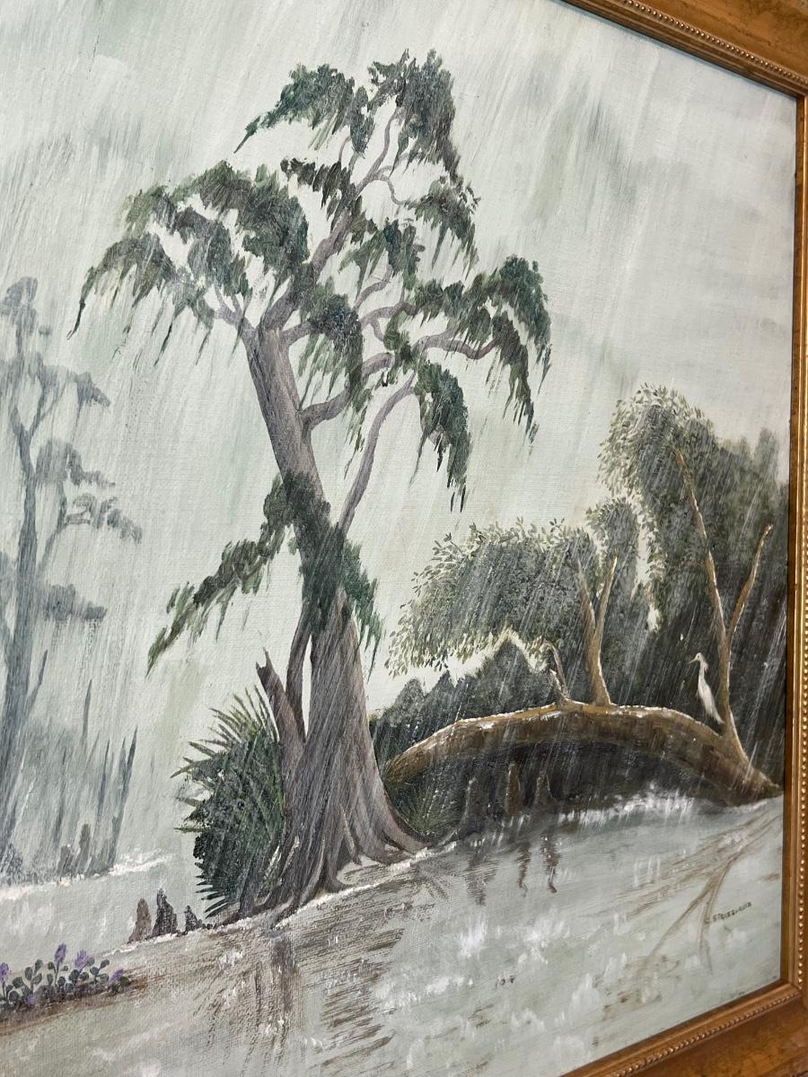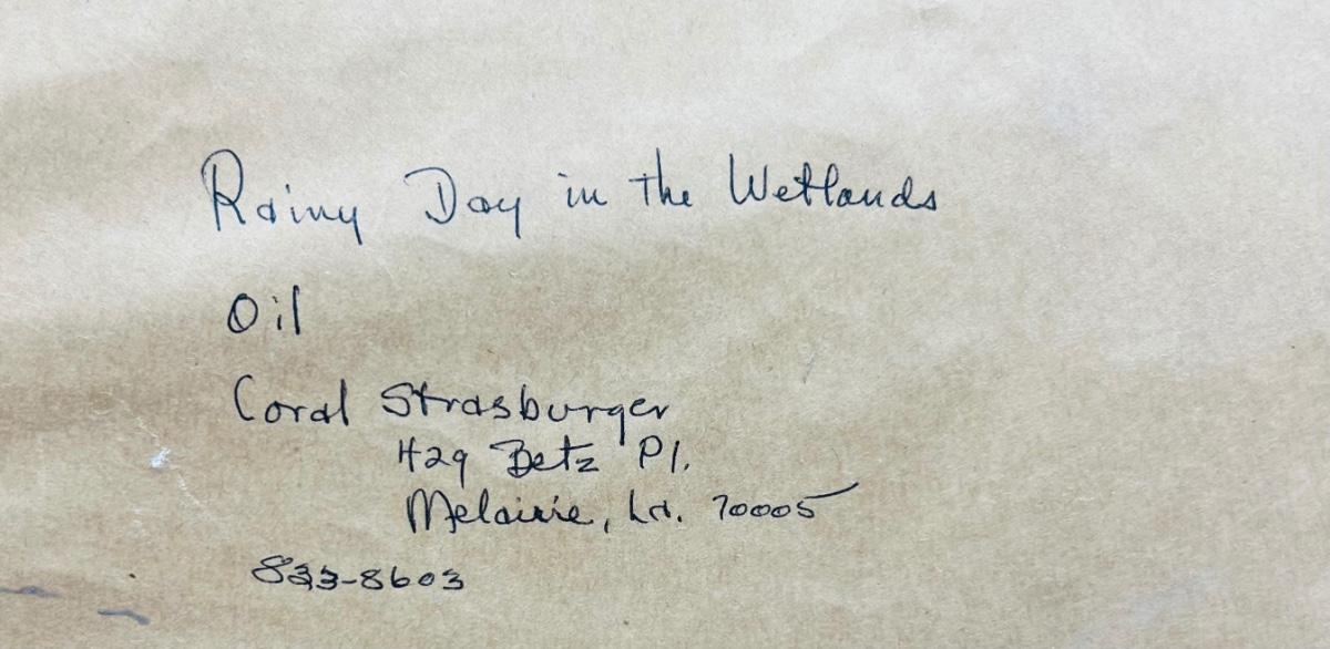 Local Art from Metarie, La, Oil painting By C. STRASBURGER Titled Rainey Day In The Wetlands. Measures 28 X 22.