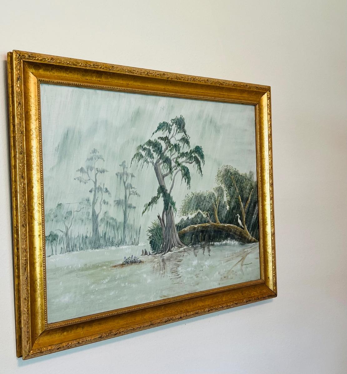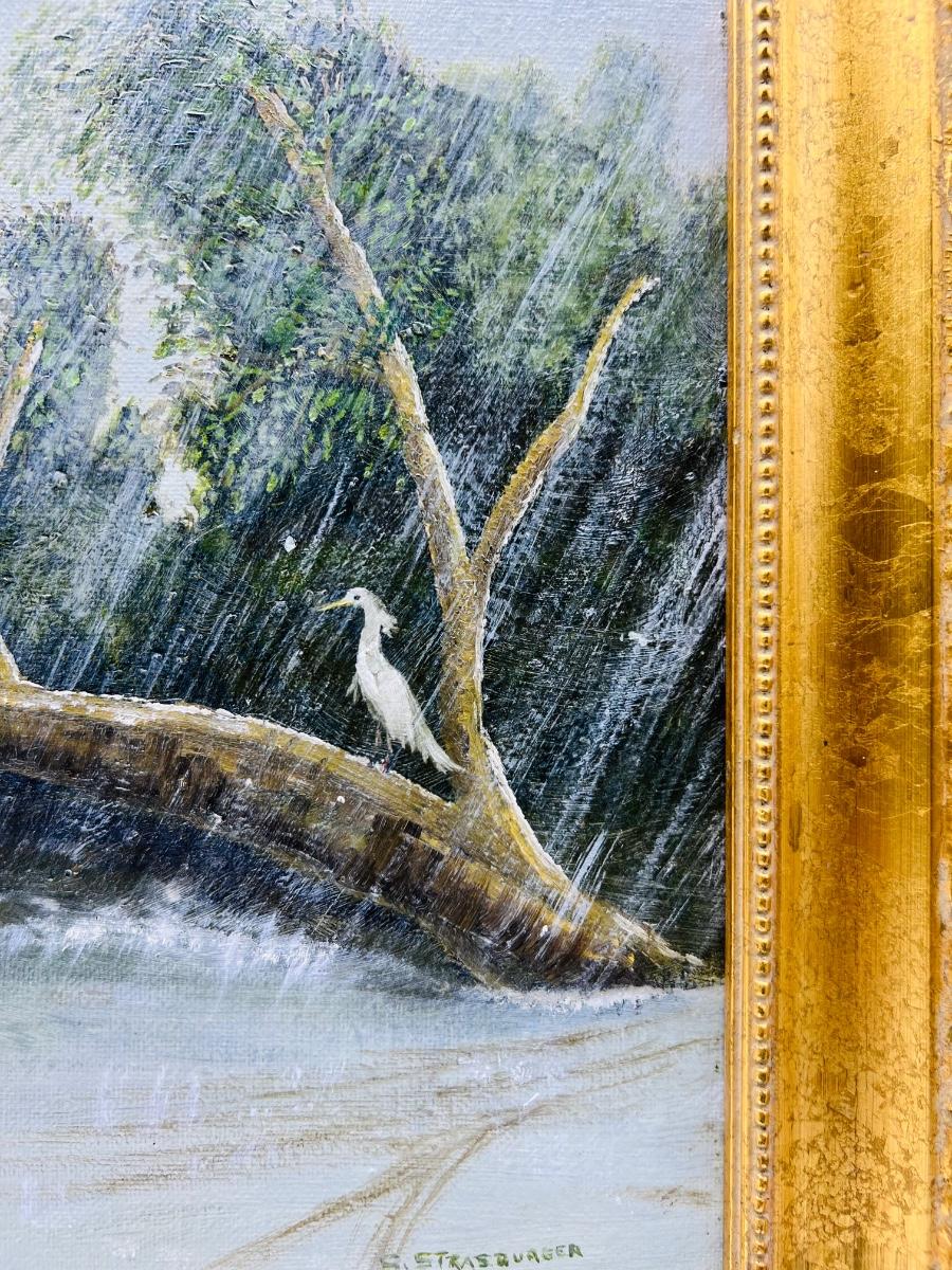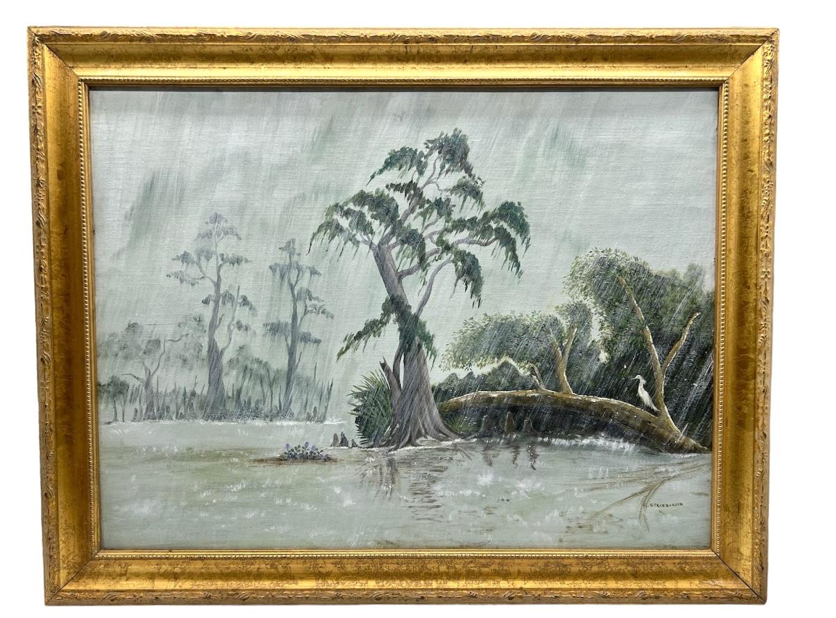 Local Art from Metarie, La, Oil painting By C. STRASBURGER Titled Rainey Day In The Wetlands. Measures 28 X 22.
