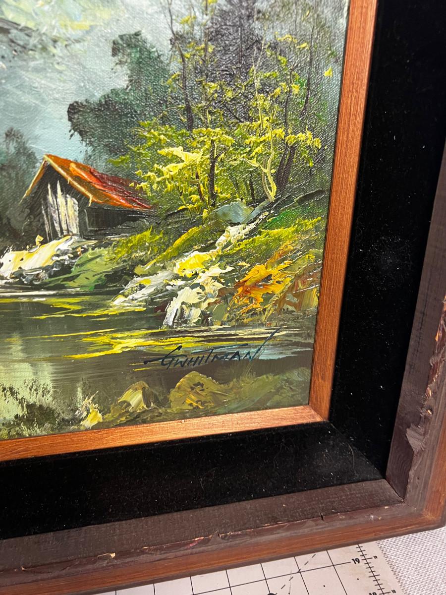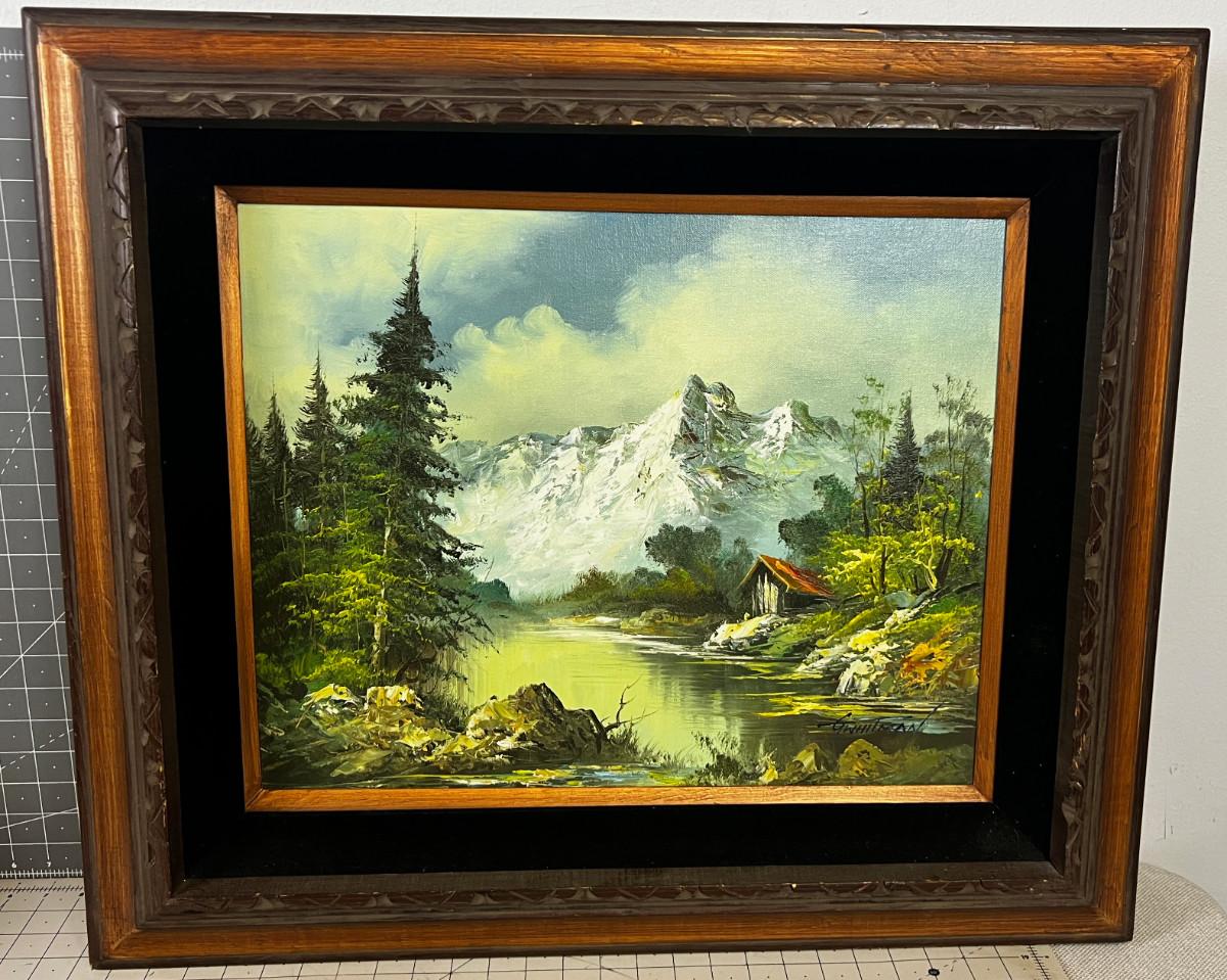 Oil Painting, Mountain Scene With Cabin By:  G. Whitman