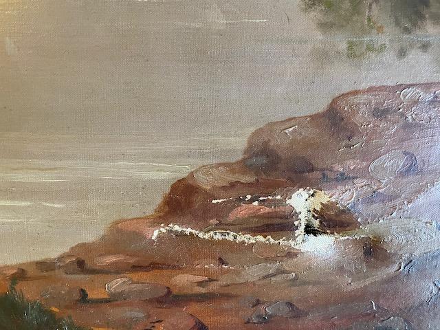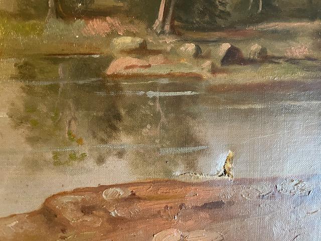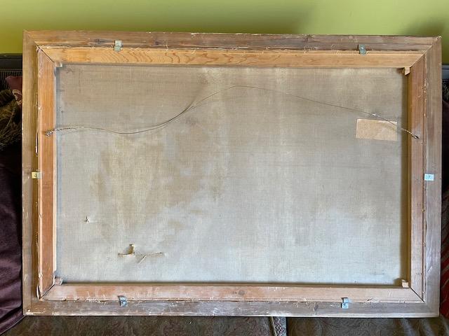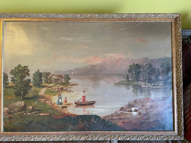 Oil Painting of Boy in boat - has damage - please see pics it is 43 1/2 x 30