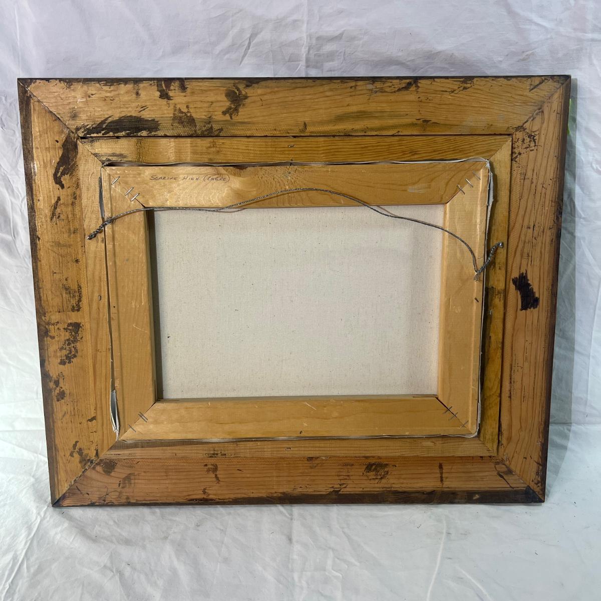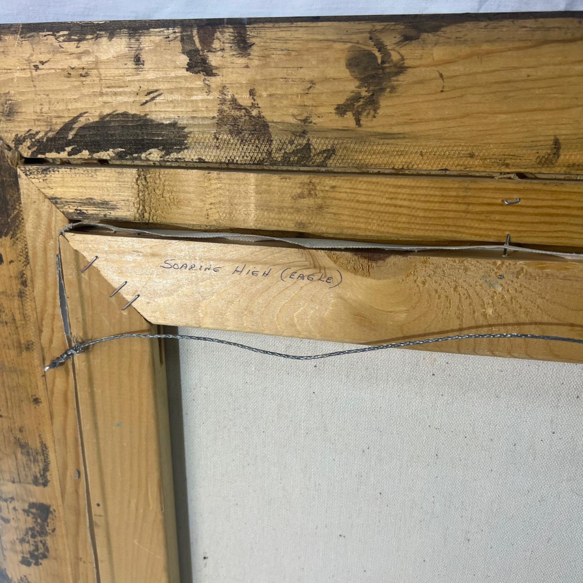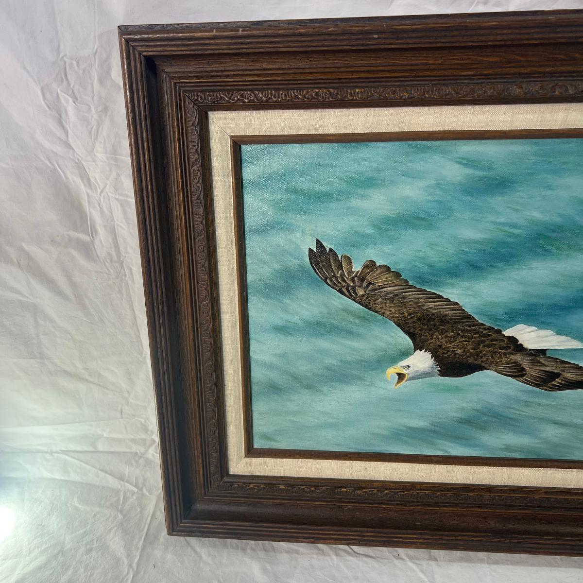Vintage Real Wood frame with floral detail around edge, oil painting of eagle. Artist signed M. Scarpulla