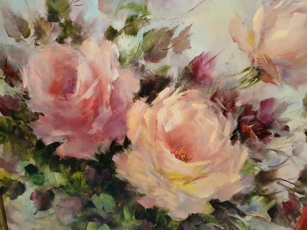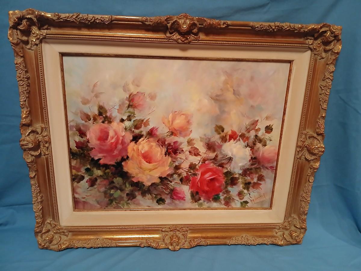 Oil Painting of Roses in gilt frame by Gilbert Van Leuven