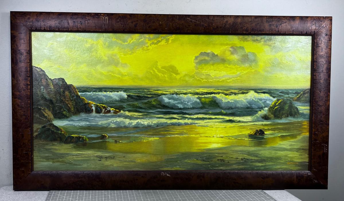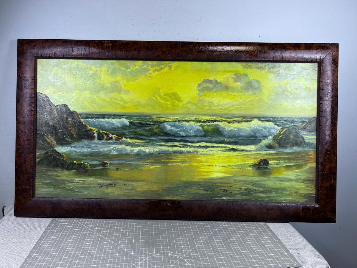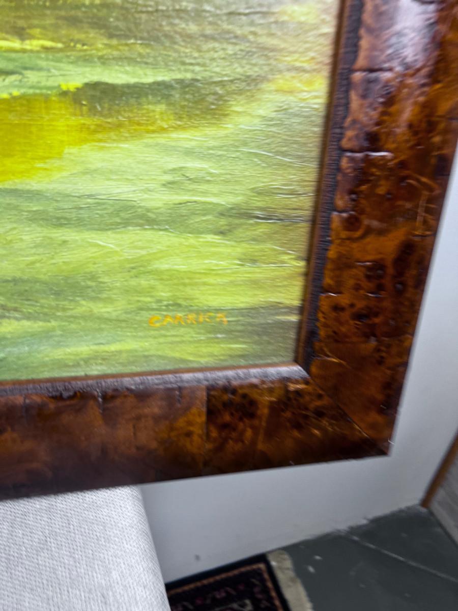 Frame has scratches but could easily be Furniture Color Sticked out. Oil on Canvas - Yellow tones. Measures 48 x 24"