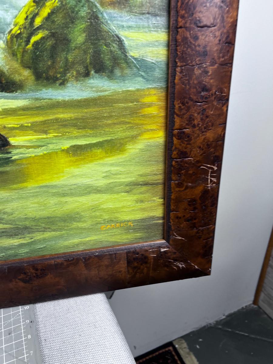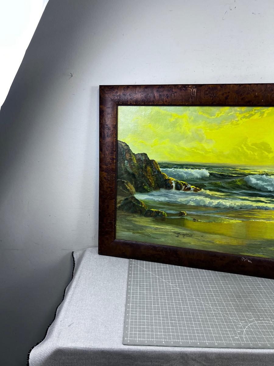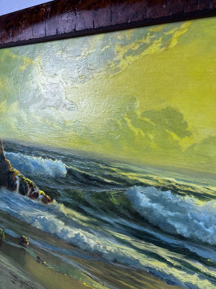 Frame has scratches but could easily be Furniture Color Sticked out. Oil on Canvas - Yellow tones. Measures 48 x 24"