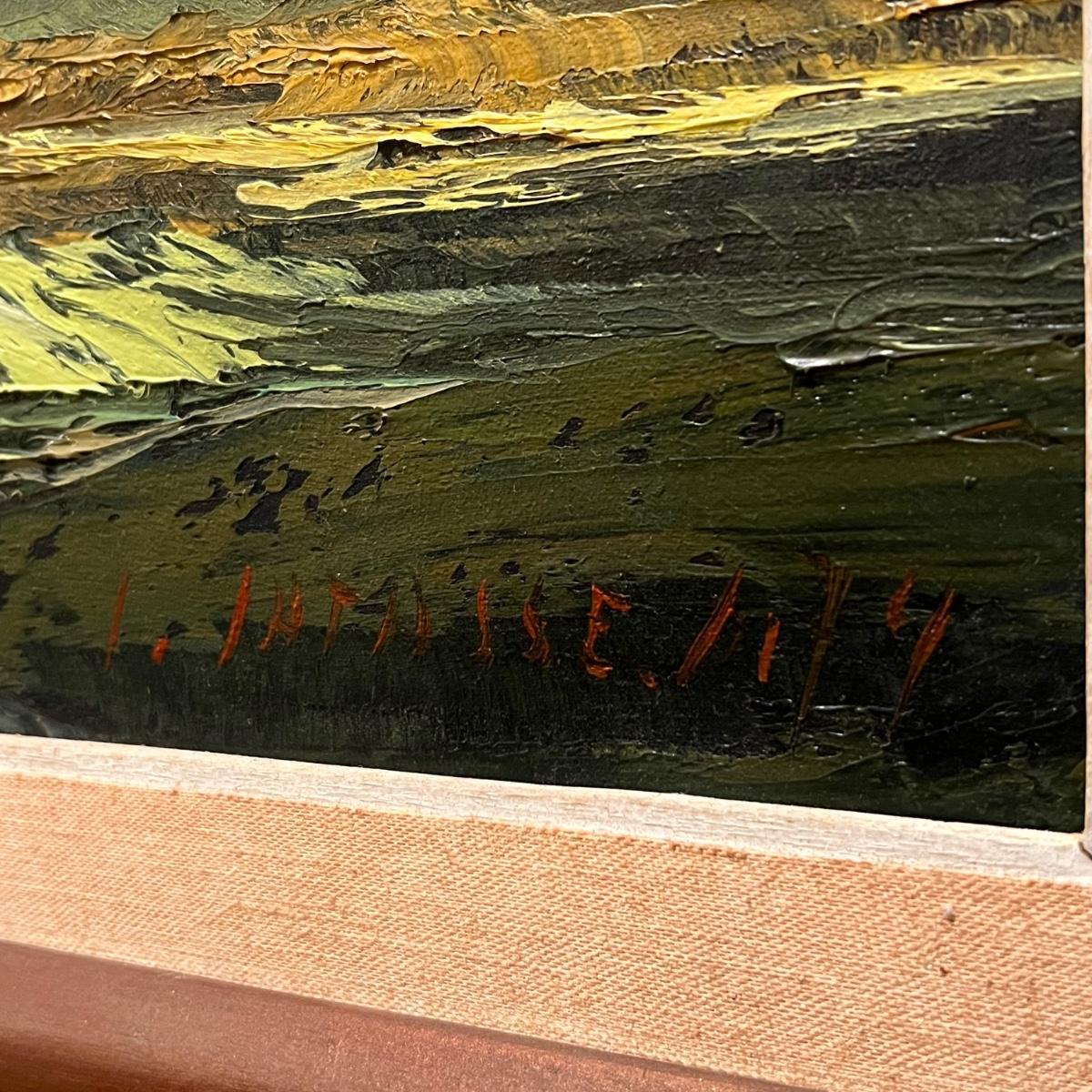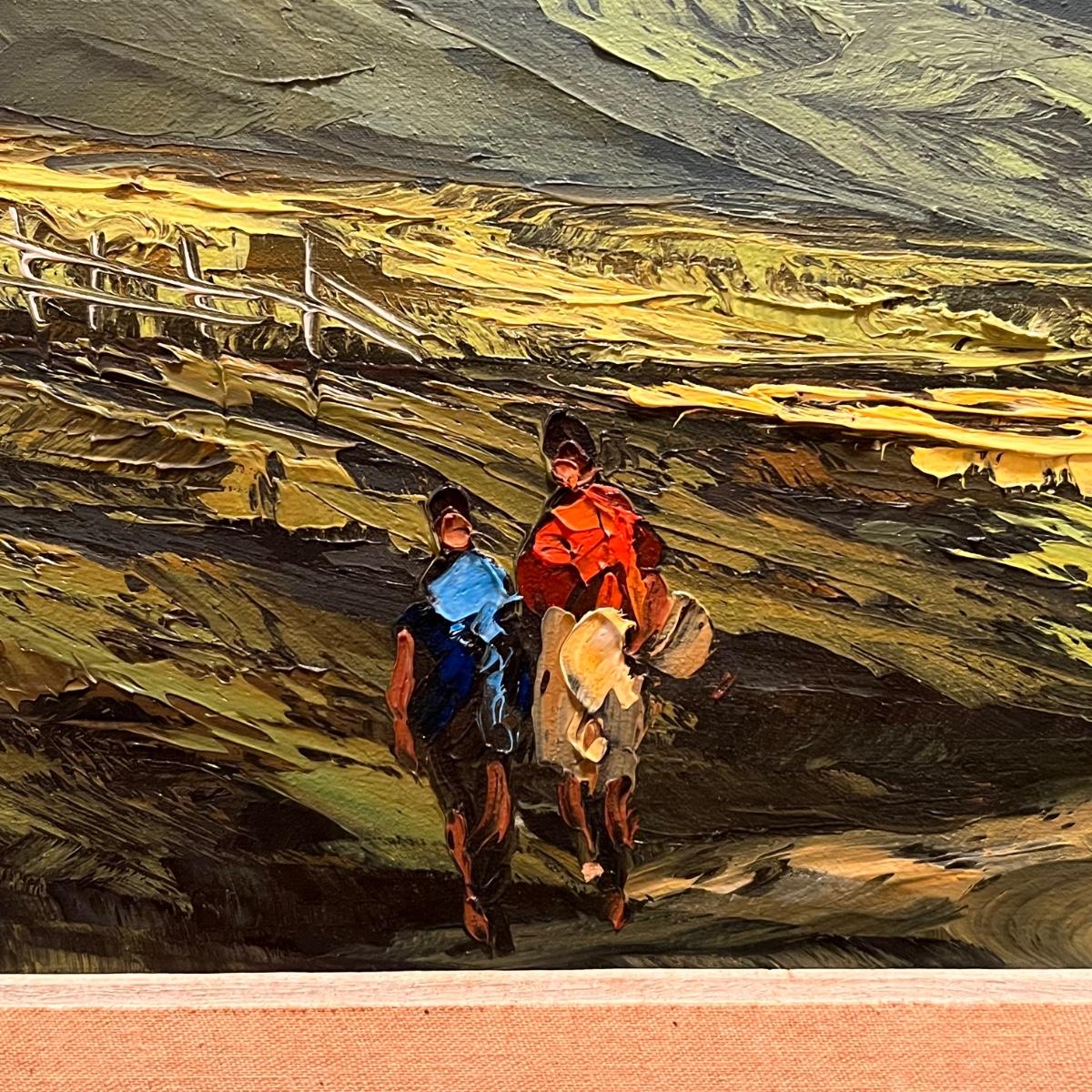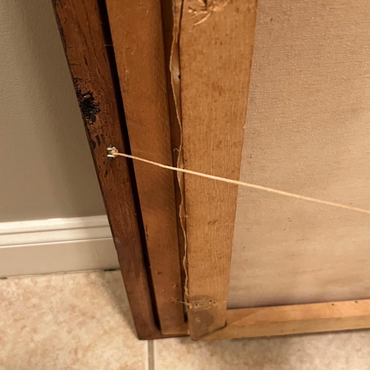 This large vibrant oil painting appears to depict Cotopaxi, a volcano in Ecuador. Seller states it is an original by Carlos Catasse, Sterling Transitions has not verified this information. Painting appears to be original and is mounted (not under glass) in a lightweight wooden frame which measures 37” x 28”H.