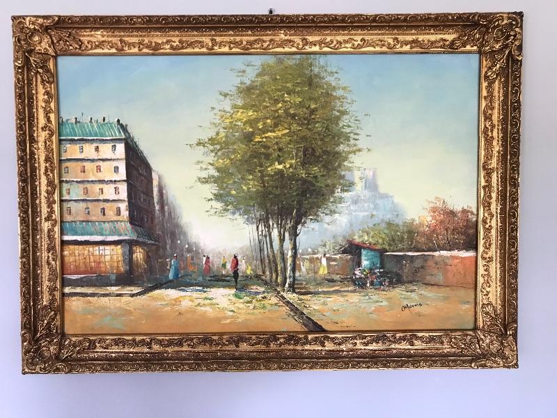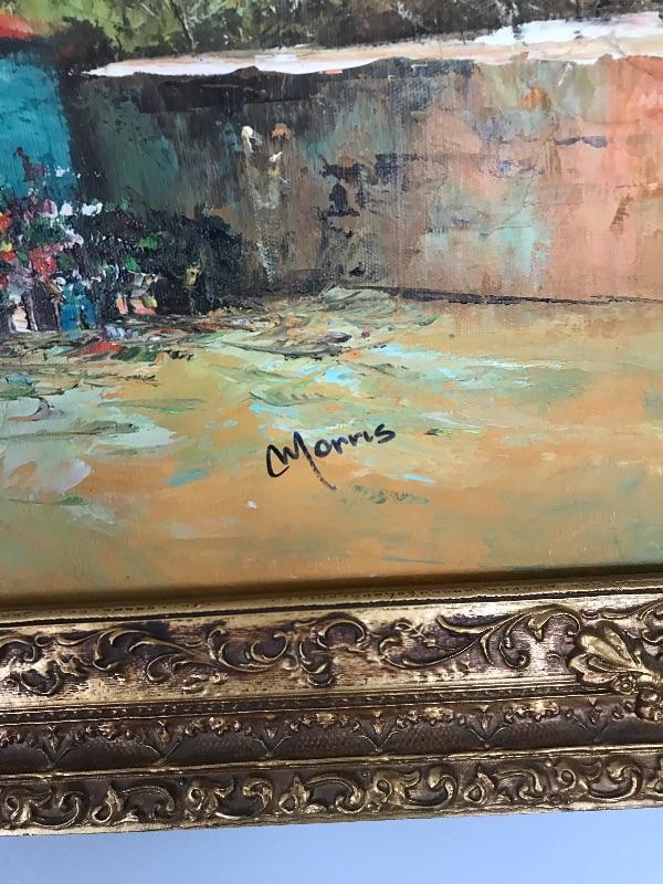 Ornate frame. Oil on canvas. Canvas loose from frame.