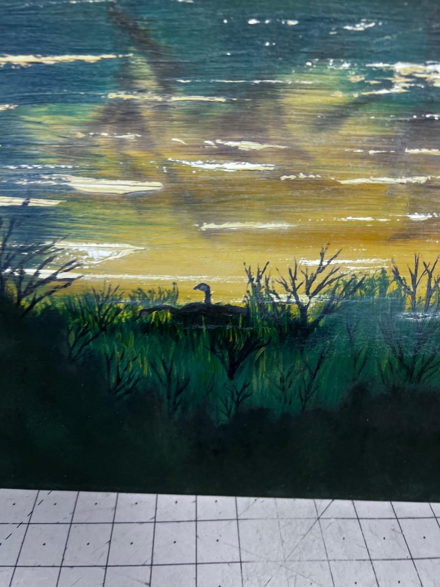 Its come out of the Frame, will need to be restored. Painting Measures 36 X 24"