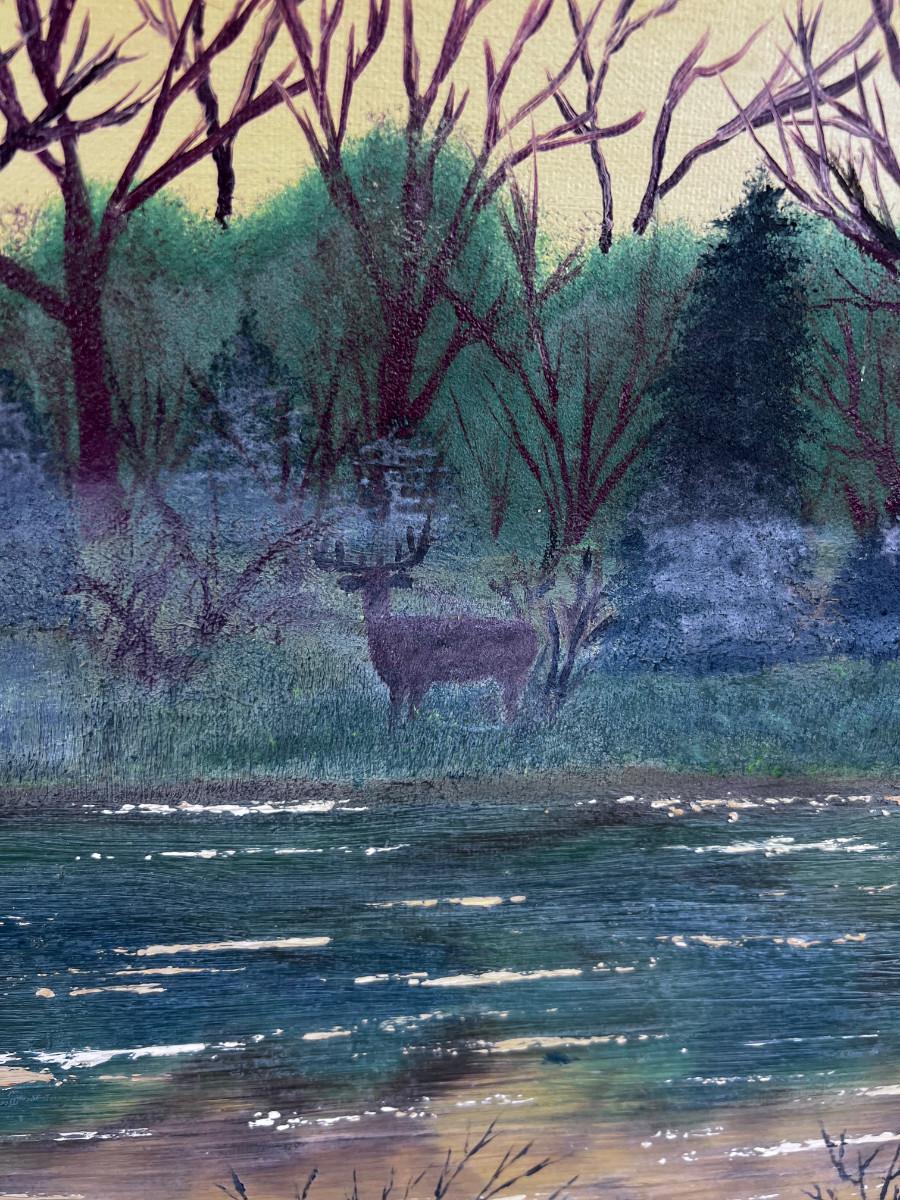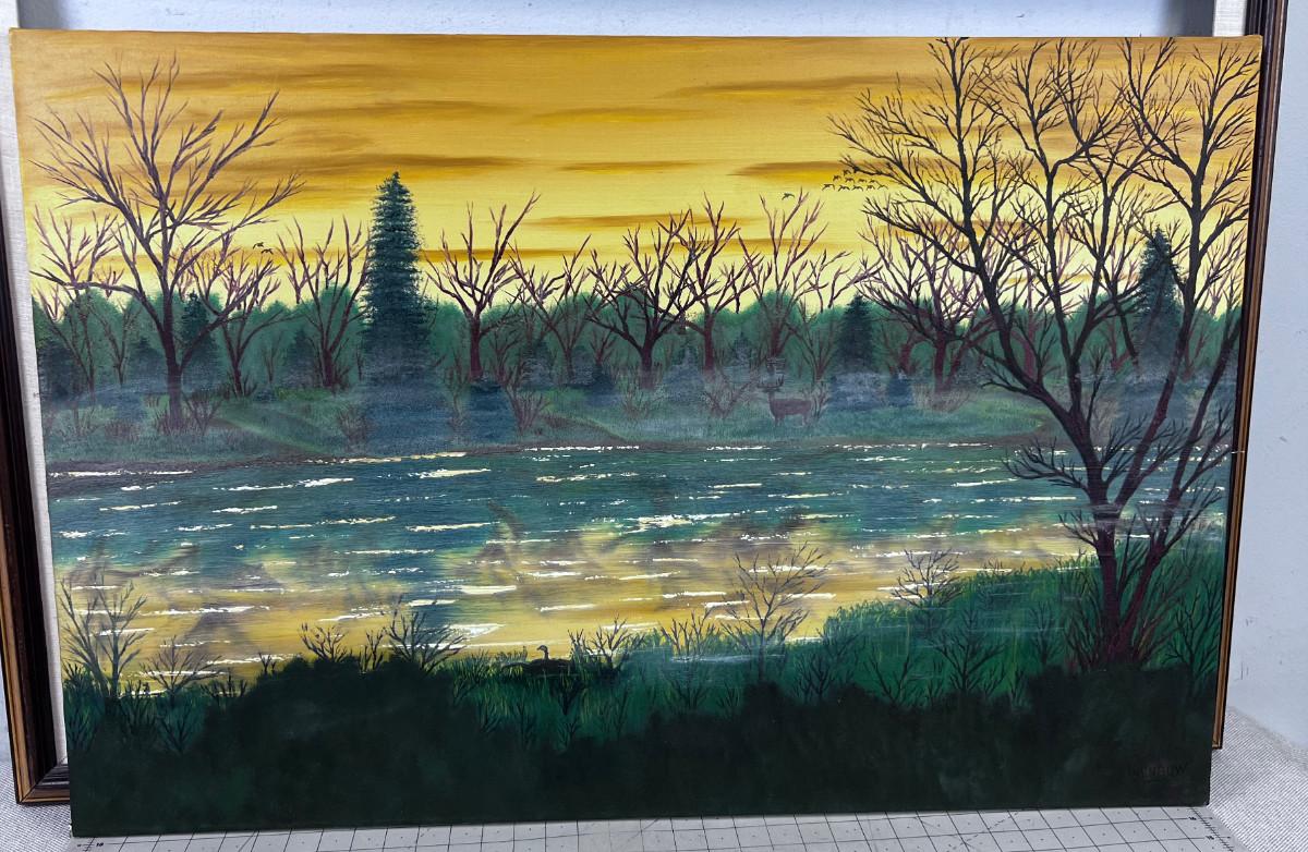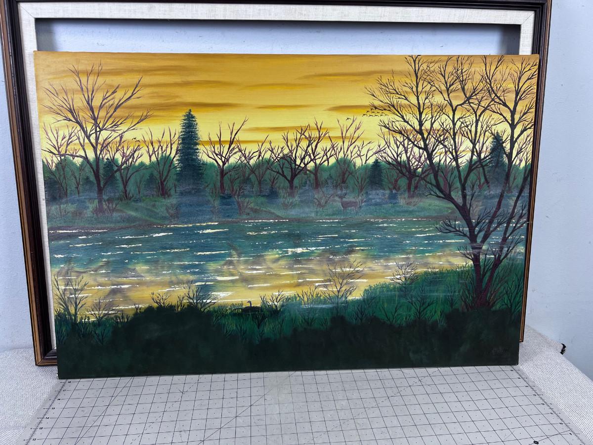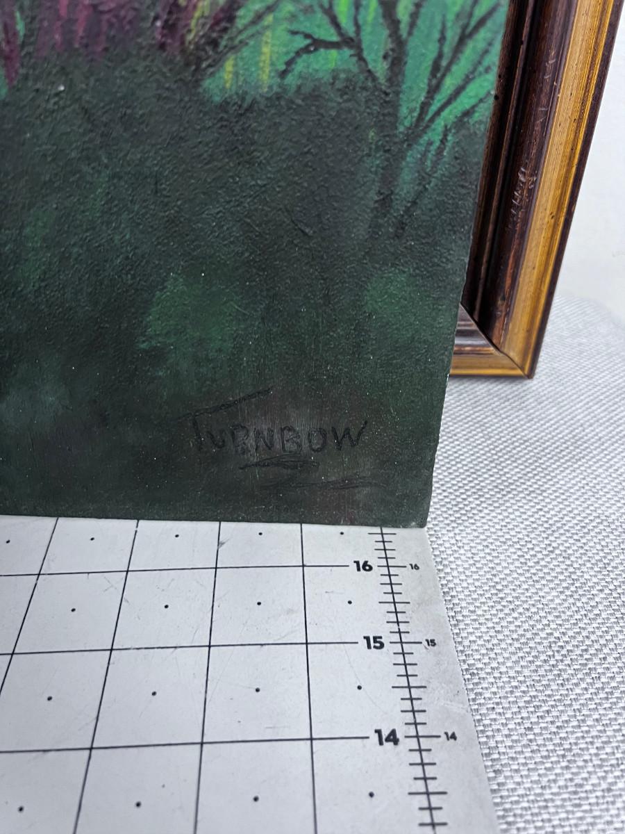 Oil Painting with a Frame, Signed Turnbow, Mist on a Pond in the Woods Painting.