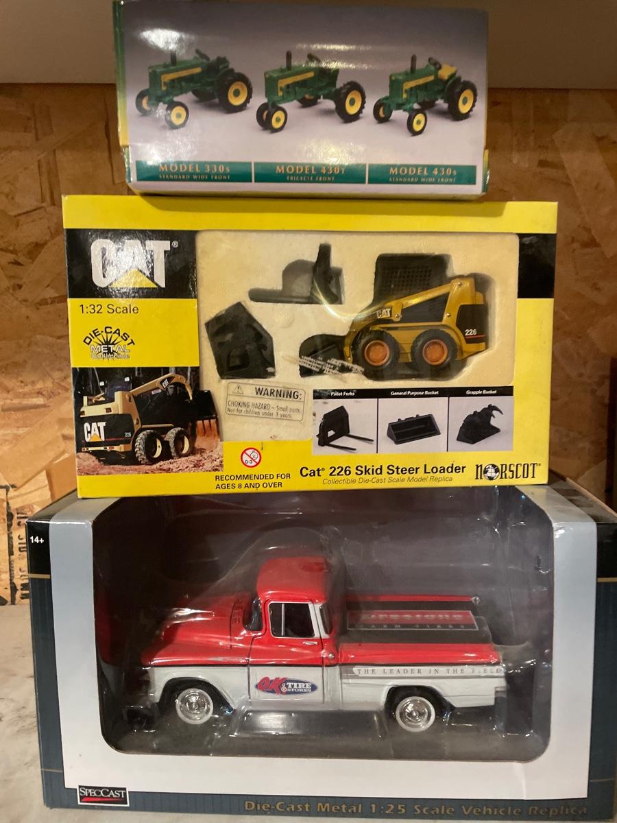 Ok Tire Store truck, CAT skid steer and John Deere tractors